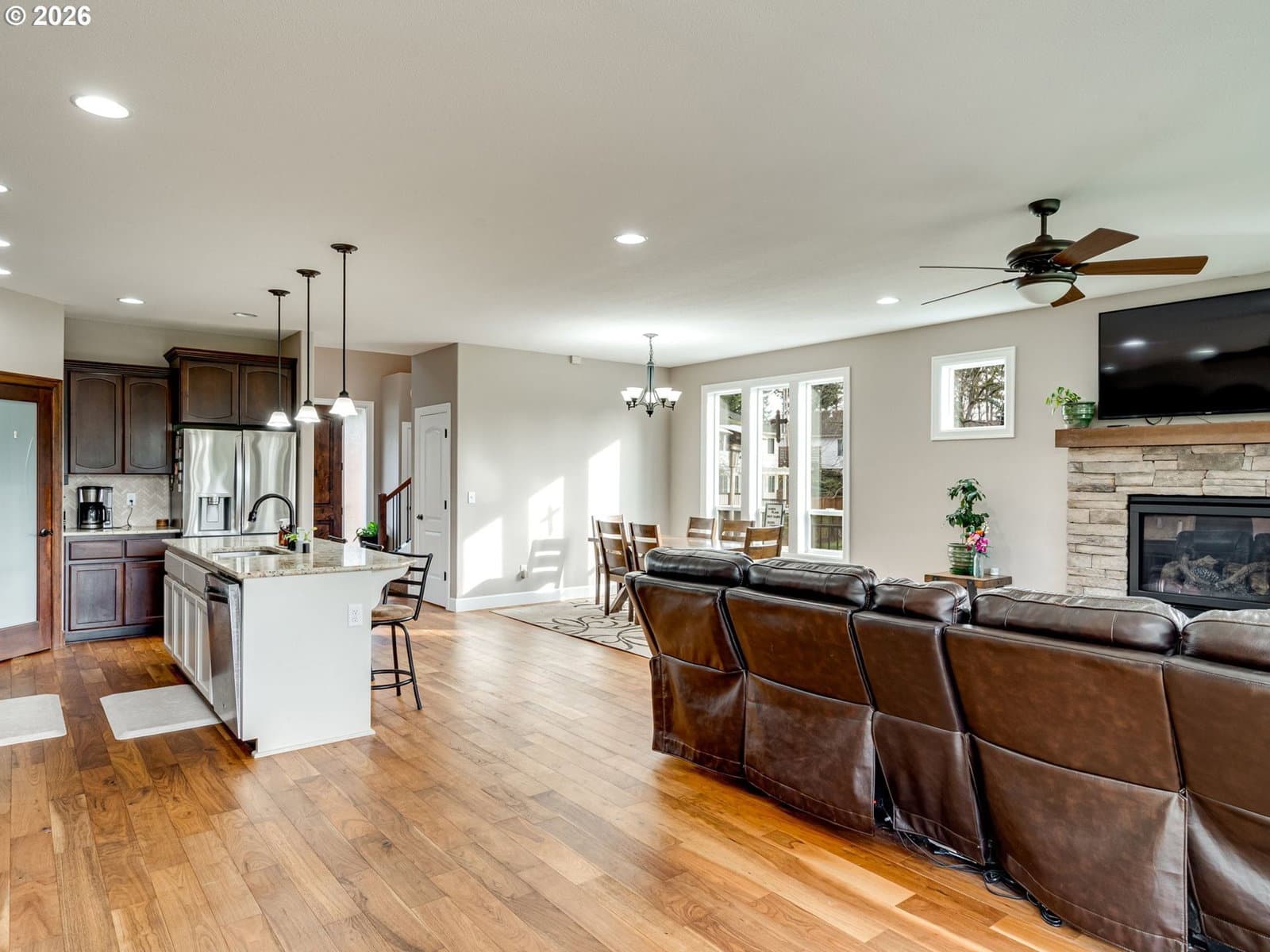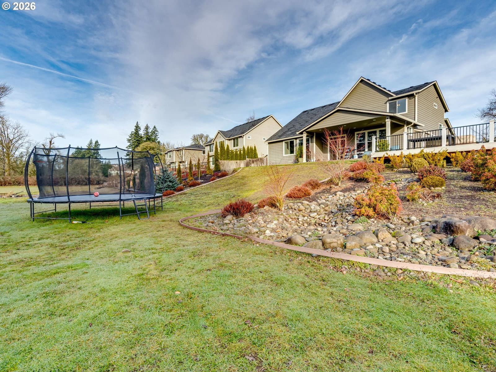 Dreaming of riverfront living with acreage—without sacrificing a close-in location? This is the one. Opportunities like this don’t come along often! Set on 1.4 acres in town, just minutes from Highway 14, shopping, and restaurants, this newer-construction riverfront home checks every box.Built in 2016, this 4-bedroom home lives large with an open-concept kitchen and living space, soaring windows, and stunning views of the property. The primary suite on the main level offers comfort and convenience, along with a dedicated office—perfect for work-from-home living. Upstairs you’ll find three additional bedrooms, a full bath, and a finished bonus room, providing space for everyone. Timeless, tasteful finishes throughout make this home truly move-in ready, and the 3-car garage offers plenty of room for vehicles and storage.But the real magic? The riverfront setting. Step out onto the expansive custom deck—ideal for entertaining, relaxing, or soaking in the views of the lush land stretching down to the river. Wander down to your private riverfront sitting area and enjoy a peaceful swimming hole. Year-round river activities include fishing, tubing, and drift boating, all right from your own property. There’s even a fenced chicken coop for those dreaming of a little homestead charm.A rare combination of riverfront, acreage, newer construction, and an unbeatable close-in location—don’t miss this extraordinary opportunity to live the river lifestyle you’ve been dreaming of. Pre-inspection completed for your convenience and assurance of condition.