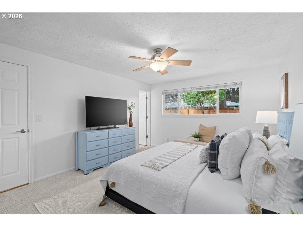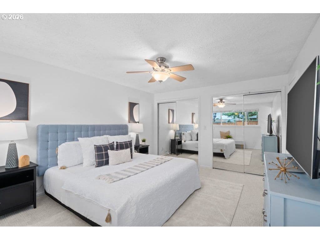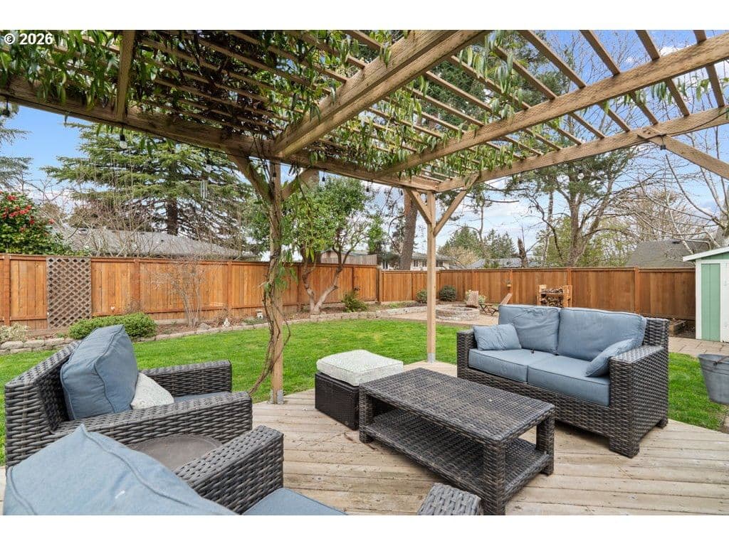 Well cared for, single-level 3 bedroom, 2 full bath home with thoughtful updates throughout. The open kitchen features wood cabinetry, solid granite countertops, an island, and stainless steel appliances, and flows directly into the dining room, which includes French doors opening to the backyard. The primary suite was recently painted, and both bathrooms were fully remodeled in 2023 with updated tile work, vanities, fixtures, and plumbing. Light-toned engineered hardwood flooring was installed in 2023 throughout the main living areas, while all three bedrooms feature brand new carpet. The spacious living room offers a gas fireplace with reclaimed wood surround and built-ins, and a separate family room includes a wood-burning fireplace and French doors to the backyard. The large, fully fenced backyard is well suited for entertaining and everyday use, with a newer fence, deck and pergola covered in clematis, hot tub patio, fire pit area, lawn, shed, and gated RV parking. Exterior was repainted in 2025, and the home includes fully paid-for solar panels for energy efficiency and long-term savings.
