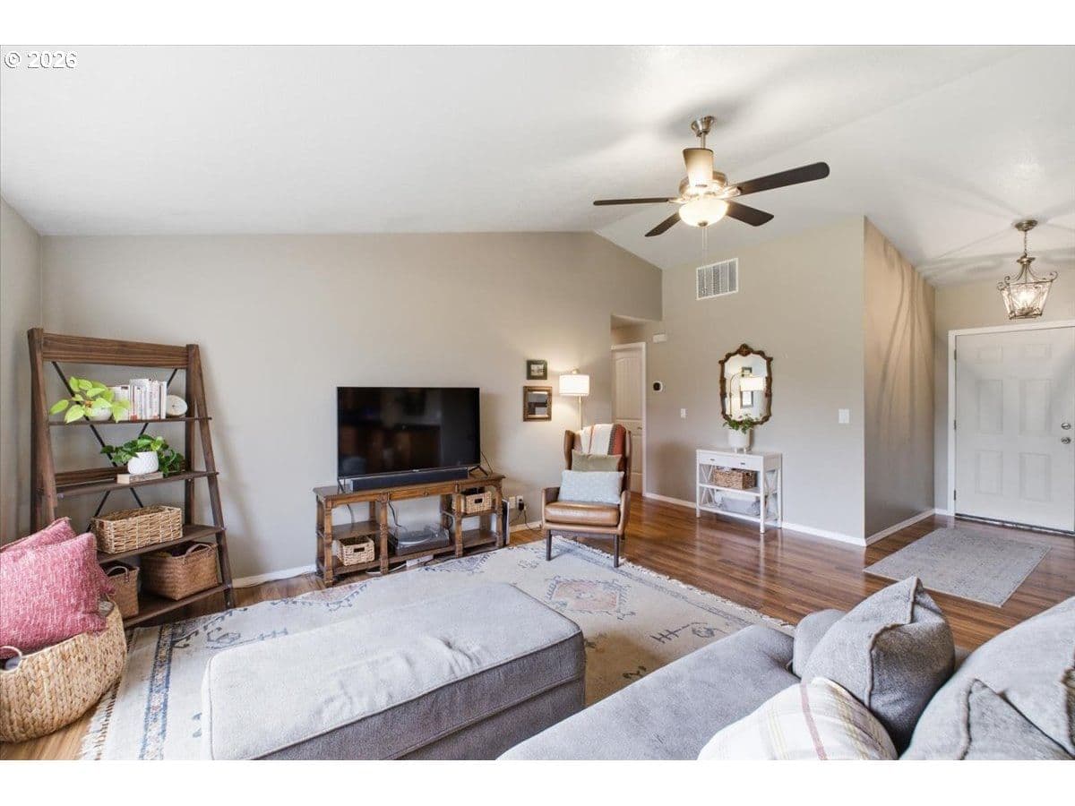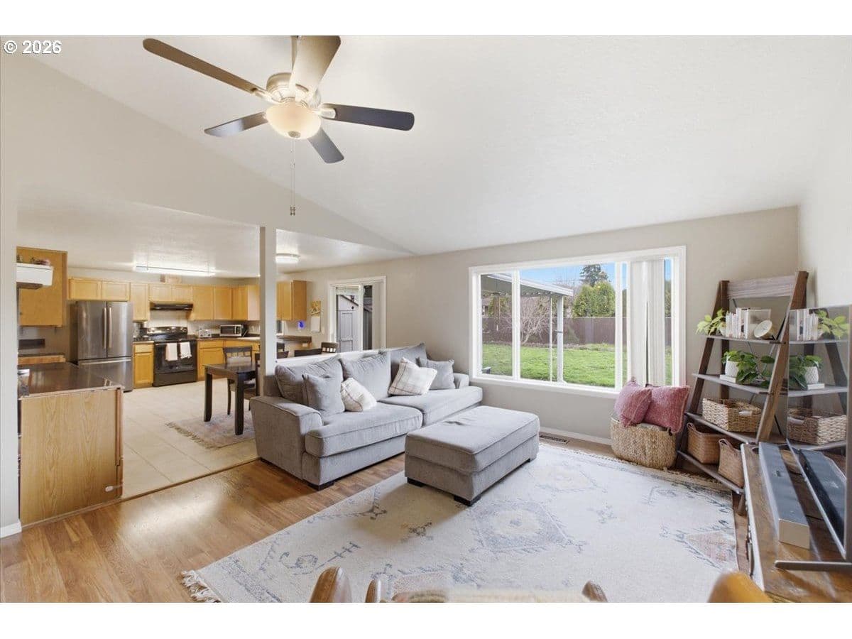 Move-in ready single level home in a highly desirable neighborhood. This 3 bed, 2 bath property offers nearly 1,300 sq ft with a bright, open-concept layout designed for comfortable everyday living and effortless entertaining. Natural light fills the main living space, and the kitchen provides generous storage and excellent flow at the heart of the home.The spacious primary suite features a large bedroom and private ensuite bath, creating a relaxing retreat at the end of the day. Outside, the fully fenced backyard with covered patio is ready for summer evenings, weekend gatherings, or quiet mornings with coffee. Two storage sheds add extra flexibility, while the large driveway and two-car garage provide plenty of room for vehicles and toys. Close to schools, shopping, and local conveniences, this home offers the space, layout, and location buyers are actively searching for.