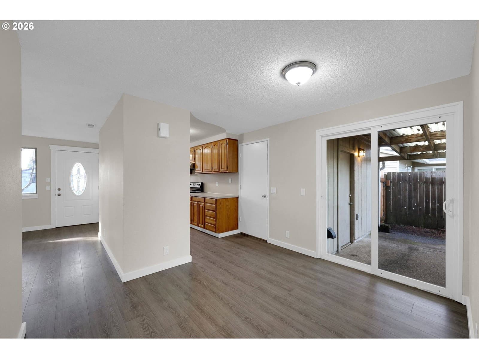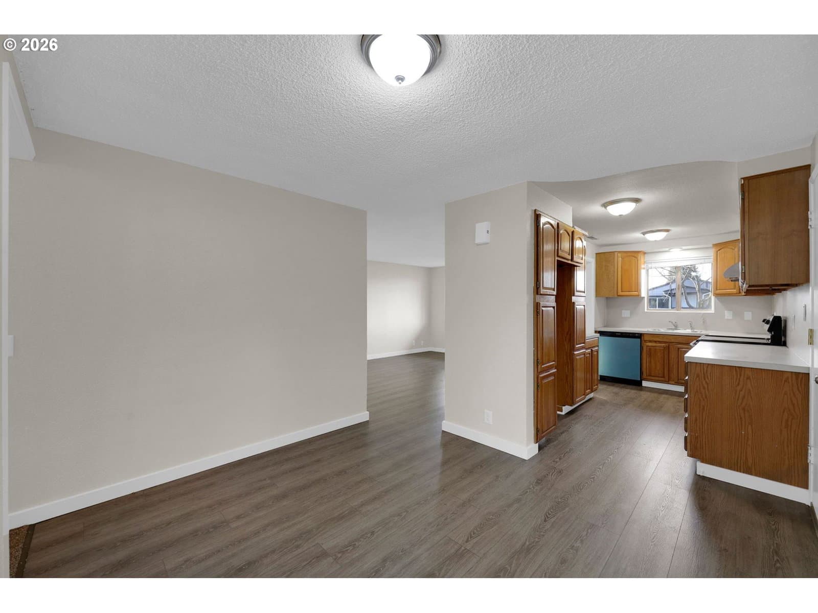 This fabulous Thurston opportunity offers 4 bedrooms, and 2 bathrooms with 1,384 square feet of living space. New flooring, paint and light fixtures throughout! The living room seamlessly transitions to the dining area and kitchen with a newly installed built-in dishwasher, sink, and faucet. The formal dining and third bedroom both have a slider to the backyard. The Primary bedroom features an en-suite bath. The large backyard has a small deck, fruit trees, and a covered patio to enjoy year-round entertaining, with plenty of greenspace for garden projects or raised beds. A handy shed provides additional organization and storage on a generously sized, deep, .22 acre lot.