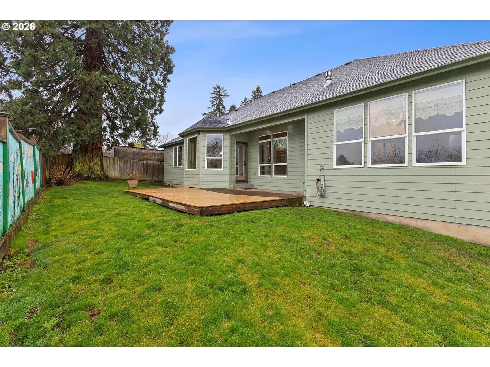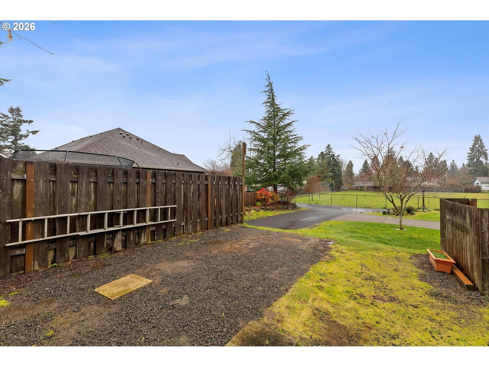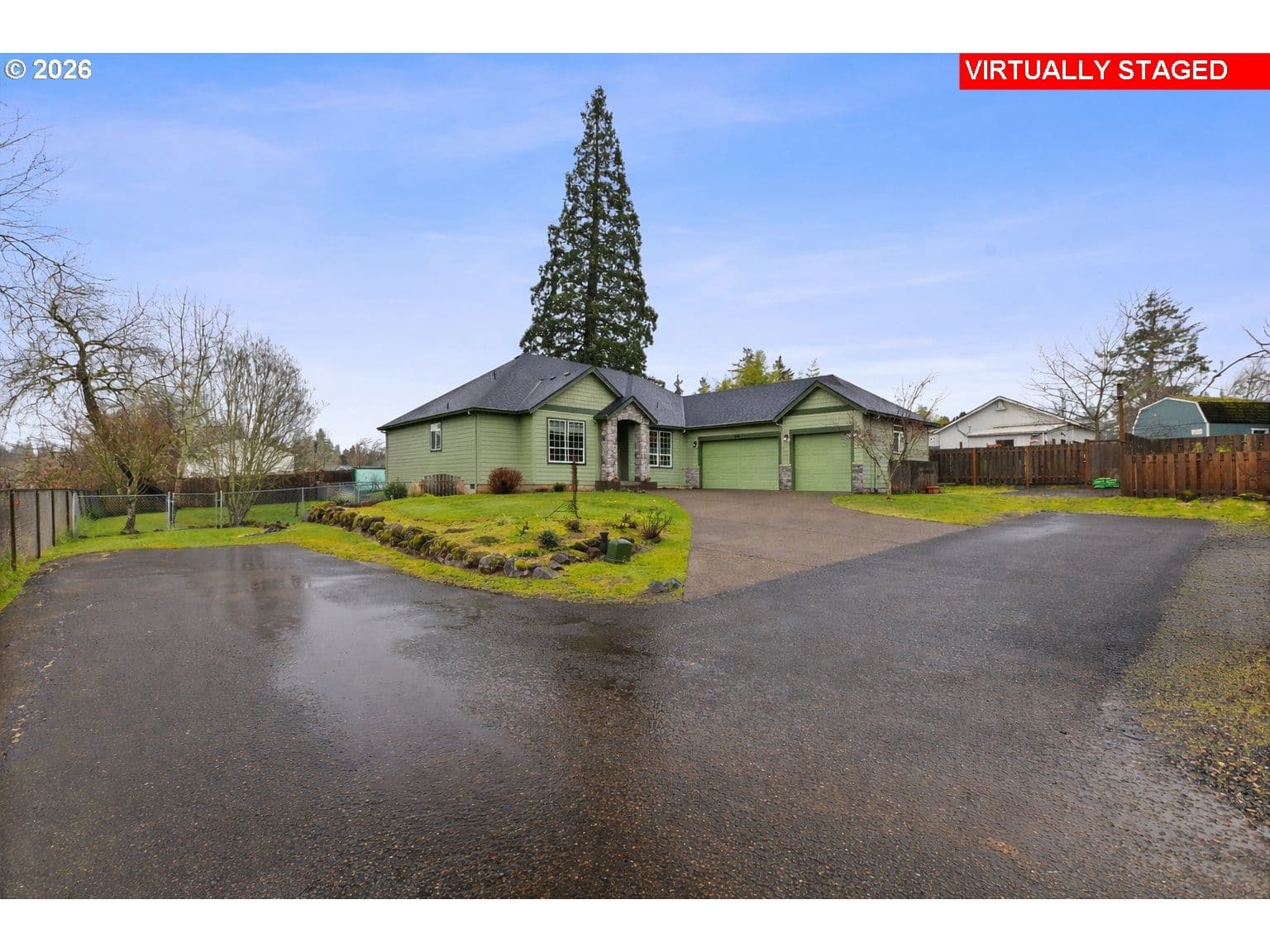 A rare opportunity to own a thoughtfully updated, single-level contemporary, privately situated at the end of a quiet cul-de-sac. Comfort and functionality define the home, with soaring ceilings creating an immediate sense of openness suited for both everyday living and easy entertaining. The open-concept kitchen features nearly new, energy-efficient stainless steel appliances and flows seamlessly into the breakfast area and spacious living room, anchored by a striking floor-to-ceiling stone fireplace. The primary suite offers a private retreat with direct access to the patio, a spacious en-suite bath with a soaking tub, separate shower, and walk-in closet. Additional bedrooms include generous walk-in closets and a spacious jack-and-jill bathroom. Outside, the east-facing backyard is ideal for sunrises, raised-bed gardening, gatherings, or quiet evenings. Abundant off-street parking includes a three-car garage and separate RV parking. Recent updates include refreshed interior paint and updated LVP flooring throughout. Truly move-in ready and conveniently located near Oak Grove schools, parks, and everyday amenities.Upgrades: Roof (2026)Stainless Steel Range (2025)Water Heater (2024)Washing Machine (2025) [Home Energy Score = 6. HES Report at https://rpt.greenbuildingregistry.com/hes/OR10245208]