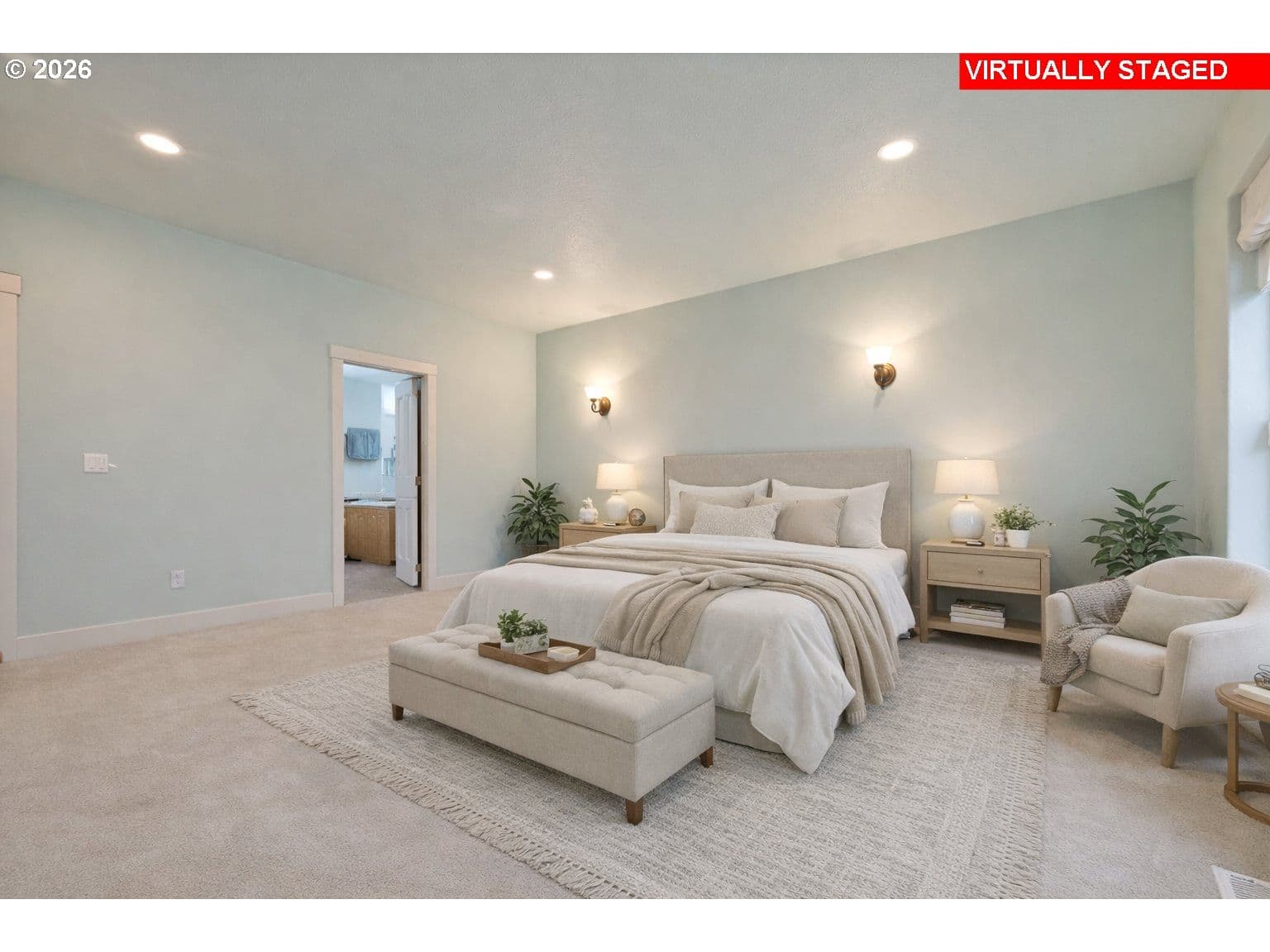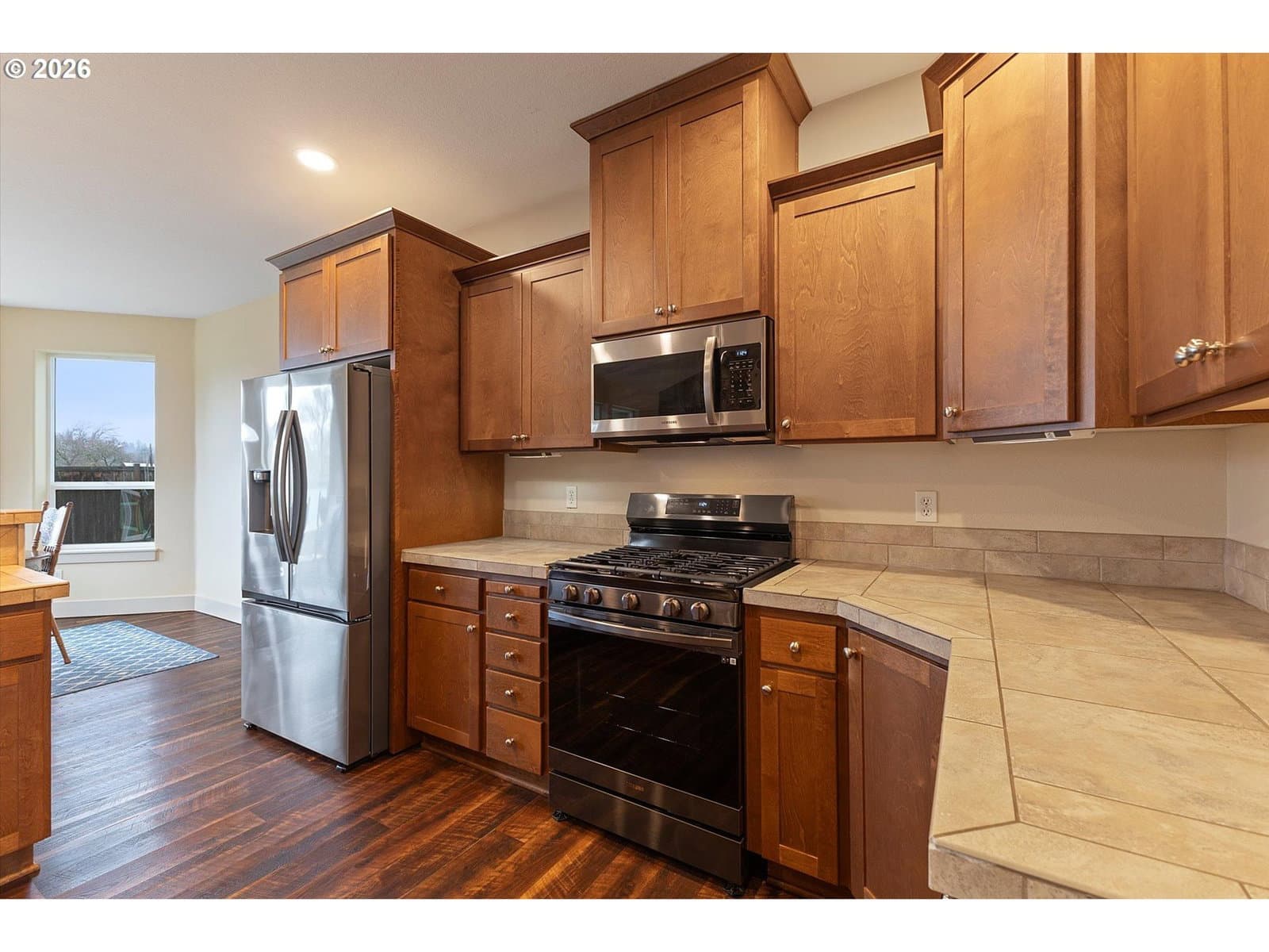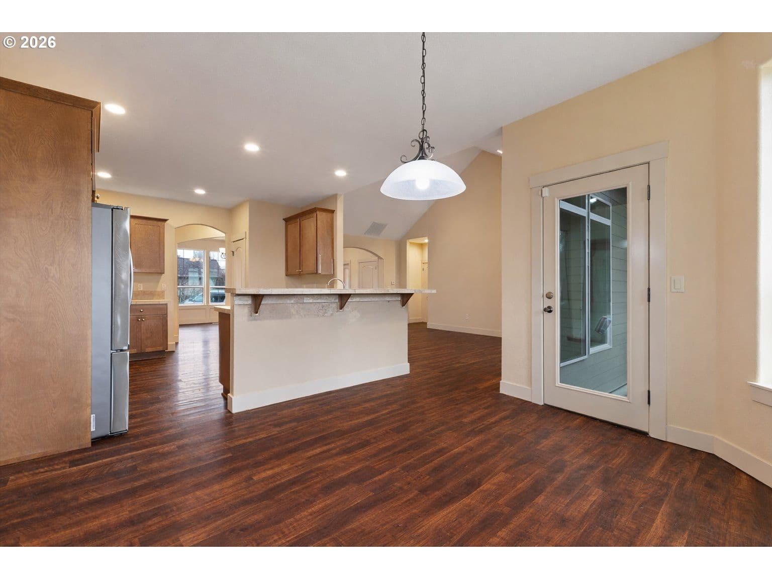 A rare opportunity to own a thoughtfully updated, single-level contemporary, privately situated at the end of a quiet cul-de-sac. Comfort and functionality define the home, with soaring ceilings creating an immediate sense of openness suited for both everyday living and easy entertaining. The open-concept kitchen features nearly new, energy-efficient stainless steel appliances and flows seamlessly into the breakfast area and spacious living room, anchored by a striking floor-to-ceiling stone fireplace. The primary suite offers a private retreat with direct access to the patio, a spacious en-suite bath with a soaking tub, separate shower, and walk-in closet. Additional bedrooms include generous walk-in closets and a spacious jack-and-jill bathroom. Outside, the east-facing backyard is ideal for sunrises, raised-bed gardening, gatherings, or quiet evenings. Abundant off-street parking includes a three-car garage and separate RV parking. Recent updates include refreshed interior paint and updated LVP flooring throughout. Truly move-in ready and conveniently located near Oak Grove schools, parks, and everyday amenities.Upgrades: Roof (2026)Stainless Steel Range (2025)Water Heater (2024)Washing Machine (2025) [Home Energy Score = 6. HES Report at https://rpt.greenbuildingregistry.com/hes/OR10245208]