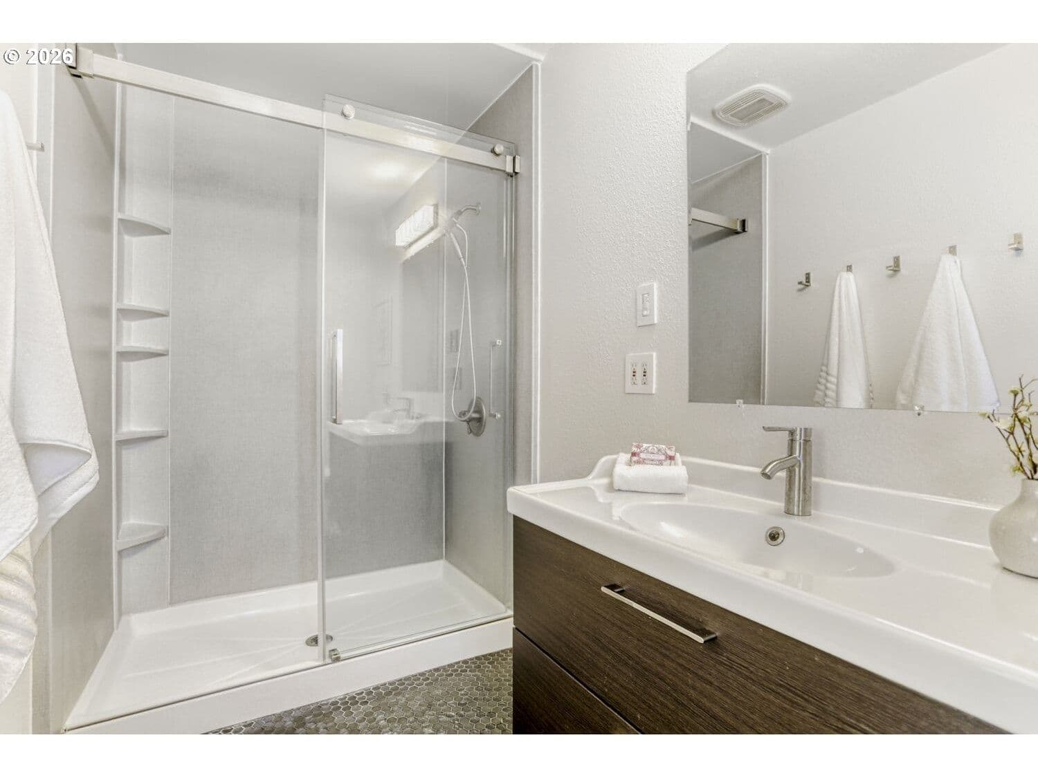Step inside this private oasis on nearly 1/3 acre in Beaverton with curb appeal, loads of parking, low maintenance front yard, level, grassy, fully-fenced backyard, plus garden beds, storage & shop areas, tool shed, boat/trailer storage, large composite deck, and a patio. Spotless and freshly painted interior, where you'll find an updated island kitchen with pull-out drawers, slow close cabinets, all appliances included, pantry, dining area and a slider to the peaceful backyard deck. Certified wood stove provides winter warmth throughout. Oversized living room with large windows has a soothing electric fireplace. Two updated bathrooms offer new vanities, heated tile floors, new light fixtures, hall bathroom tub/tile, and primary bathroom with walk-in shower system with glass sliding doors. Hardwood floors in each bedroom. Washer/dryer included in inside laundry area. Brand new water heater. Forced air gas furnace and central air conditioning for summer comfort! Quiet peaceful neighborhood community.
