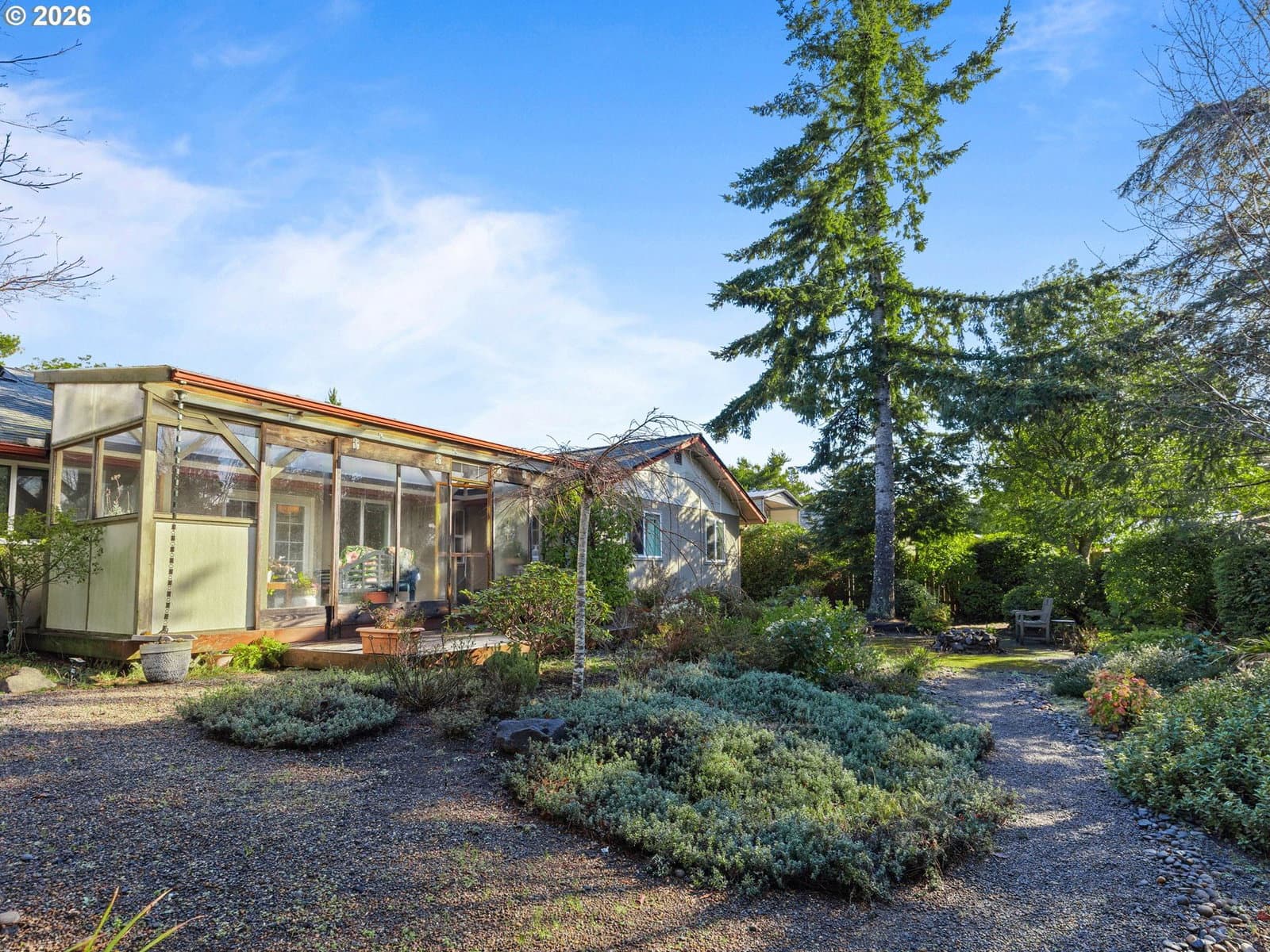 Welcome to 2066 40th St in beautiful Florence — a privacy, nature-lover’s, and gardener’s dream on nearly ¼ acre! Tucked away in a peaceful setting with enchanting pathways leading from the front yard to a spacious backyard oasis, this property offers raised garden beds, room to roam, and space for RV or boat parking. Enjoy the best of coastal living just 15 minutes from the breathtaking beaches of the Oregon Coast.Golf enthusiasts will love having both Ocean Dunes Golf Links and Sandpines Golf Links within 5 minutes, while everyday conveniences are right at your fingertips — grocery stores and dining just 2 minutes away, and PeaceHealth Peace Harbor Medical Center less than 10 minutes from home. Spend your weekends fishing or launching your boat from the Port of Siuslaw Marina.Inside, natural light pours through skylights, highlighting the vaulted ceilings and spacious living room with beautiful bamboo flooring throughout. The kitchen features granite countertops, stainless steel appliances, and an eat bar, plus a cozy dining nook with French doors opening to the sunroom. A formal dining area provides additional entertaining space. The owner’s suite includes a walk-in closet, walk-in tiled shower, and private French door access to the sunroom. Ample storage, a separate laundry area, and a large two-car garage add functionality to comfort.Whether you’re seeking a full-time residence or the perfect coastal getaway, this home offers space, serenity, and an unbeatable location near the ocean.