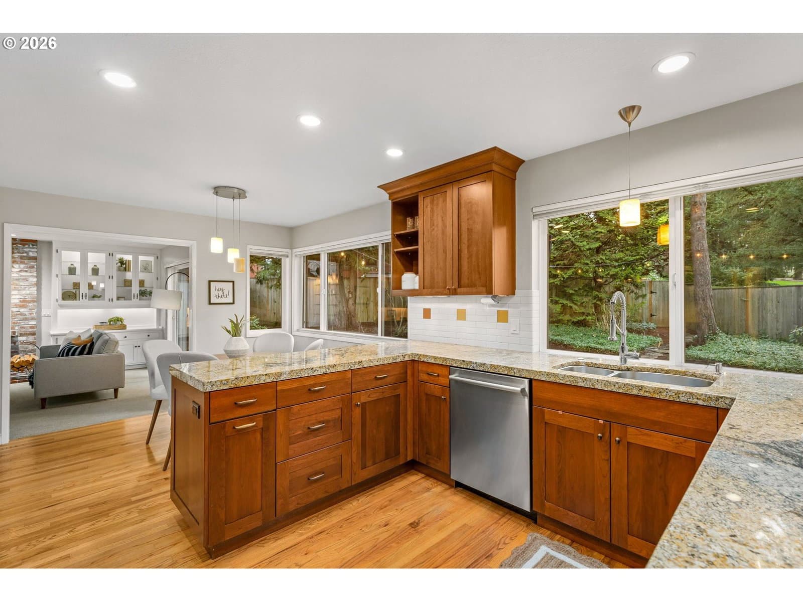 Nestled on a quiet corner lot backing to serene green space in Lake Oswego’s award-winning Mountain Park community, this beautifully remodeled home blends timeless elegance with everyday comfort. Expertly updated by the renowned Neil Kelly, it offers bright, welcoming spaces designed for both entertaining and relaxed living.Sunlight floods the living room through a large bay window, with a gas fireplace anchoring the space for cozy nights at home. The elegant dining room sets the stage for family dinners, holiday celebrations, and gatherings with friends, while sliding doors open to the patio to create a seamless indoor-outdoor flow. The chef’s kitchen features gorgeous granite countertops, abundant wood cabinetry, and a brand-new dishwasher. A large window above the kitchen sink frames views of the backyard, while the charming eating nook invites casual meals backlit by sunshine. The kitchen flows into the family room, where a wood-burning fireplace and sliding doors to the patio create a seamless space for unwinding or hosting friends and family. The upstairs boasts four true bedrooms including a primary suite worthy of envy. The backyard is a private oasis designed for low-maintenance enjoyment. Fully fenced, it features a spacious patio, small lawn, fire pit, and a large storage shed, with direct access to green space for kids or pets to run and play. Known as “Nature’s Neighborhood,” Mountain Park offers miles of scenic trails, parks, and breathtaking viewpoints. Residents also enjoy a remodeled clubhouse, fitness center with personal training and group classes, three pools (therapeutic, lap, and leisure), water aerobics, swim lessons, basketball, tennis and pickleball courts, playgrounds, and a vibrant Kid Zone with camps and rentable event spaces. Just minutes from top-rated Lake Oswego schools and downtown boutiques, restaurants, and entertainment, this home offers a rare opportunity to enjoy the serenity of nature alongside a lively, connected community.