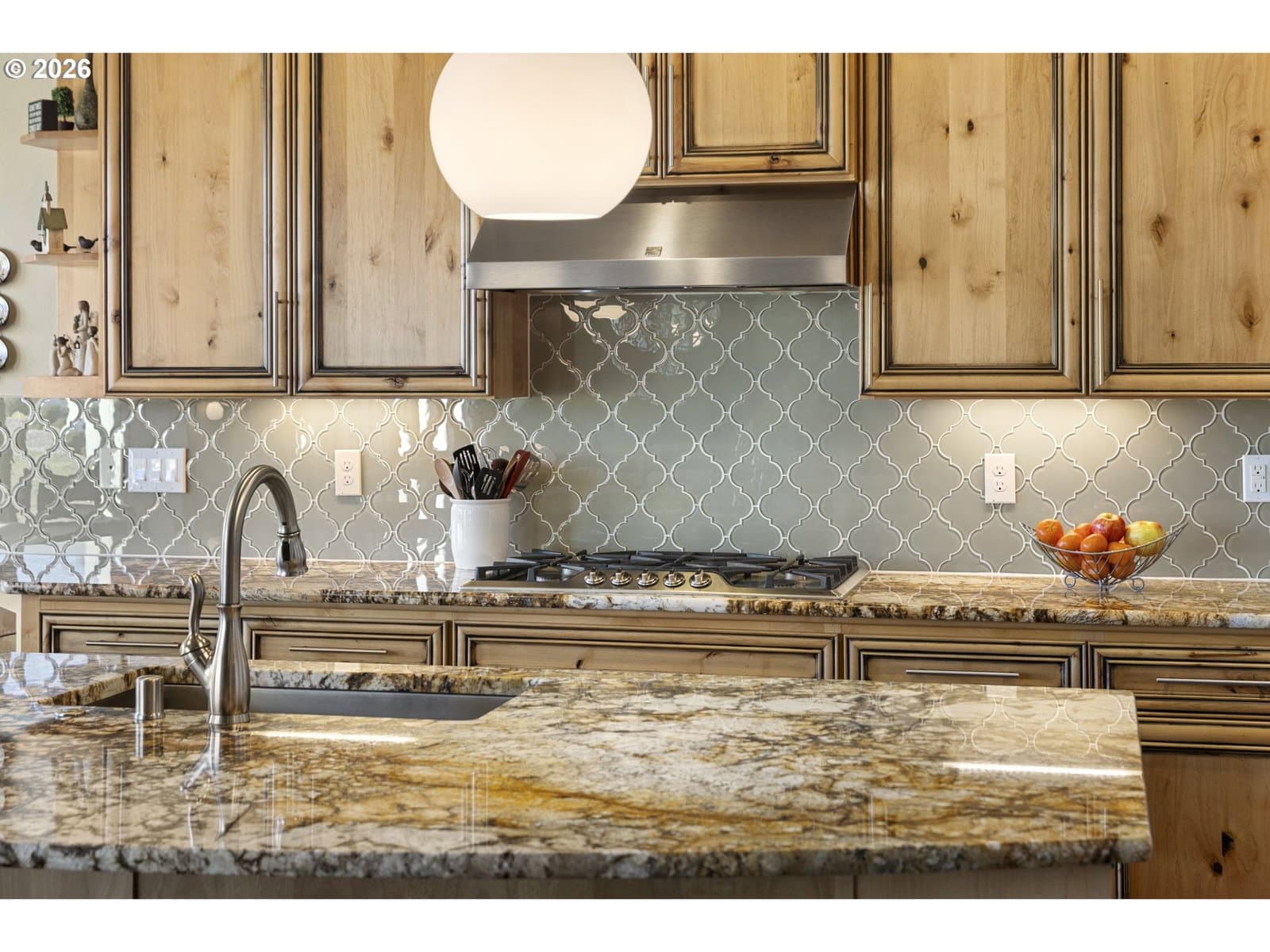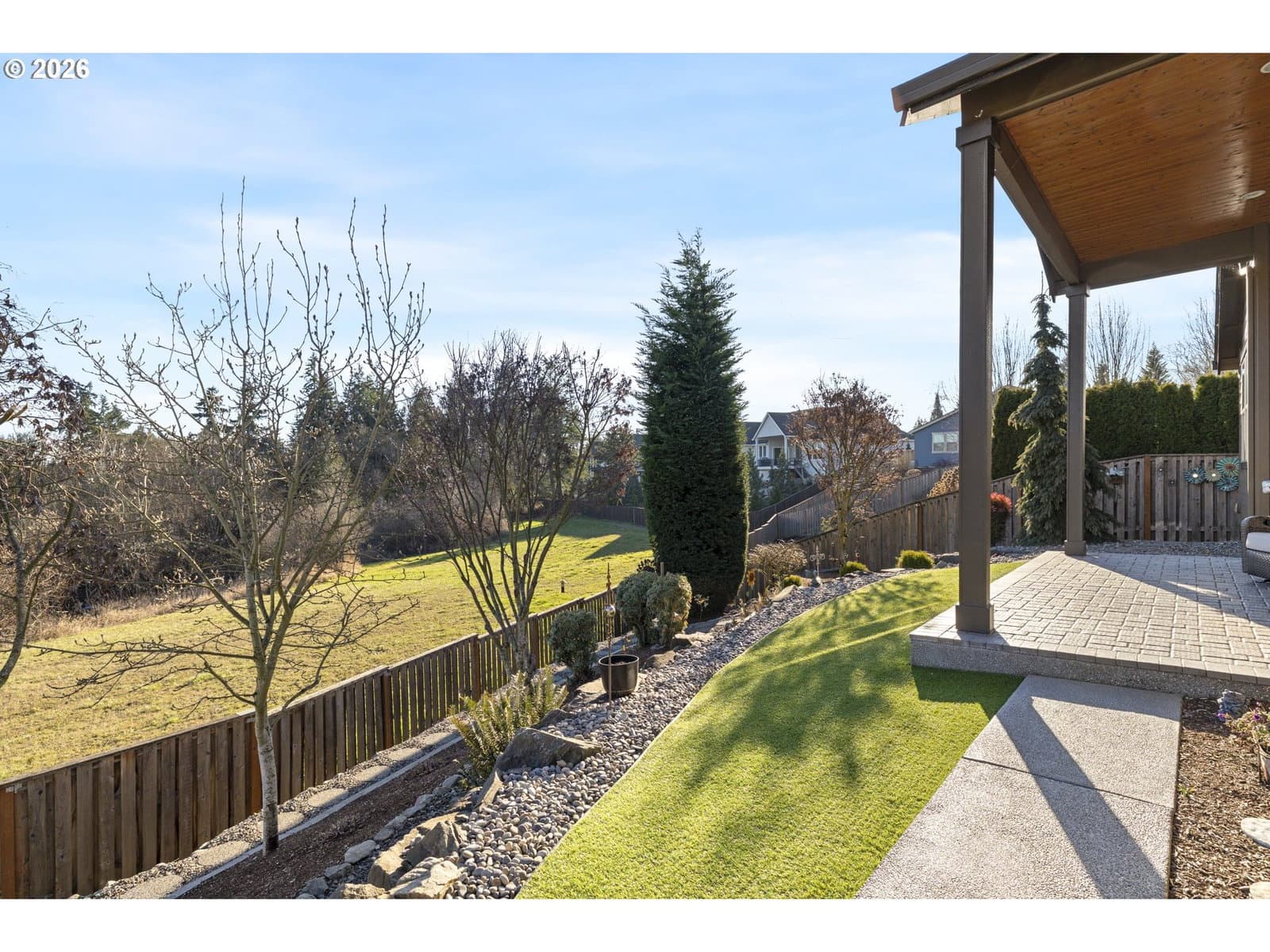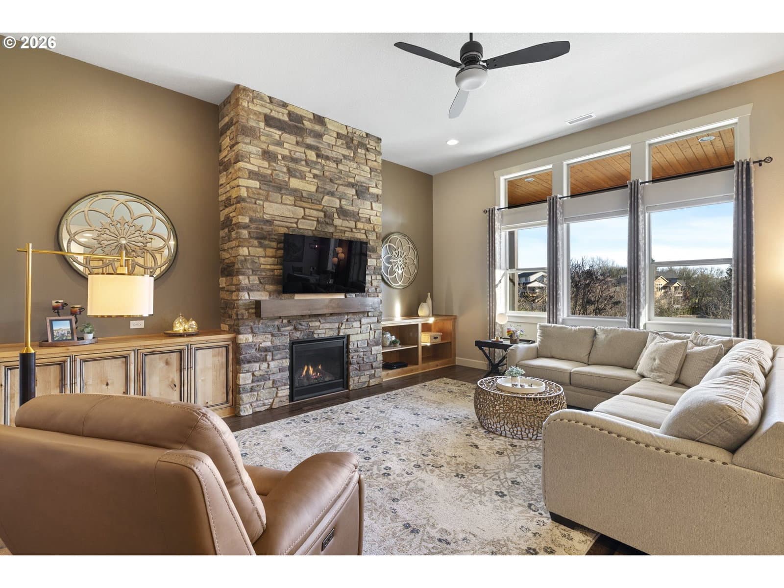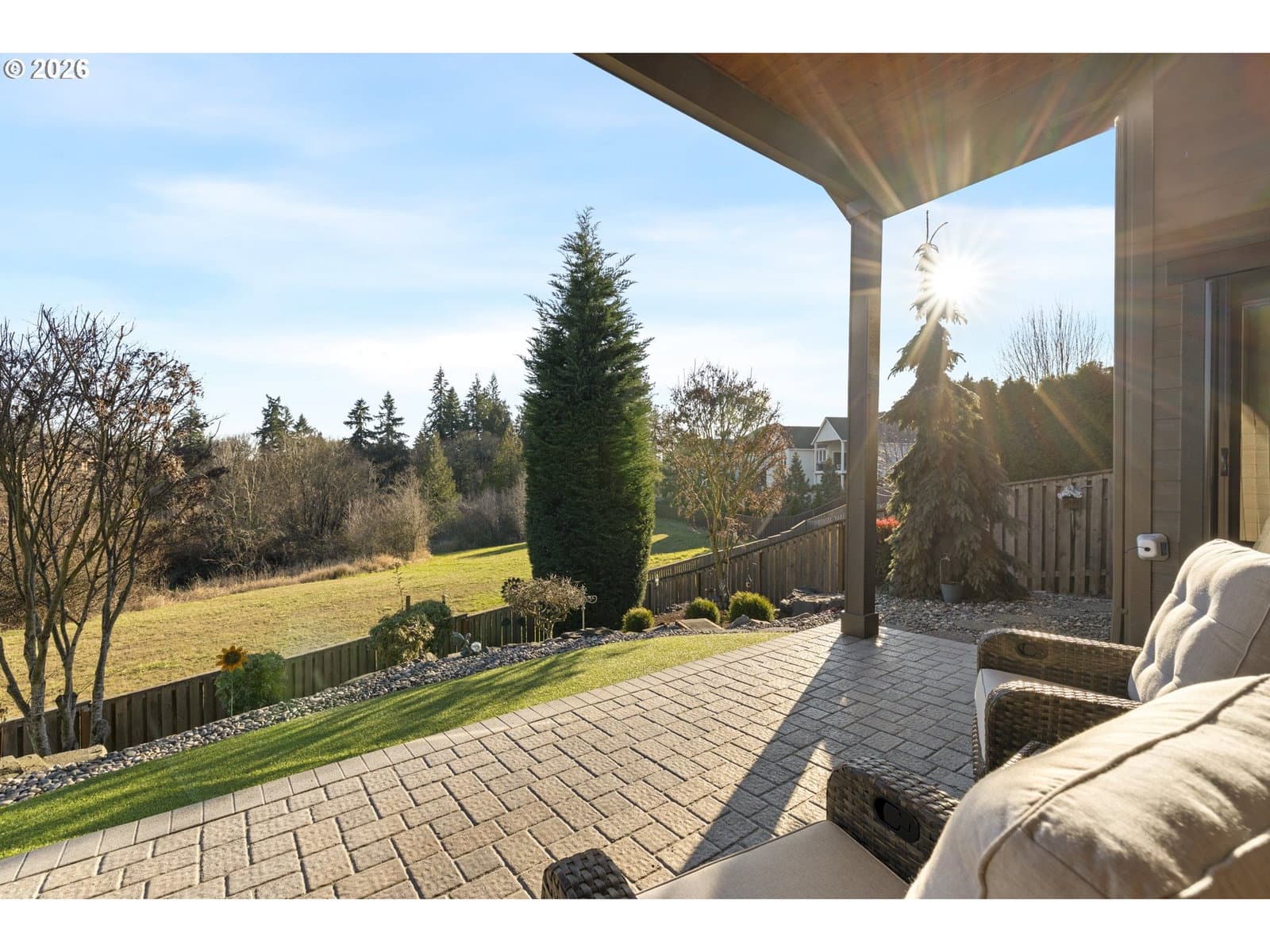Home backs to a greenbelt and features an insulated five-car garage. Experience effortless one-level living in this impeccably maintained, one-owner home built in 2015, where exceptional craftsmanship reflects the skill of the original owner, a master carpenter by trade. This thoughtfully designed 4-bedroom, 3.5 bath layout offers ideal flexibility for guests, multigenerational living, or work-from-home needs. A rare and desirable feature, the fourth bedroom includes its own ensuite bath and walk-in closet. Two additional bedrooms share a Jack-and-Jill bath, while the private primary suite is set apart from the other bedrooms and features a relaxing soaker tub, walk-in shower, and a walk-in closet with shelving. The open-concept design seamlessly connects the great room, eating nook, and formal dining area, creating an ideal flow for everyday living and entertaining. Expansive windows frame peaceful greenbelt views maintained by the HOA. Retractable Wizard screen doors from both the eating nook and primary suite lead to the covered porch, inviting fresh air while preserving comfort. The terraced backyard is designed for low-maintenance enjoyment with paver walkways, artificial turf, and a mature magnolia tree that delivers stunning spring blooms. A full sprinkler system keeps the front yard lush year-round. A truly rare highlight is the five-car garage configuration, including two tandem-depth bays, a standard bay, and a dedicated workshop with built-in shelving. The stand alone "built in" freezer remains. This extraordinary space accommodates vehicles, recreational toys, tools, and seasonal storage with room to spare, a standout feature for car enthusiasts, hobbyists, and those who value exceptional organization. Located minutes from shopping, downtown Ridgefield, the dog park, and the Wildlife Refuge, this home also offers access to highly rated Ridgefield schools, community parks, convenient freeway access, and over 35 miles of scenic walking trails nearby.