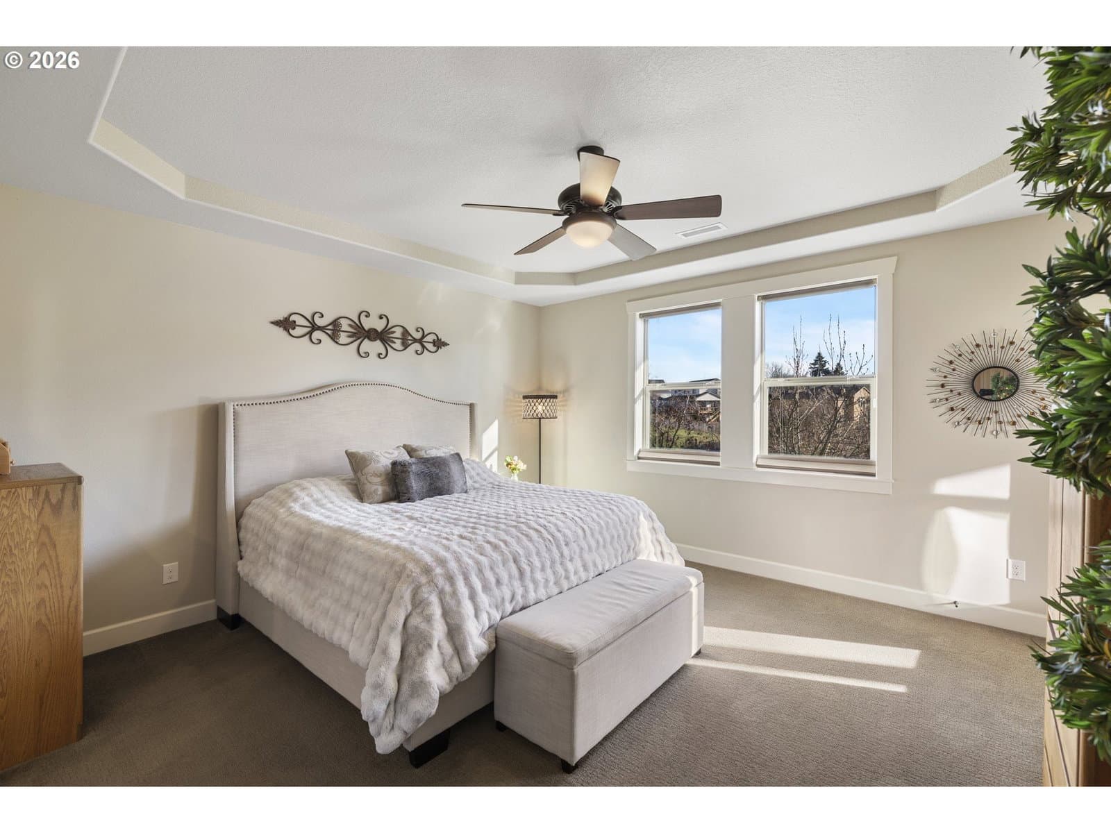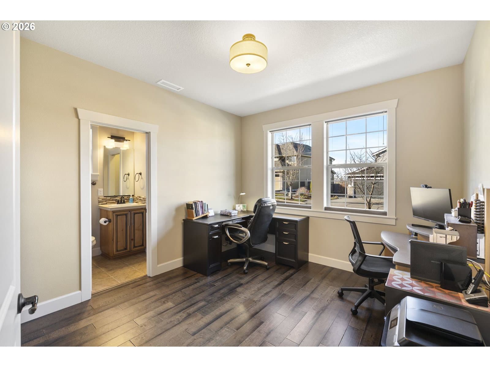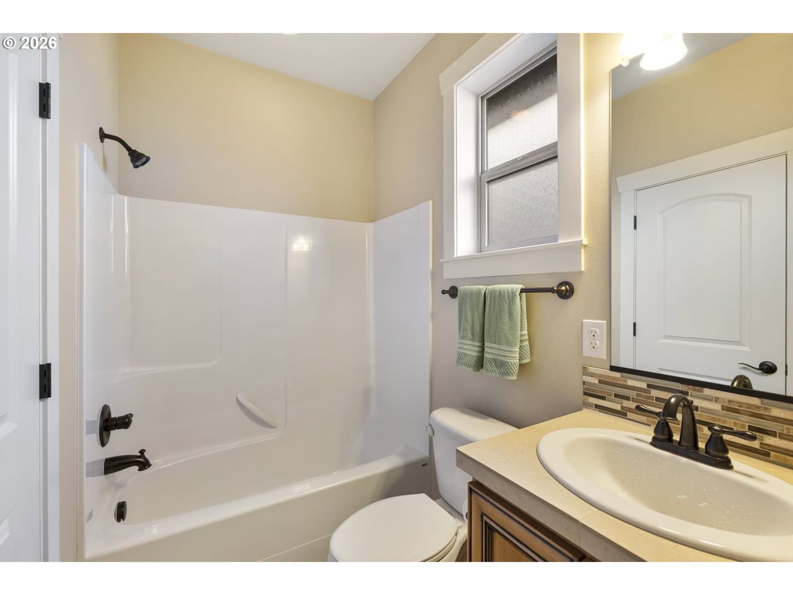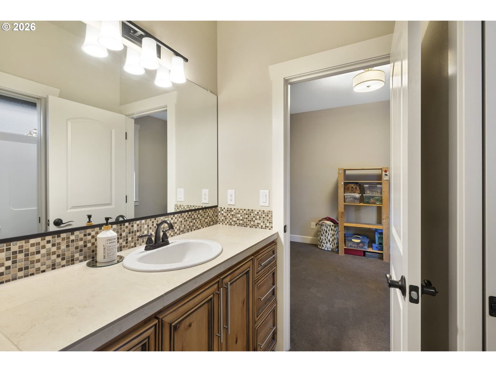 Home backs to a greenbelt and features an insulated five-car garage. Experience effortless one-level living in this impeccably maintained, one-owner home built in 2015, where exceptional craftsmanship reflects the skill of the original owner, a master carpenter by trade. This thoughtfully designed 4-bedroom, 3.5 bath layout offers ideal flexibility for guests, multigenerational living, or work-from-home needs. A rare and desirable feature, the fourth bedroom includes its own ensuite bath and walk-in closet. Two additional bedrooms share a Jack-and-Jill bath, while the private primary suite is set apart from the other bedrooms and features a relaxing soaker tub, walk-in shower, and a walk-in closet with shelving. The open-concept design seamlessly connects the great room, eating nook, and formal dining area, creating an ideal flow for everyday living and entertaining. Expansive windows frame peaceful greenbelt views maintained by the HOA. Retractable Wizard screen doors from both the eating nook and primary suite lead to the covered porch, inviting fresh air while preserving comfort. The terraced backyard is designed for low-maintenance enjoyment with paver walkways, artificial turf, and a mature magnolia tree that delivers stunning spring blooms. A full sprinkler system keeps the front yard lush year-round. A truly rare highlight is the five-car garage configuration, including two tandem-depth bays, a standard bay, and a dedicated workshop with built-in shelving. The stand alone "built in" freezer remains. This extraordinary space accommodates vehicles, recreational toys, tools, and seasonal storage with room to spare, a standout feature for car enthusiasts, hobbyists, and those who value exceptional organization. Located minutes from shopping, downtown Ridgefield, the dog park, and the Wildlife Refuge, this home also offers access to highly rated Ridgefield schools, community parks, convenient freeway access, and over 35 miles of scenic walking trails nearby.