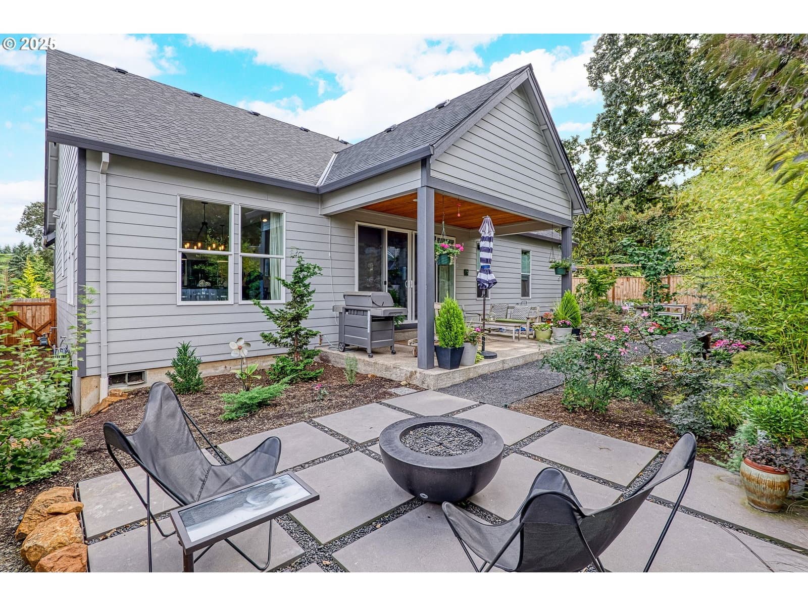 Spacious newer home in Silverton Heights area. Move in ready! Open great room floor plan with all bedrooms on main level. Great room has gas fireplace with floor to ceiling stone surround, high ceilings, dining area, slider to back yard. Bonus/Flex room up for exercise, hobbies, rec. room or guest bedroom. Kitchen with quartz counters, black stainless appliances, large island with breakfast bar, big pantry, & beautiful LVP flooring. Primary suite with walk-in closet trayed ceiling and large bathroom. Primary bathroom has Jacuzzi tub, quartz counters, 2 sinks, & walk-in shower. Fully fenced back yard with beautiful landscaping, bubbling fountain, fire pit, covered patio, plumbed for BBQ. RV parking space on the side.Easy access to downtown Silverton, dining, shopping, schools, & parks. 2.5 miles to The Oregon Garden. 16 miles to beautiful Silver Falls State Park.