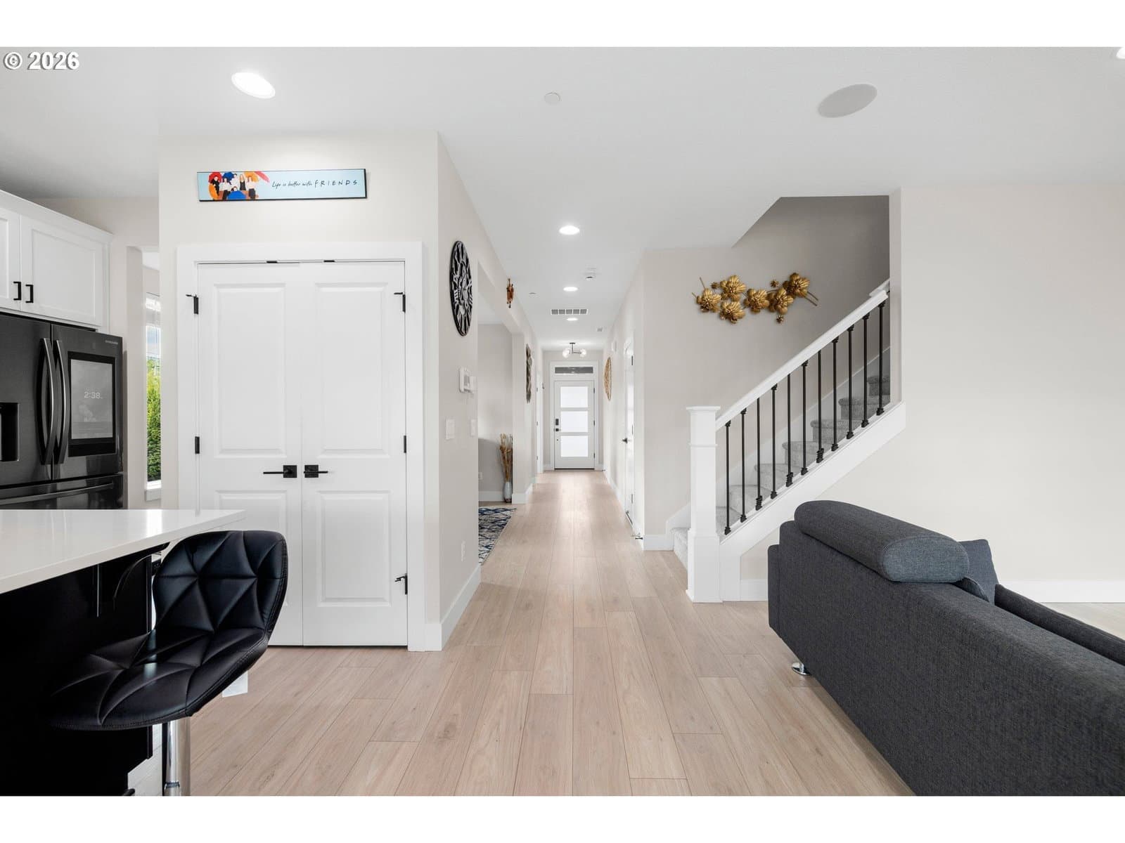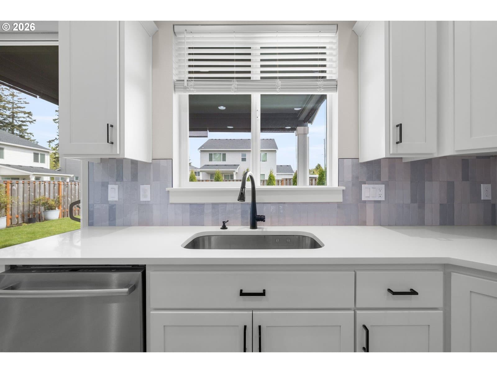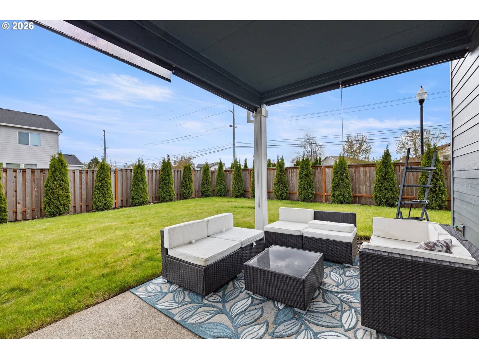 This modern 4-bedroom 3-bathroom home, built in 2023, offers thoughtful design, high-end finishes, and energy-efficient systems, delivering both comfort and long-term value. Inside, the home showcases premium finishes throughout, including quartz countertops in the kitchen and bathrooms, a large kitchen island, and designer tile work that adds a cohesive, upscale feel. A versatile main-level den provides the perfect space for a home office, study, or flex use to fit today’s lifestyle needs. Outdoor living is enhanced by an expansive covered patio, ideal for year-round entertaining and relaxation. Additional upgrades include a pre-installed 5.1 home theater sound system and installed Safe Racks for added storage solutions. Built for efficiency and future readiness, the home features ENERGY STAR® qualified appliances, double-pane windows for insulation and noise reduction, and is EV-charging capable with a solar-ready setup for future energy upgrades. Move-in ready! [Home Energy Score = 10. HES Report at https://rpt.greenbuildingregistry.com/hes/OR10214346]