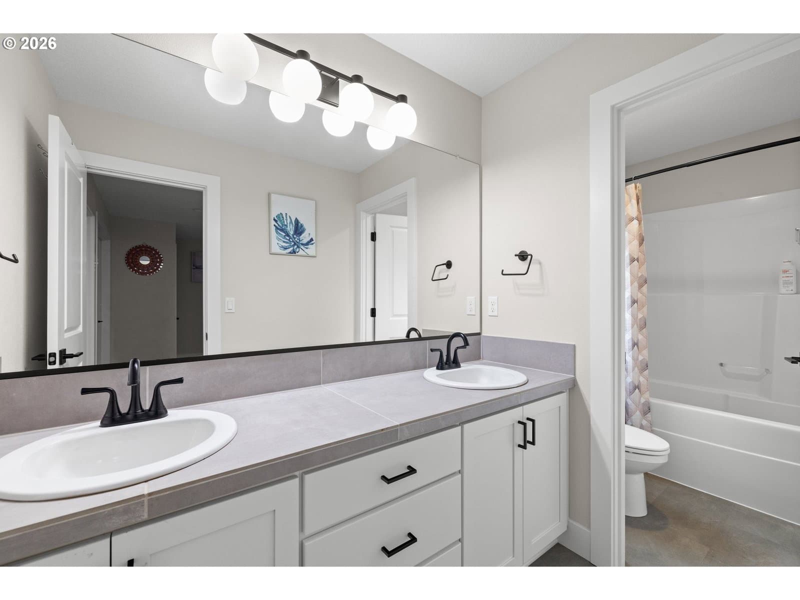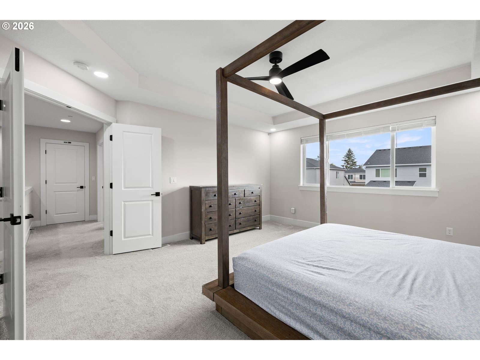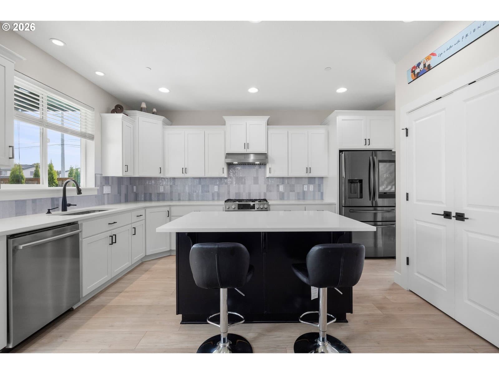 This modern 4-bedroom 3-bathroom home, built in 2023, offers thoughtful design, high-end finishes, and energy-efficient systems, delivering both comfort and long-term value. Inside, the home showcases premium finishes throughout, including quartz countertops in the kitchen and bathrooms, a large kitchen island, and designer tile work that adds a cohesive, upscale feel. A versatile main-level den provides the perfect space for a home office, study, or flex use to fit today’s lifestyle needs. Outdoor living is enhanced by an expansive covered patio, ideal for year-round entertaining and relaxation. Additional upgrades include a pre-installed 5.1 home theater sound system and installed Safe Racks for added storage solutions. Built for efficiency and future readiness, the home features ENERGY STAR® qualified appliances, double-pane windows for insulation and noise reduction, and is EV-charging capable with a solar-ready setup for future energy upgrades. Move-in ready! [Home Energy Score = 10. HES Report at https://rpt.greenbuildingregistry.com/hes/OR10214346]