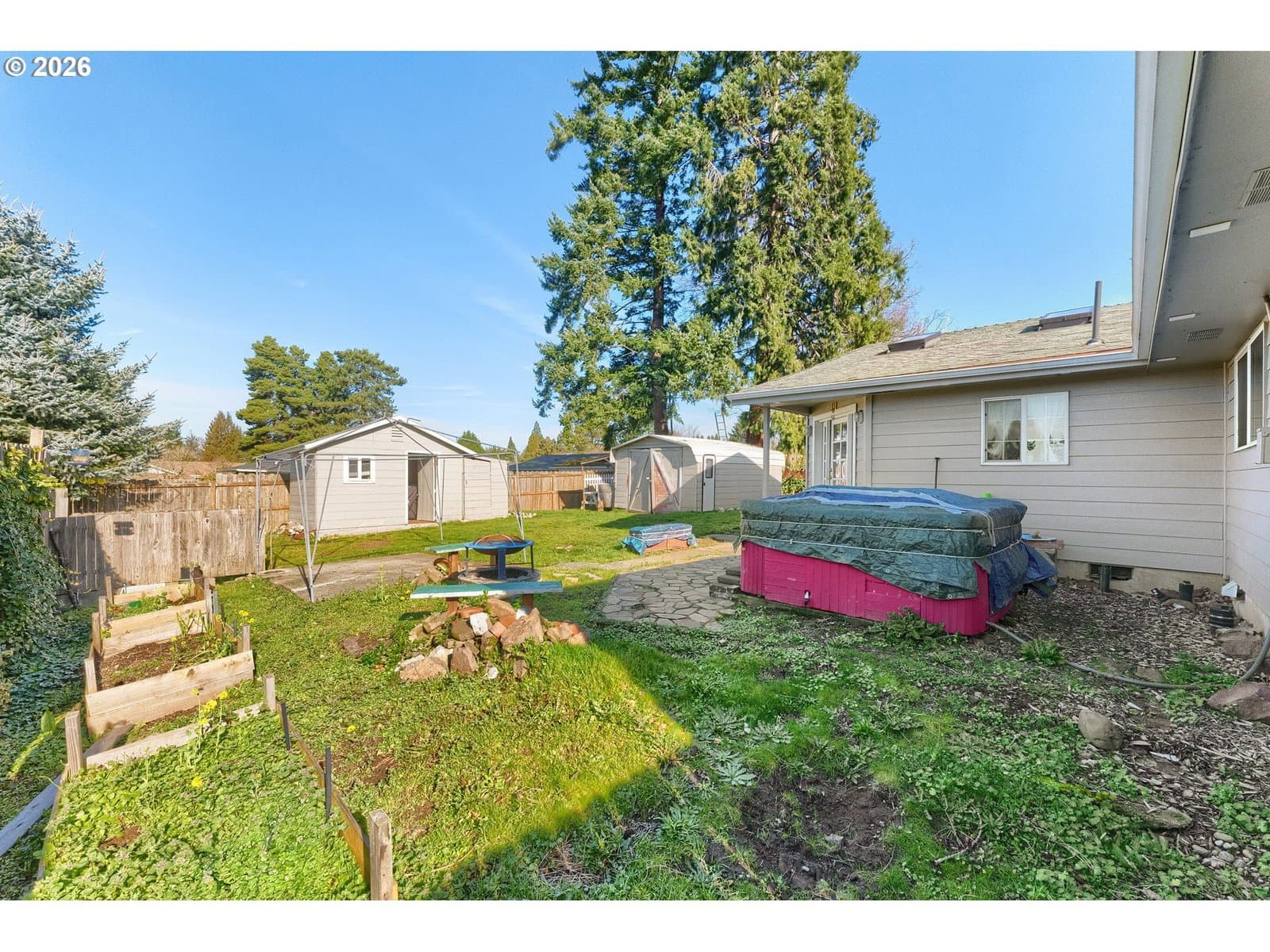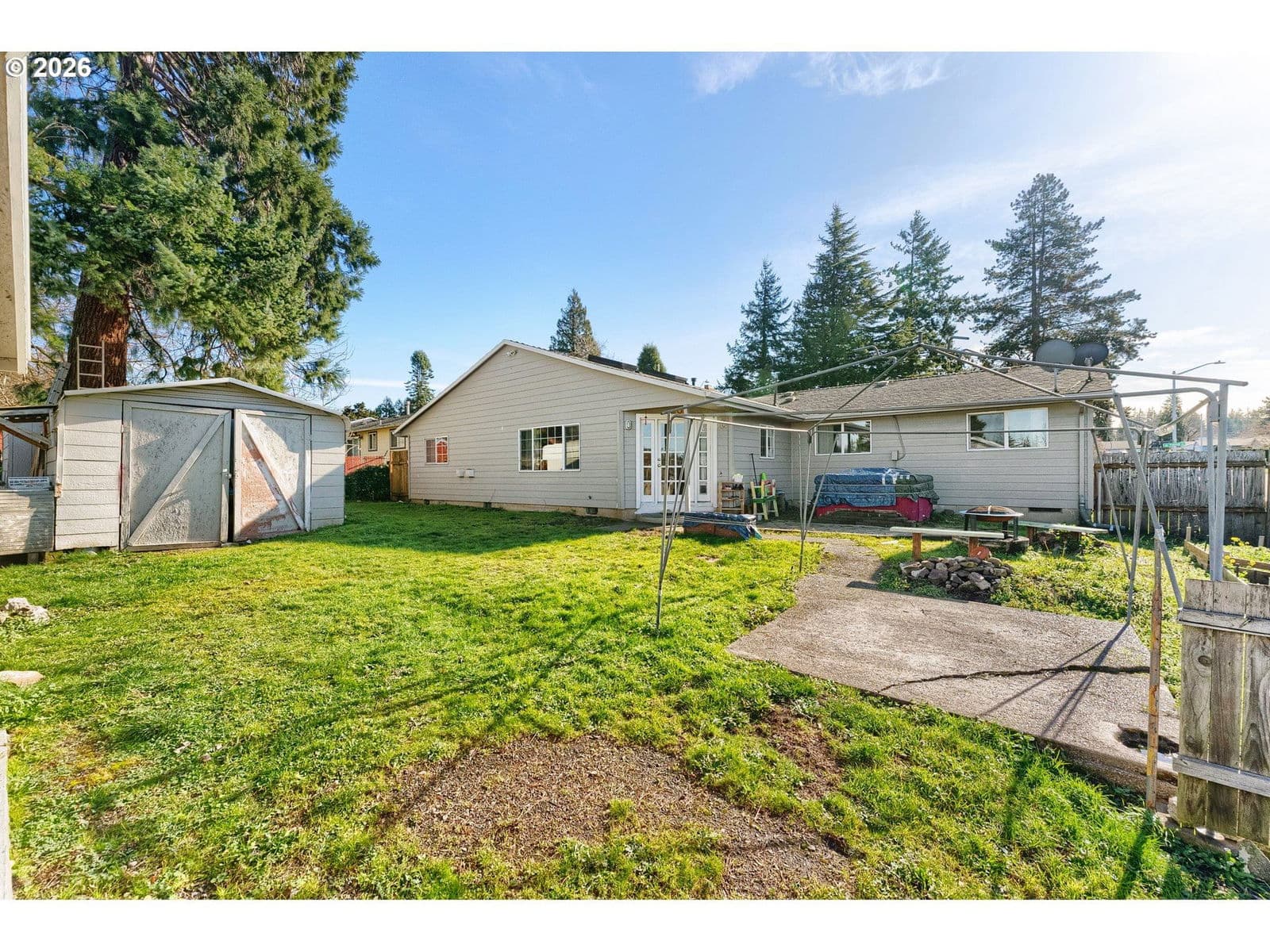 Charming one-level ranch on a spacious corner lot in Gresham! This 4-bedroom, 2-bath home offers a functional layout with nearly 2,000 sq ft of living space. The kitchen features stainless steel appliances, a freestanding range, built-in microwave, island, and durable vinyl flooring, with French doors that open to the backyard—perfect for indoor-outdoor living. Multiple living areas include a family room with vaulted ceilings and skylights, plus three fireplaces for added character and comfort. The bonus room is a great home office or media room. Enjoy the fully fenced yard with garden space and fire pit—an ideal spot to relax year-round. Convenient RV/boat parking, outbuildings for storage, and accessible one-level living complete the package. Easy access to local amenities, schools, and major routes.