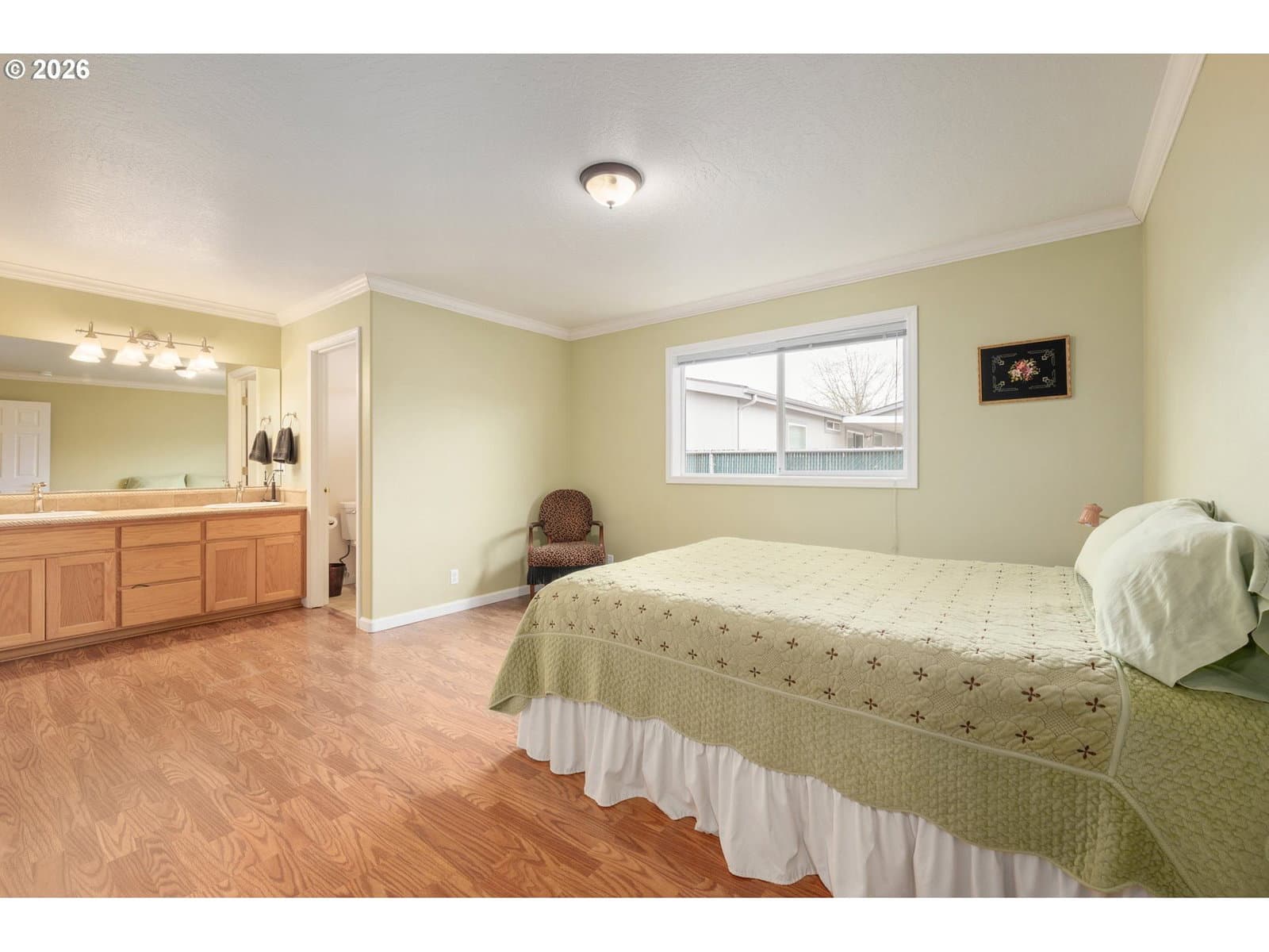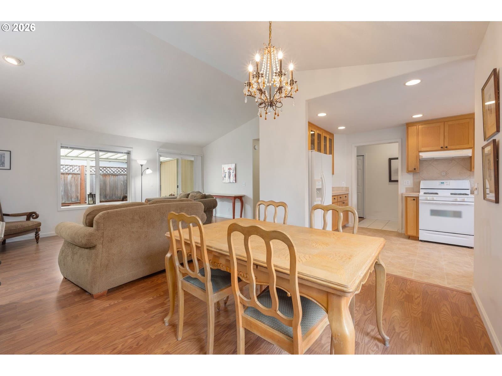 Well-Maintained, 1-Level Home w/ RV Parking and tucked away in a sweet Santa Clara neighborhood on a quiet street w/ no-thru-traffic. This 3-bedroom, 2-bath property offers 1,454 sqft of comfortable living space with vaulted ceilings, a cozy gas fireplace, and a sunny open kitchen w/ gas range that looks out over the unique Weeping Blue Cedar in the front yard. The primary bedroom features dual vanities and a walk-in shower and there are 2 more bedrooms, another full bath and a spacious laundry room w/ utility sink. Laminate floors throughout (no carpet!) and all appliances are included. The gas furnace and heat pump have both been replaced in the last couple years and the roof was replaced in 2014. Outside, enjoy an easy-maintenance and fully-fence yard w/ covered patio, beautiful rhododendrons and camellias, dog run, tool shed, gated RV parking in back, paved RV parking in front, and a two-car finished garage. Come see your new, move-in-ready home!
