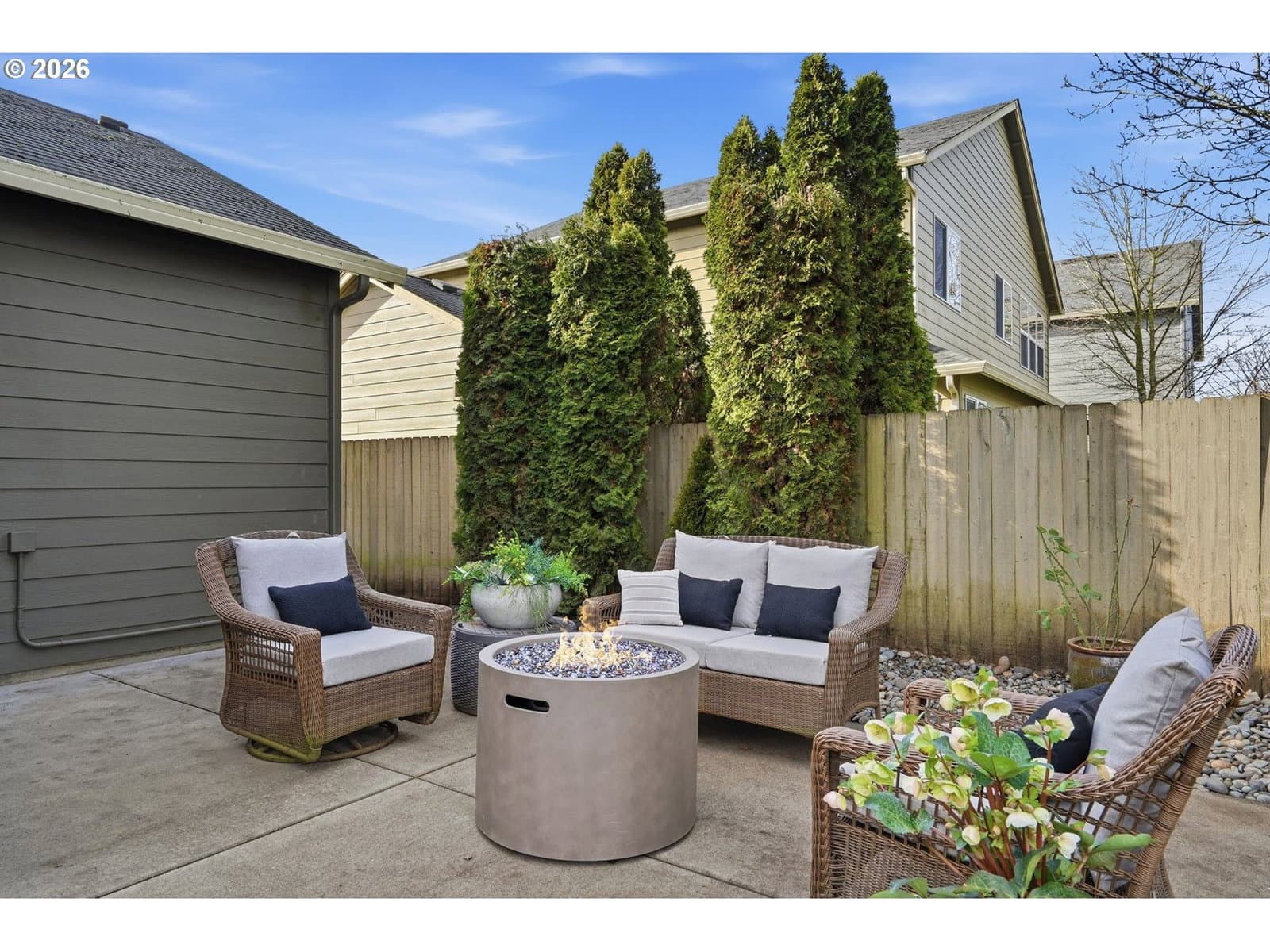 Located in the desirable Village on the Glen neighborhood, this thoughtfully designed home offers flexible living spaces, access to outdoor amenities, and a convenient central location. Less than 20 minutes to PDX Airport and approximately 10 minutes to WSU Vancouver, with easy access to shopping, dining, and major commuter routes.The floor plan includes three bedrooms plus a den with a closet, offering the potential for a fourth bedroom, along with 2.5 bathrooms. The kitchen features newer stainless steel appliances, custom cabinetry, a large island, and a walk-in pantry, providing ample storage. French doors off the dining area open to a freshly landscaped backyard, ideal for gatherings and everyday enjoyment. The property also includes private gated access to an expansive green space with walking trails.Upstairs, double doors lead to the primary bedroom with an ensuite bathroom featuring dual vanities, a corner soaking tub, and a large walk-in closet with built-ins. Two additional bedrooms and a generously sized laundry room complete the upper level.An oversized three-car garage includes built-in shelving and a large storage loft in the third bay, offering exceptional storage options. The home is equipped with a central vacuum system throughout, including the kitchen, as well as a green UV air purification system in the air ducts for healthy living. Professionally designed interiors allow for the option to purchase the home fully furnished at an additional cost. Seller to provide a flooring allowance. Priced to sell at $575,000.