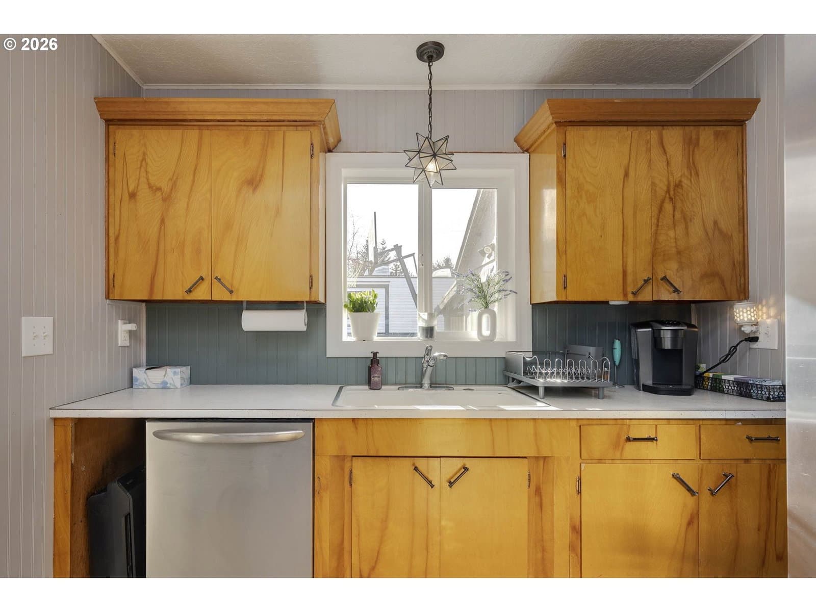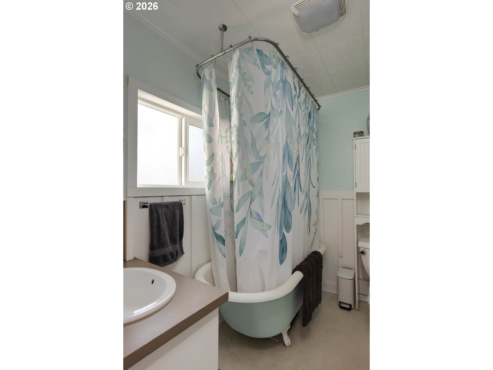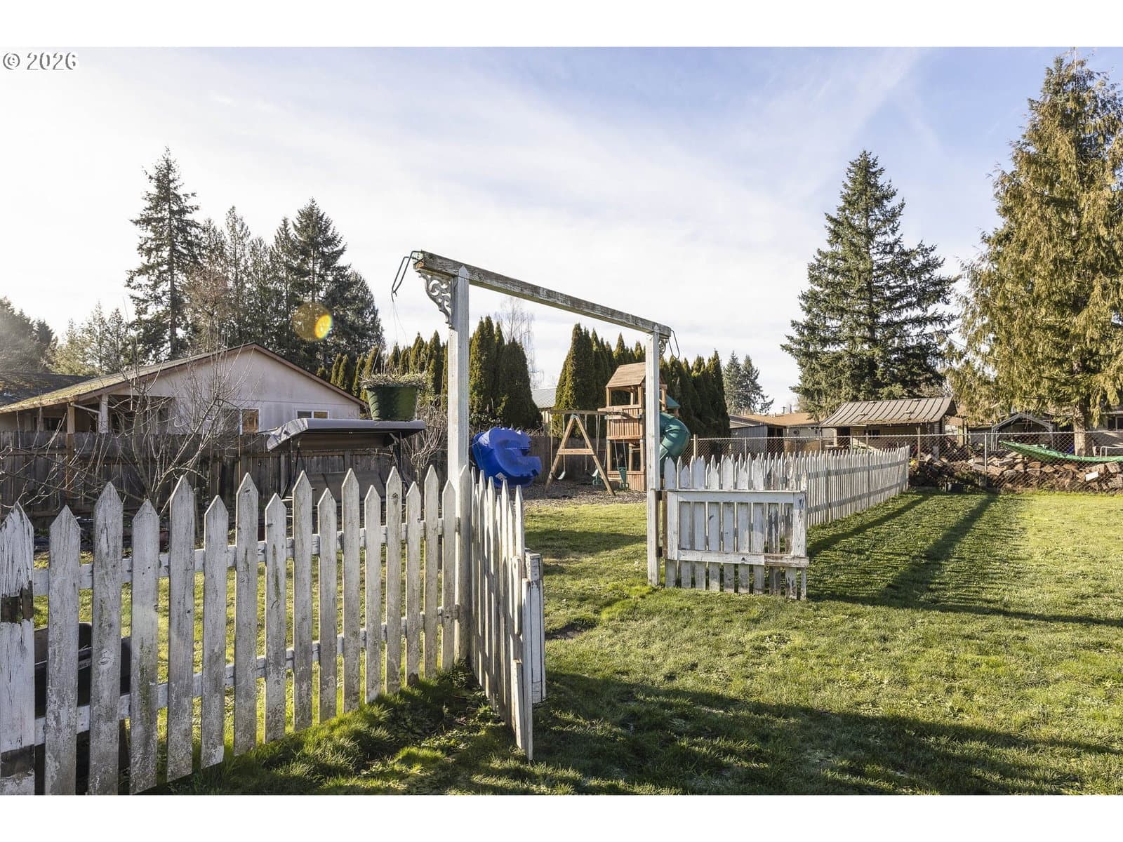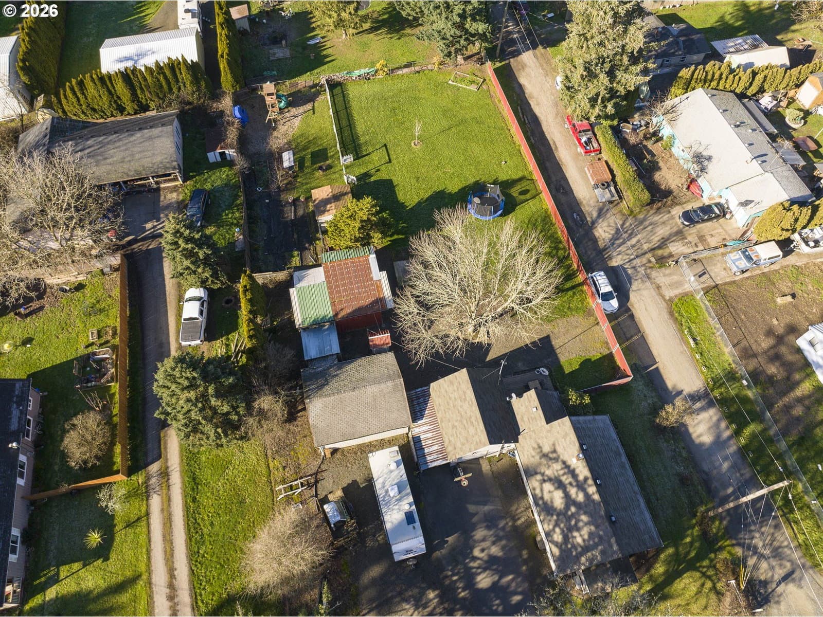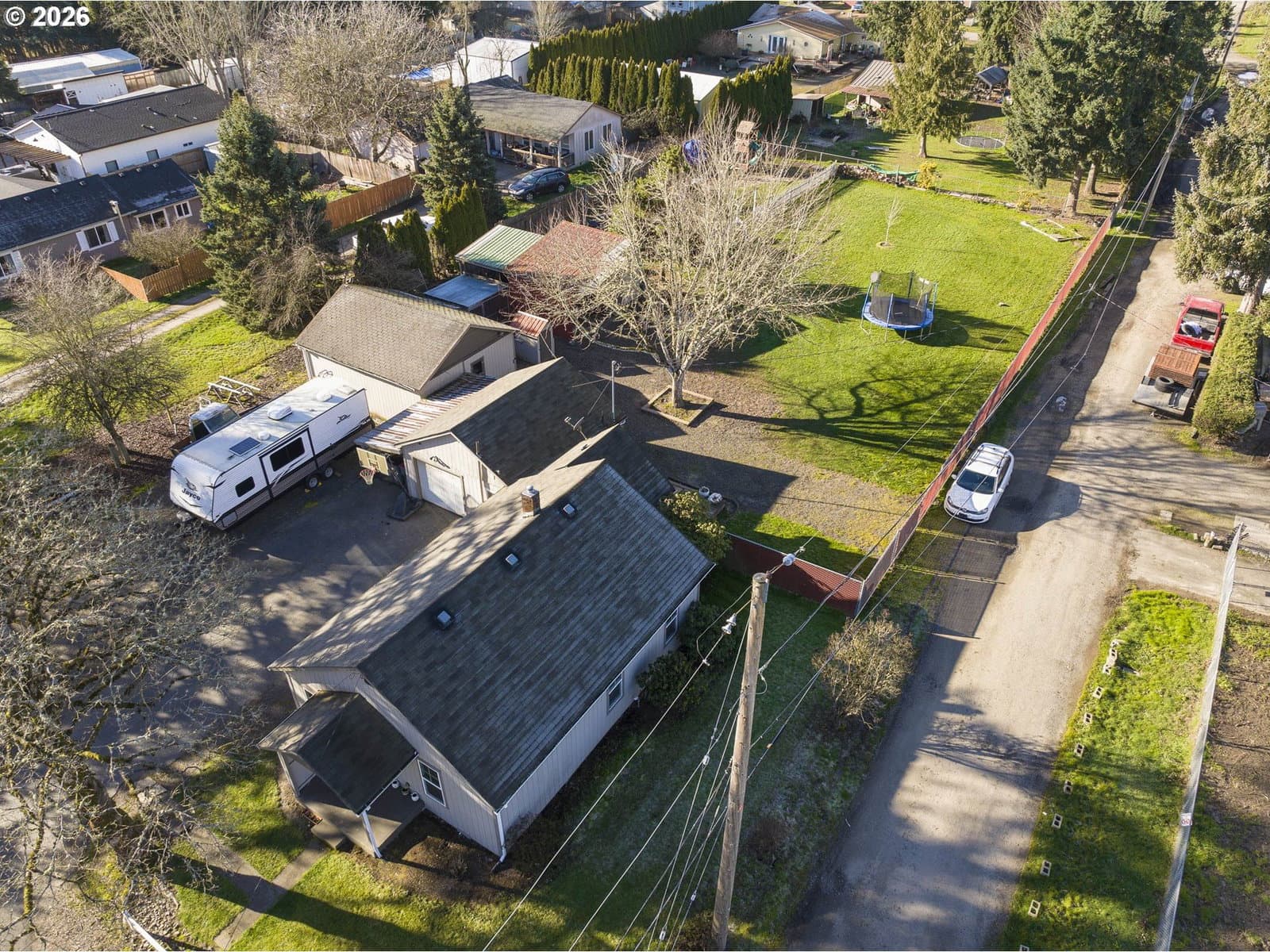 Nearly ½-acre corner lot • Powered shop + RV parking w/ sewer clean-out • Fenced garden + chicken coop. Cute, clean, remodeled 2-bed, 1-bath bungalow in the town of Amity. Vintage character paired with practical updates, including an updated kitchen with refrigerator, dishwasher, convection oven with induction cooktop and air-fryer functionality, plus a clawfoot tub with shower. The expansive fenced yard includes a fully fenced garden area, chicken coop, irrigation well (not recently used), and covered RV/boat parking. RV parking in the driveway includes a sewer clean-out. Outdoor structures offer extensive flexibility with a 24×20 shop with power, additional 20×24 shop space, a 12×12 storage shed, and a 13×11 shed. Natural gas is available, and sellers have completed recent professional crawlspace work. Nearby local dining, coffee shops, and daily conveniences, plus Amity City Park for outdoor recreation. Easy access to Eola-Amity Hills AVA wineries. Opportunity to expand or potentially divide per City of Amity guidelines (buyer to perform due diligence). A combination of land, utility, and small-town convenience with space for a wide range of uses.