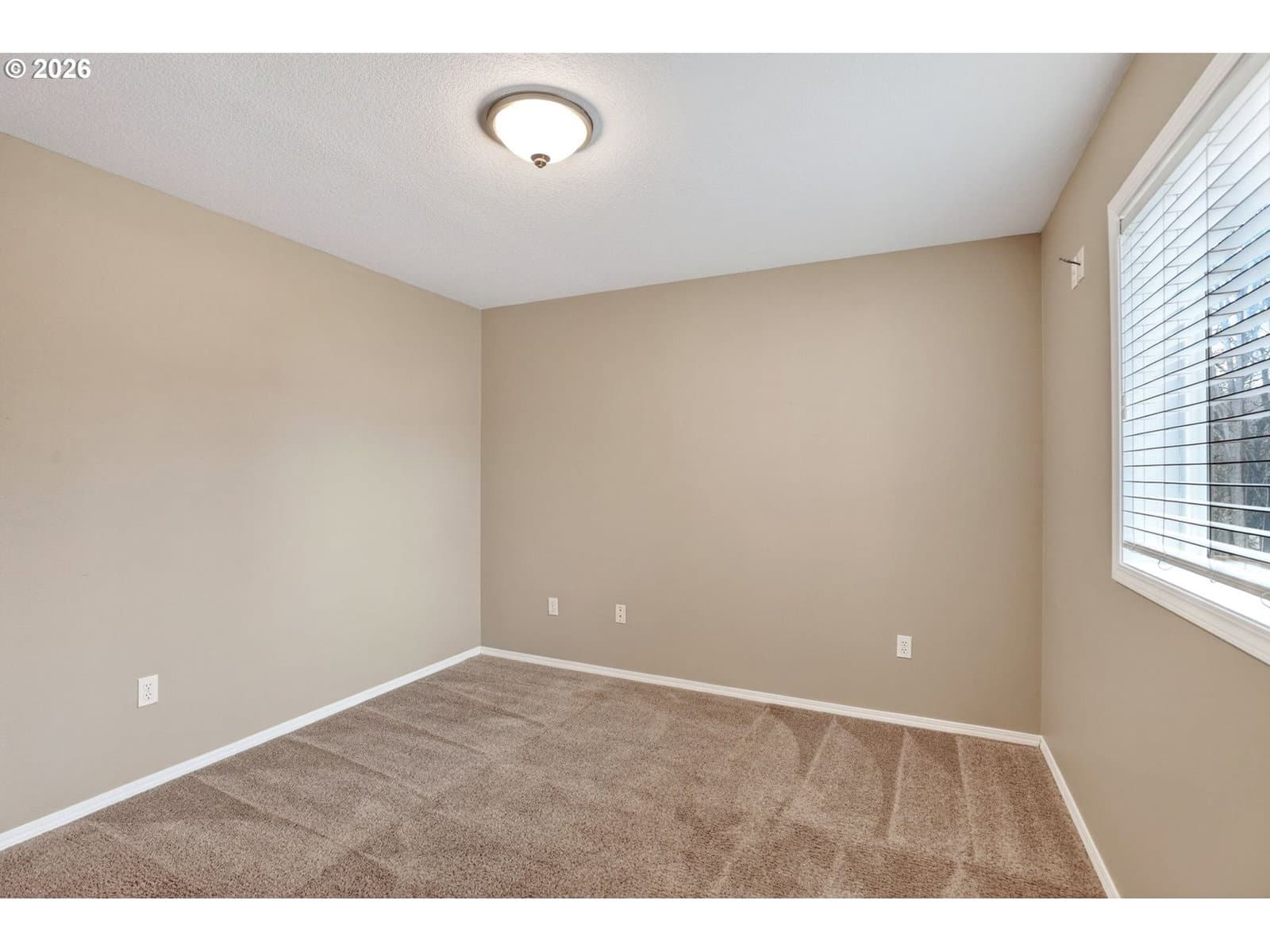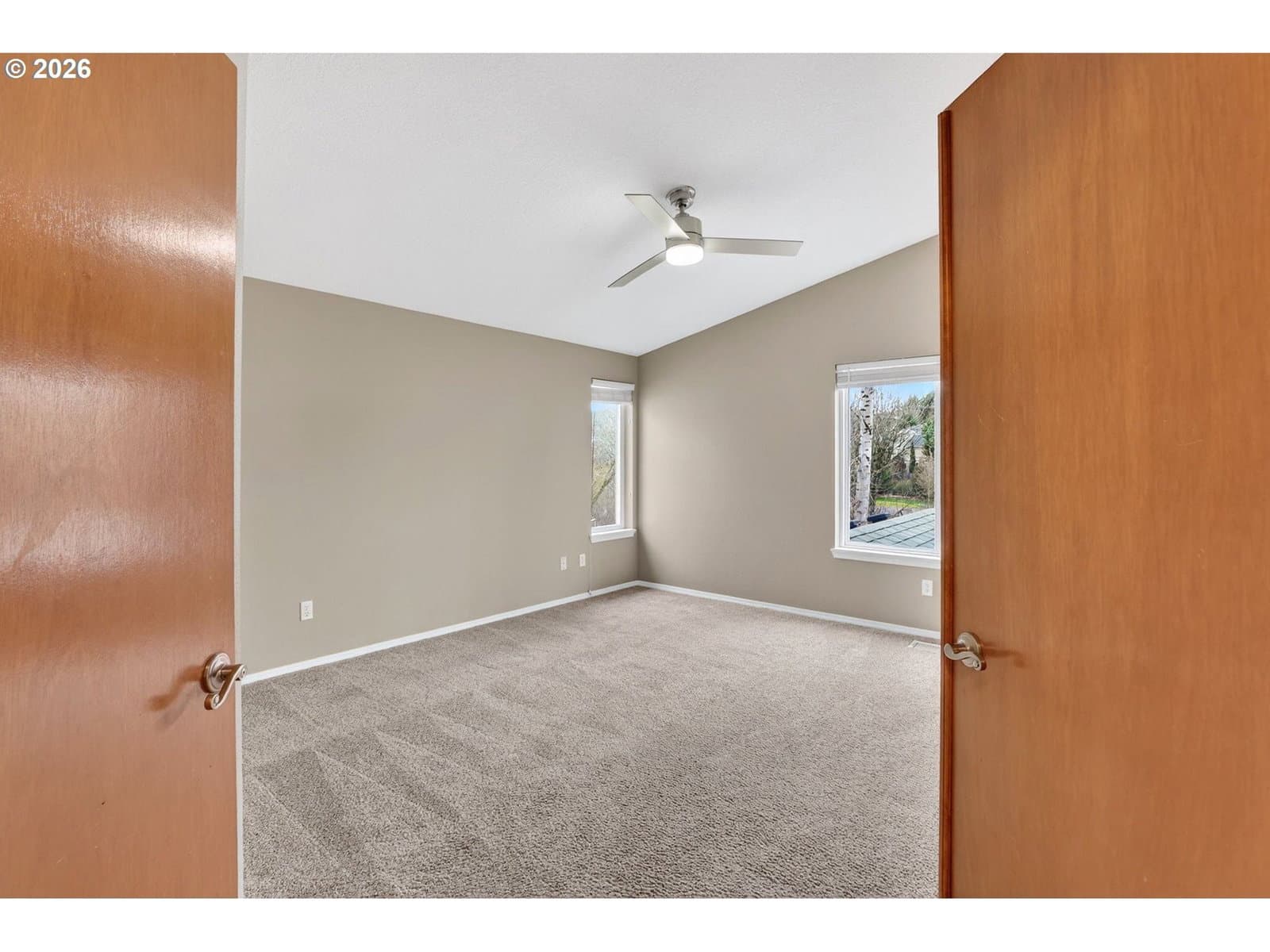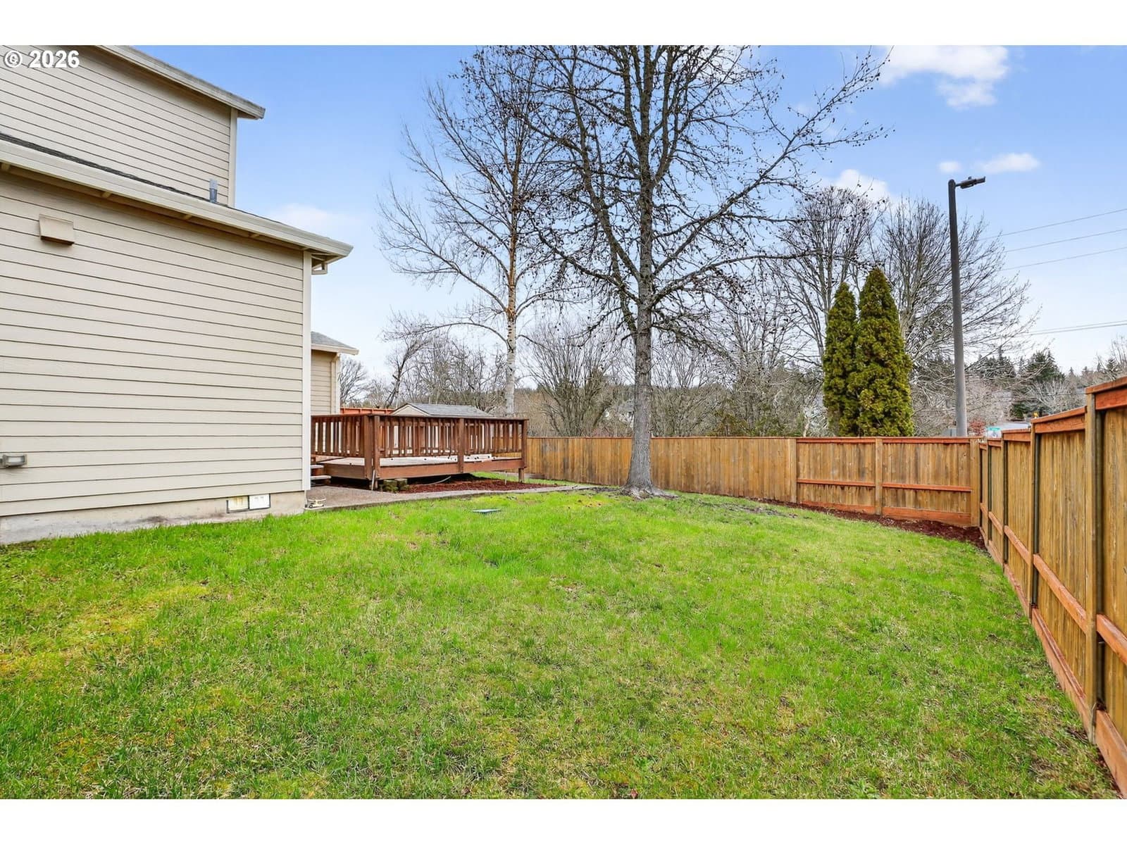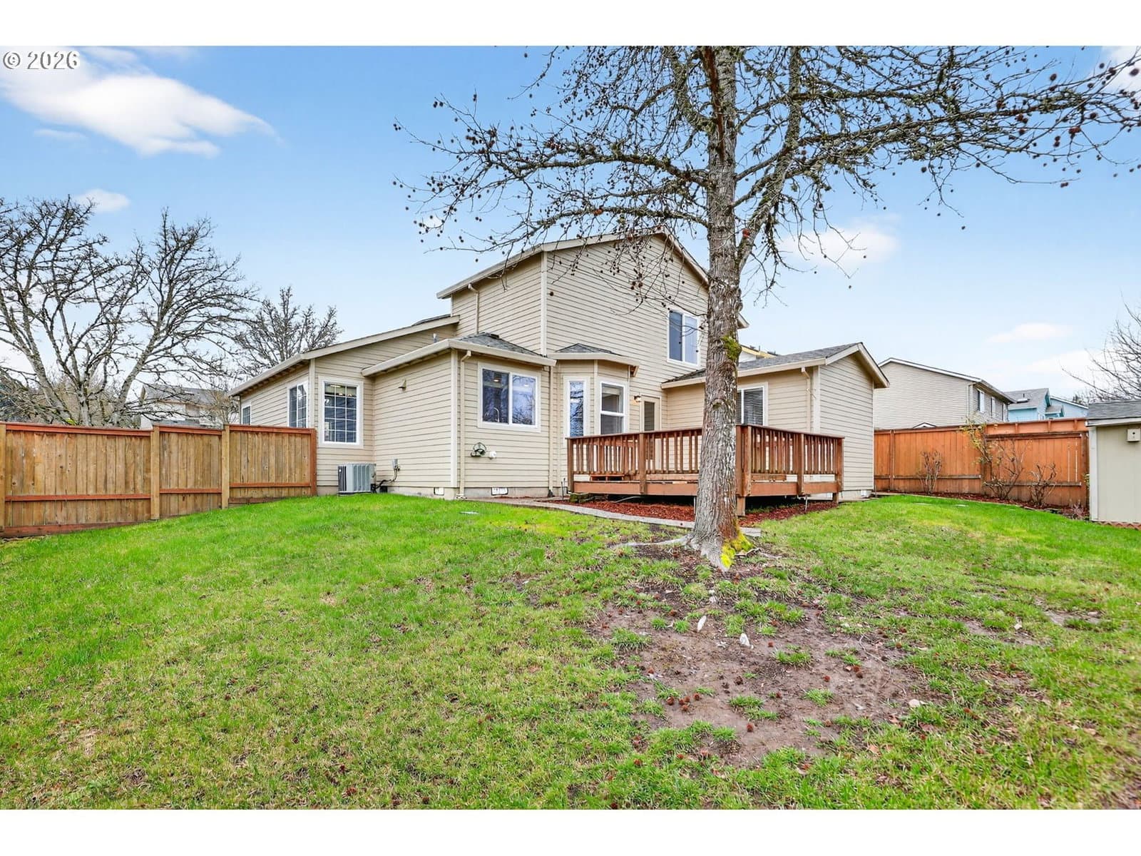 Situated on the back side of a serene, quiet common area and on a desirable corner lot, this beautifully designed 4-bedroom, 2,092 sq ft home offers a rare combination of privacy, functionality, and inviting living spaces. The upper level features a spacious primary suite complete with a large ensuite bath, a walk-in closet, stand alone shower and water closet (new toilet in 2018). Two additional upstairs bedrooms share a convenient Jack-and-Jill style bathroom, ideal for family or guests. Downstairs, you’ll find a fourth bedroom—perfect for a home office or guest suite—along with a formal living room, a welcoming family room w/gas fireplace for ambience, and a well-appointed kitchen. The kitchen includes a charming bay window nook, creating a bright and cozy space for everyday meals, updates as follows: new light fixture 2022 in nook area, FS Fridge 2017, dishwasher 2023, range 2024. Utility room with washer (2017)/dryer. All new ceiling fans in the entire home 2022, HVAC with added AC was replaced in 2013. Step outside to a large back deck overlooking the peaceful common area, where you can relax and enjoy the quiet setting with no neighbors behind you. This outdoor space is perfect for entertaining or unwinding while surrounded by nature completely fenced with cedar and was new in 2018. With its thoughtful layout, private setting, and tranquil views, this home is a wonderful opportunity for buyers seeking comfort and versatility in a peaceful well established neighborhood with not much turnover. Walking distance to New Seasons, close by to Big Al's, shopping and restaurants.