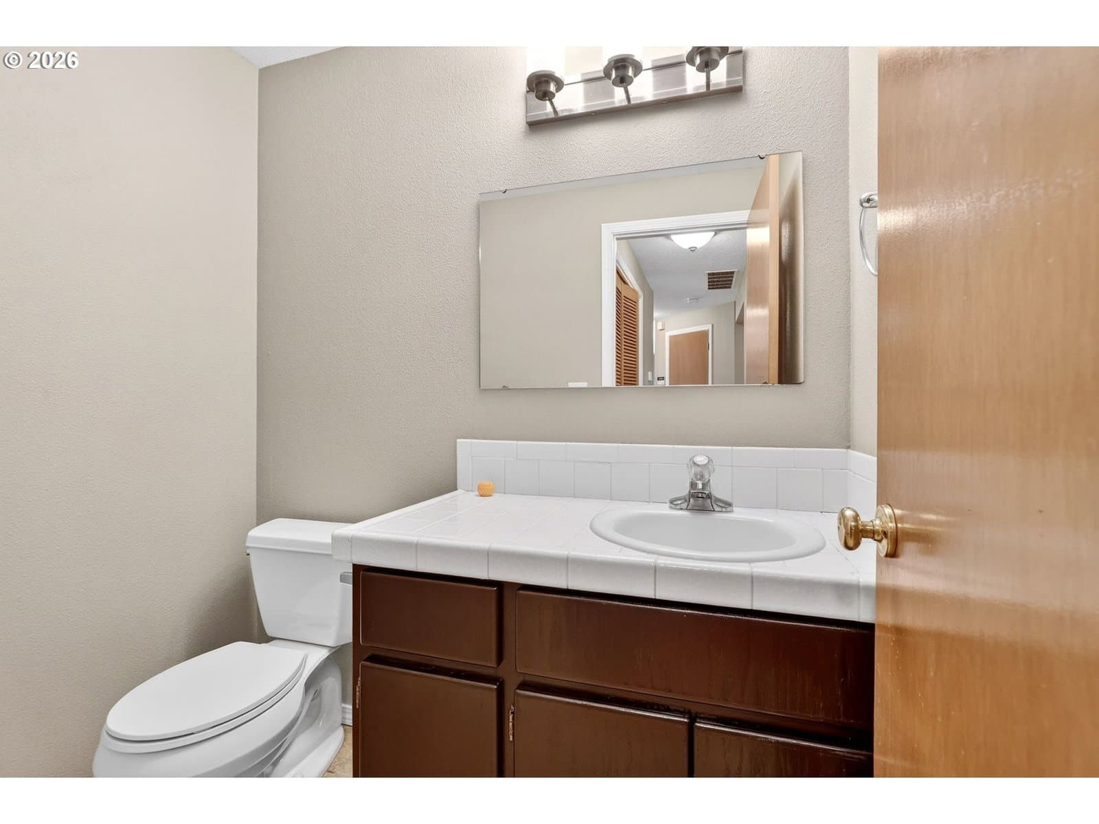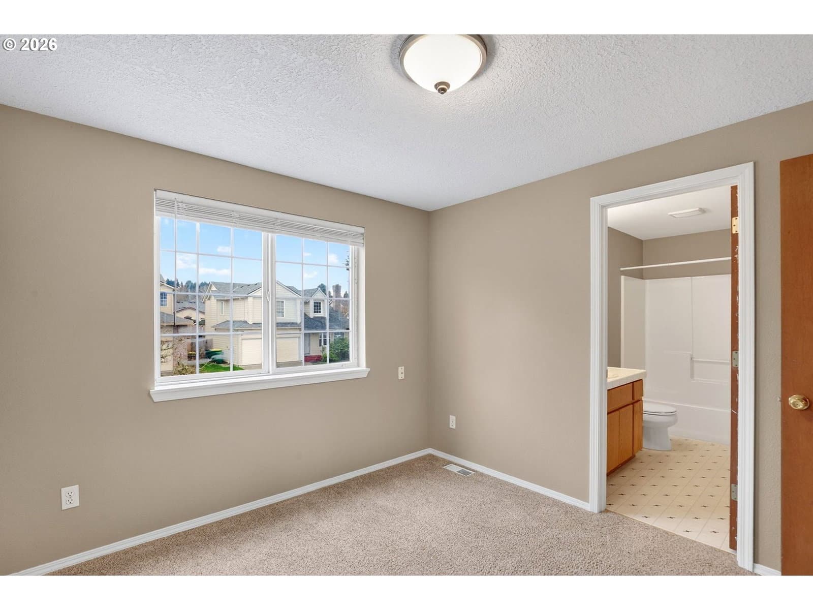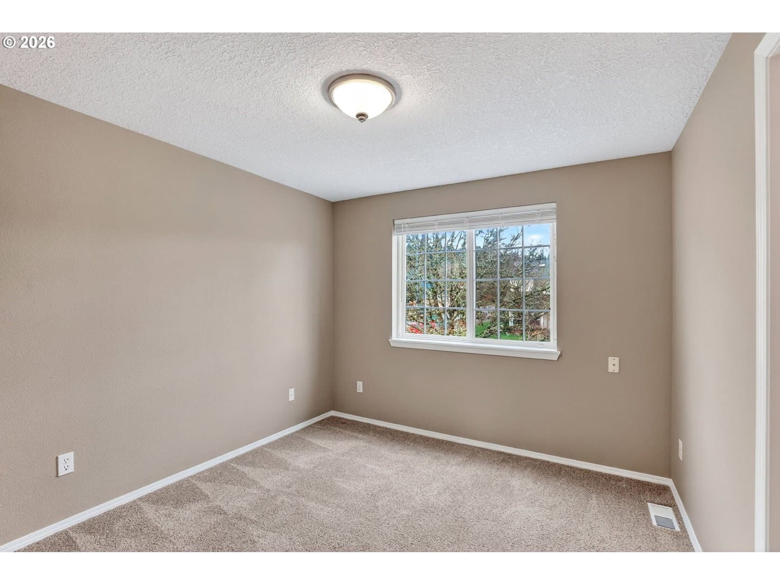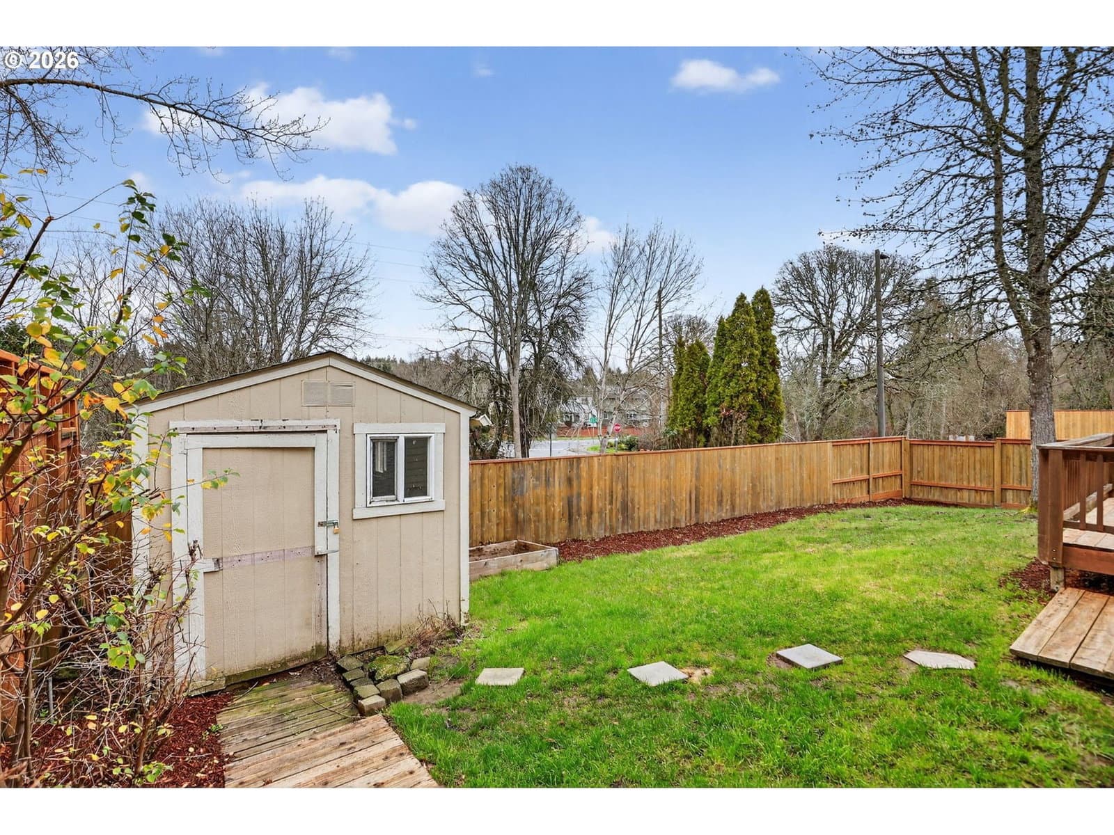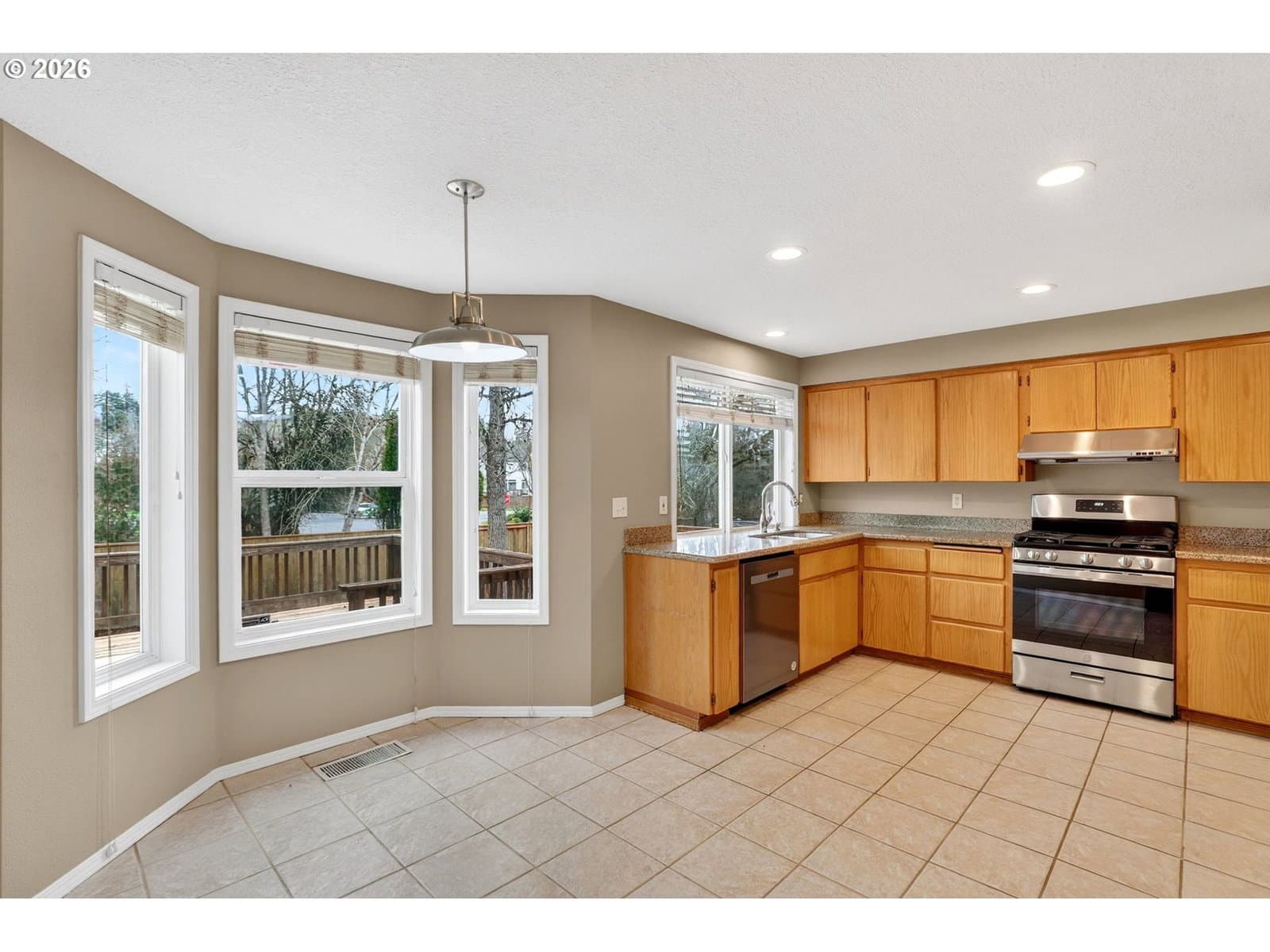Situated on the back side of a serene, quiet common area and on a desirable corner lot, this beautifully designed 4-bedroom, 2,092 sq ft home offers a rare combination of privacy, functionality, and inviting living spaces. The upper level features a spacious primary suite complete with a large ensuite bath, a walk-in closet, stand alone shower and water closet (new toilet in 2018). Two additional upstairs bedrooms share a convenient Jack-and-Jill style bathroom, ideal for family or guests. Downstairs, you’ll find a fourth bedroom—perfect for a home office or guest suite—along with a formal living room, a welcoming family room w/gas fireplace for ambience, and a well-appointed kitchen. The kitchen includes a charming bay window nook, creating a bright and cozy space for everyday meals, updates as follows: new light fixture 2022 in nook area, FS Fridge 2017, dishwasher 2023, range 2024. Utility room with washer (2017)/dryer. All new ceiling fans in the entire home 2022, HVAC with added AC was replaced in 2013. Step outside to a large back deck overlooking the peaceful common area, where you can relax and enjoy the quiet setting with no neighbors behind you. This outdoor space is perfect for entertaining or unwinding while surrounded by nature completely fenced with cedar and was new in 2018. With its thoughtful layout, private setting, and tranquil views, this home is a wonderful opportunity for buyers seeking comfort and versatility in a peaceful well established neighborhood with not much turnover. Walking distance to New Seasons, close by to Big Al's, shopping and restaurants.