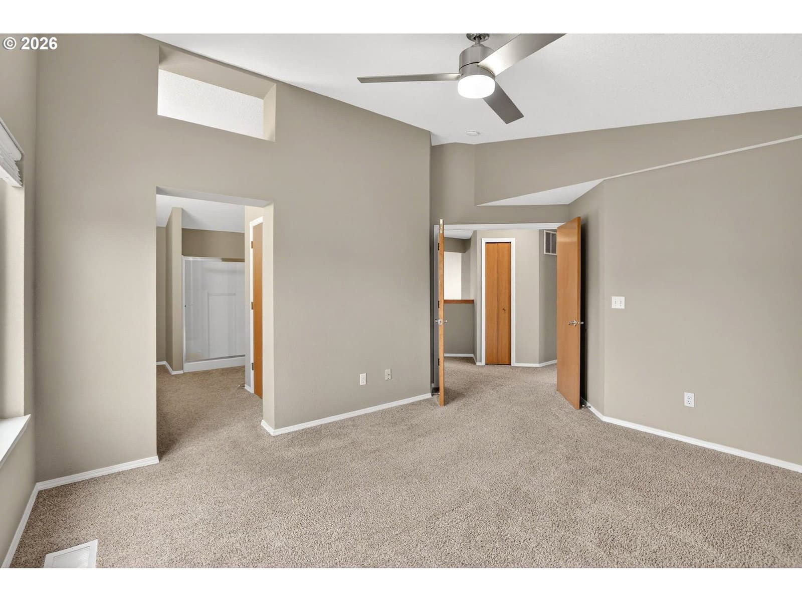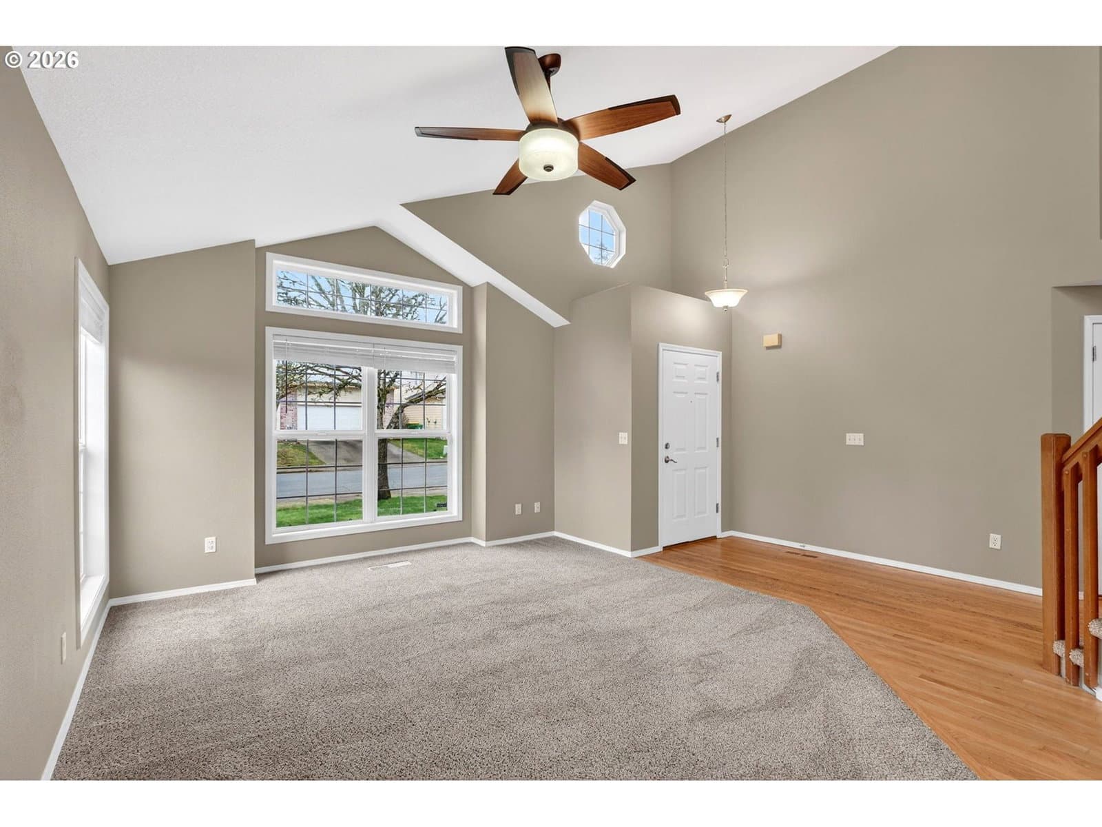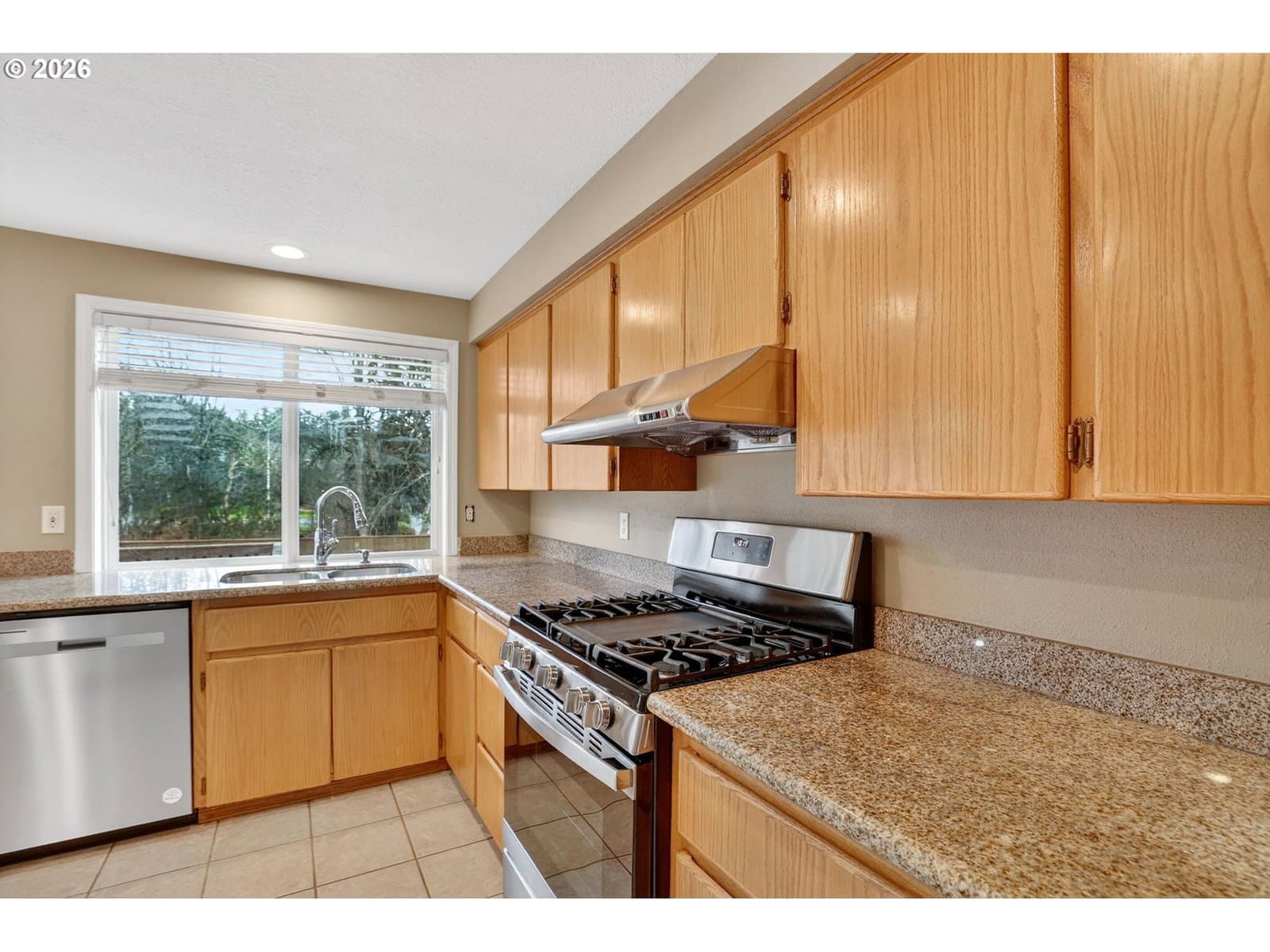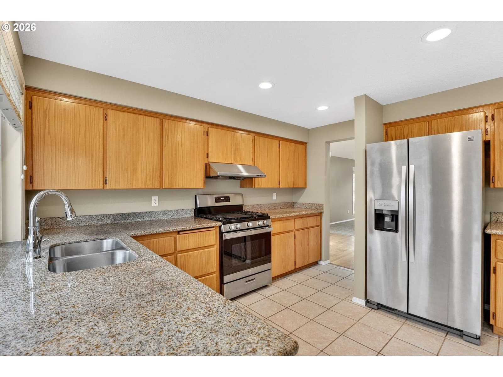 Situated on the back side of a serene, quiet common area and on a desirable corner lot, this beautifully designed 4-bedroom, 2,092 sq ft home offers a rare combination of privacy, functionality, and inviting living spaces. The upper level features a spacious primary suite complete with a large ensuite bath, a walk-in closet, stand alone shower and water closet (new toilet in 2018). Two additional upstairs bedrooms share a convenient Jack-and-Jill style bathroom, ideal for family or guests. Downstairs, you’ll find a fourth bedroom—perfect for a home office or guest suite—along with a formal living room, a welcoming family room w/gas fireplace for ambience, and a well-appointed kitchen. The kitchen includes a charming bay window nook, creating a bright and cozy space for everyday meals, updates as follows: new light fixture 2022 in nook area, FS Fridge 2017, dishwasher 2023, range 2024. Utility room with washer (2017)/dryer. All new ceiling fans in the entire home 2022, HVAC with added AC was replaced in 2013. Step outside to a large back deck overlooking the peaceful common area, where you can relax and enjoy the quiet setting with no neighbors behind you. This outdoor space is perfect for entertaining or unwinding while surrounded by nature completely fenced with cedar and was new in 2018. With its thoughtful layout, private setting, and tranquil views, this home is a wonderful opportunity for buyers seeking comfort and versatility in a peaceful well established neighborhood with not much turnover. Walking distance to New Seasons, close by to Big Al's, shopping and restaurants.