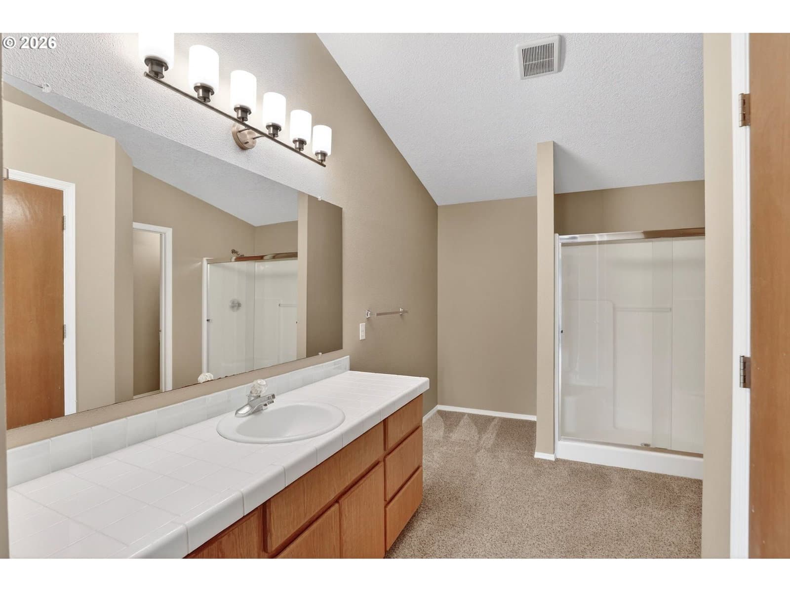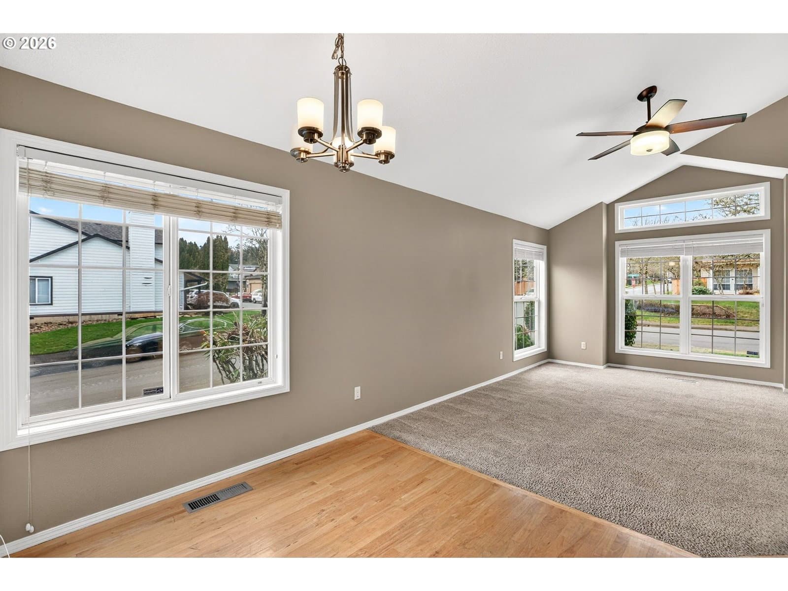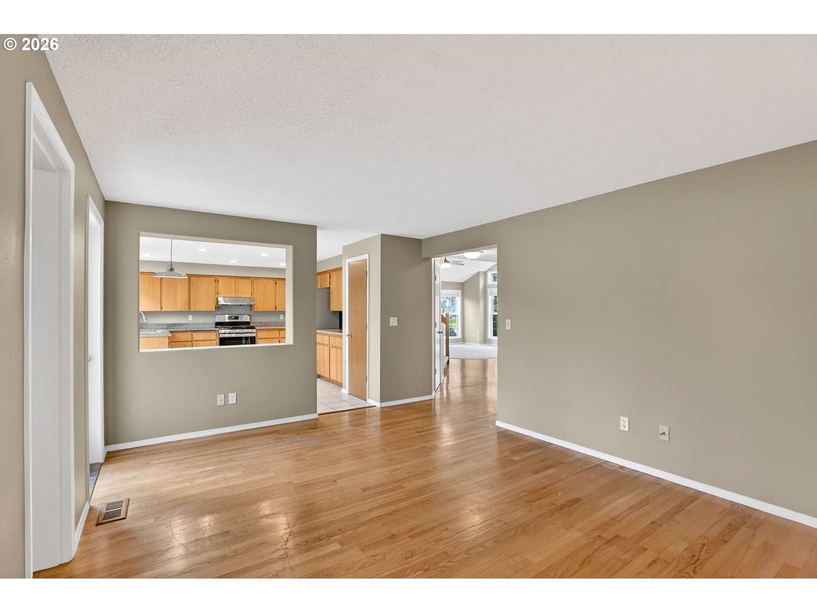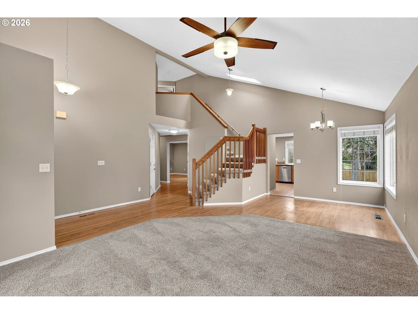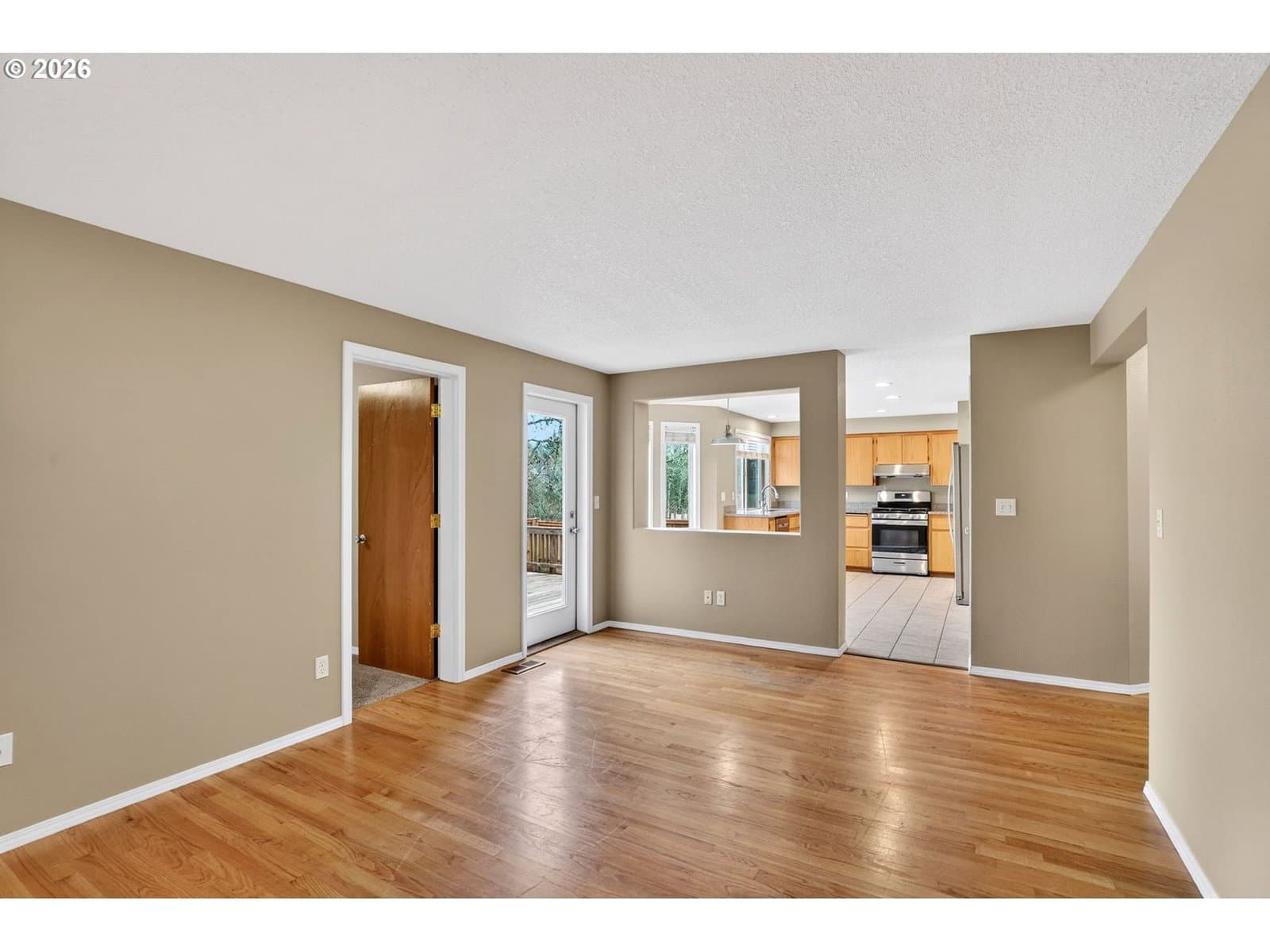 Situated on the back side of a serene, quiet common area and on a desirable corner lot, this beautifully designed 4-bedroom, 2,092 sq ft home offers a rare combination of privacy, functionality, and inviting living spaces. The upper level features a spacious primary suite complete with a large ensuite bath, a walk-in closet, stand alone shower and water closet (new toilet in 2018). Two additional upstairs bedrooms share a convenient Jack-and-Jill style bathroom, ideal for family or guests. Downstairs, you’ll find a fourth bedroom—perfect for a home office or guest suite—along with a formal living room, a welcoming family room w/gas fireplace for ambience, and a well-appointed kitchen. The kitchen includes a charming bay window nook, creating a bright and cozy space for everyday meals, updates as follows: new light fixture 2022 in nook area, FS Fridge 2017, dishwasher 2023, range 2024. Utility room with washer (2017)/dryer. All new ceiling fans in the entire home 2022, HVAC with added AC was replaced in 2013. Step outside to a large back deck overlooking the peaceful common area, where you can relax and enjoy the quiet setting with no neighbors behind you. This outdoor space is perfect for entertaining or unwinding while surrounded by nature completely fenced with cedar and was new in 2018. With its thoughtful layout, private setting, and tranquil views, this home is a wonderful opportunity for buyers seeking comfort and versatility in a peaceful well established neighborhood with not much turnover. Walking distance to New Seasons, close by to Big Al's, shopping and restaurants.