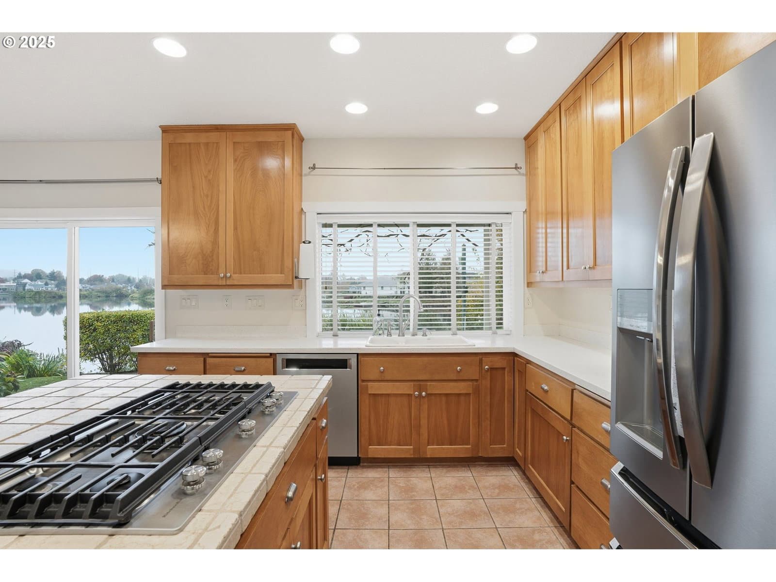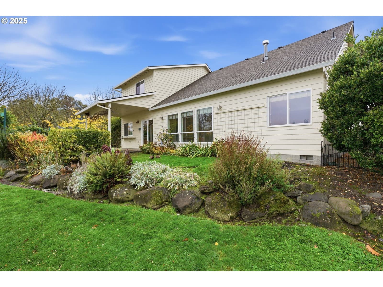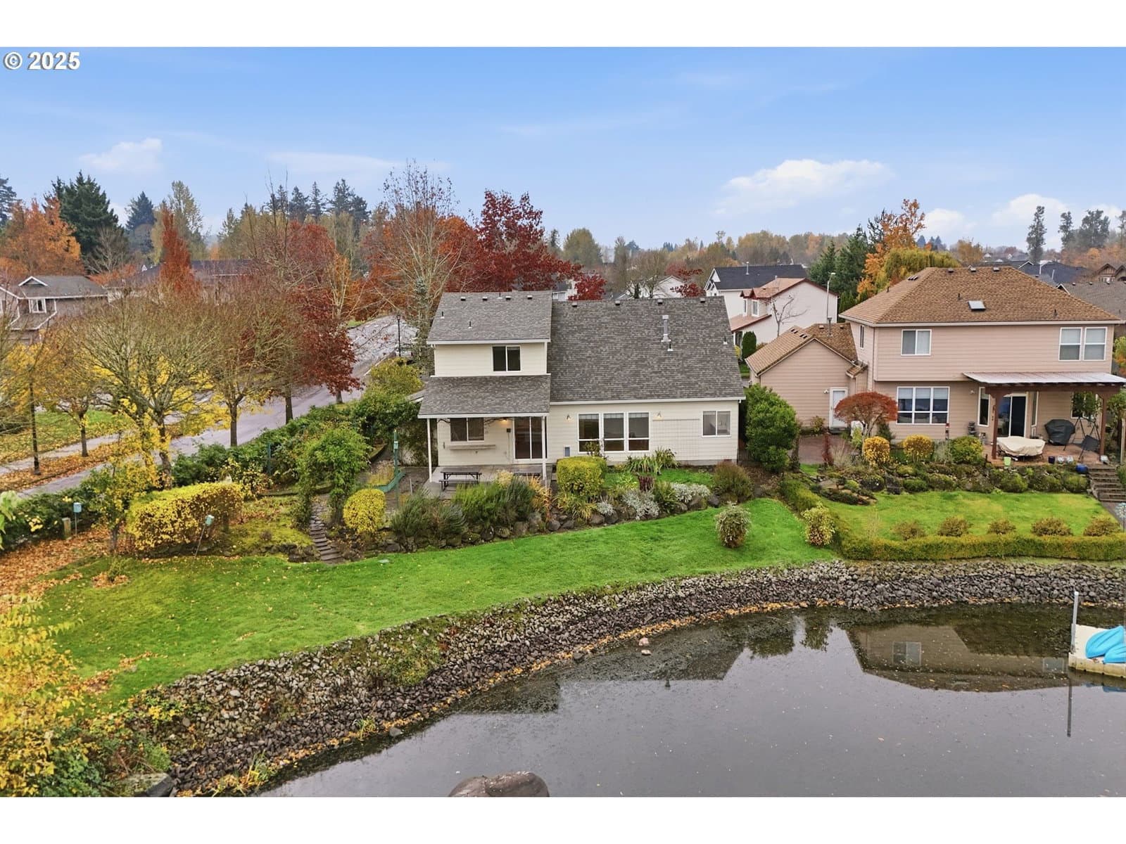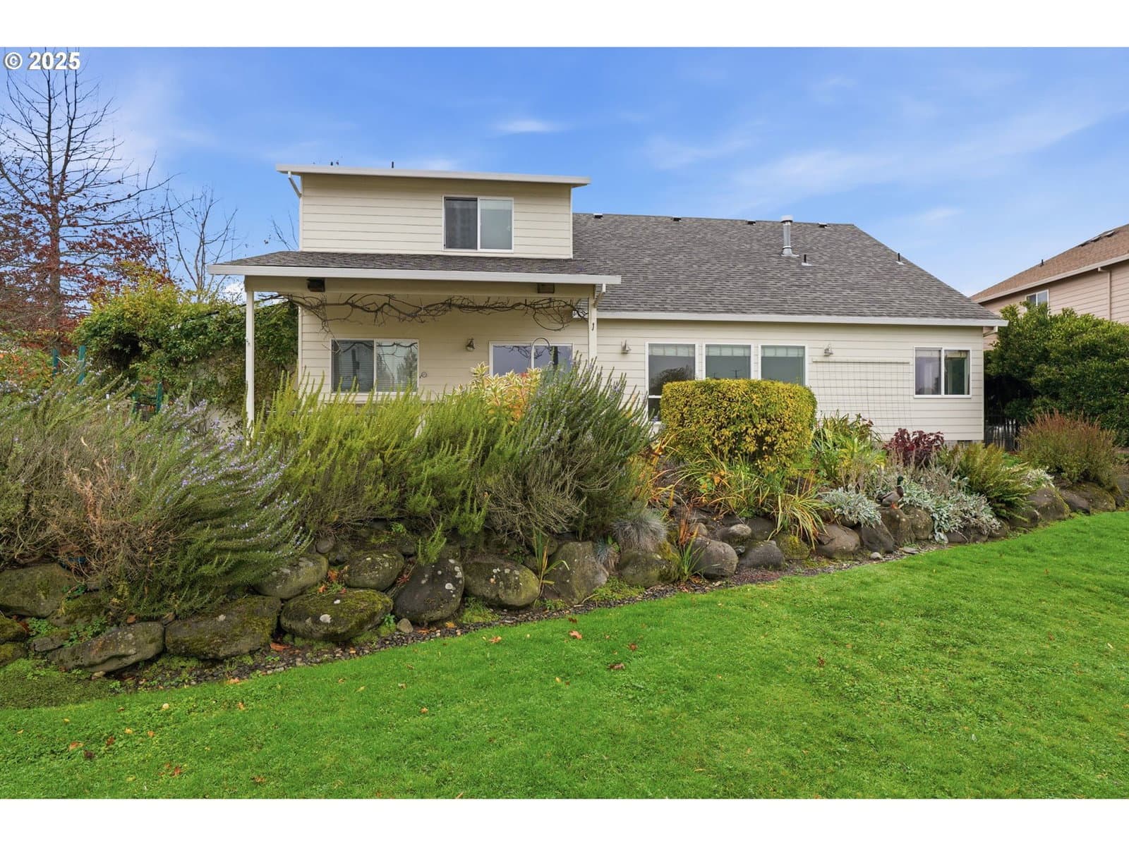 Serene lakeside living! Welcome to your private retreat on Fairview Lake, where nature, light, and thoughtful design come together in perfect harmony. This custom-built home rests on a .26 acre corner lot with a 140 feet of lake frontage, surrounded by lush landscaping, fruit trees, and peaceful water views. Inside, warmth and craftsmanship define every detail. The main level offers true single level living with a primary suite featuring a jetted tub and walk-in closet, a dedicated office with built-ins, and laundry room equipped with washer and dryer. Hardwood and tile floors flow throughout the great room layout, where a gas fireplace anchors the space and expansive windows frame the ever-changing beauty of the lake. The island kitchen is as functional as it is beautiful, complete with double ovens, a gas cooktop, pantry, and stainless steel appliances - perfect for everyday living or entertaining with ease. Just beyond, the covered patio invites you to enjoy quiet mornings or golden-hour sunsets reflected on the water’s surface, often accompanied by visits from ducks, herons, and other wildlife that make Fairview Lake their home. Upstairs, you’ll find two spacious bedrooms and a full bath, ideal for guests, hobbies, or relaxation. With 2,196 square feet of living space, this home blends openness and comfort, offering room to breathe while remaining intimately connected to its natural surroundings. Located in Lake Shores Estates, just minutes from Blue Lake Regional Park, Salish Ponds Trail, downtown Fairview, and I-84, this property offers the rare balance of privacy and accessibility - where lakefront tranquility meets everyday convenience.Discover a home that feels more like a sanctuary - beautifully built, gracefully lived in, and ready for its next chapter.