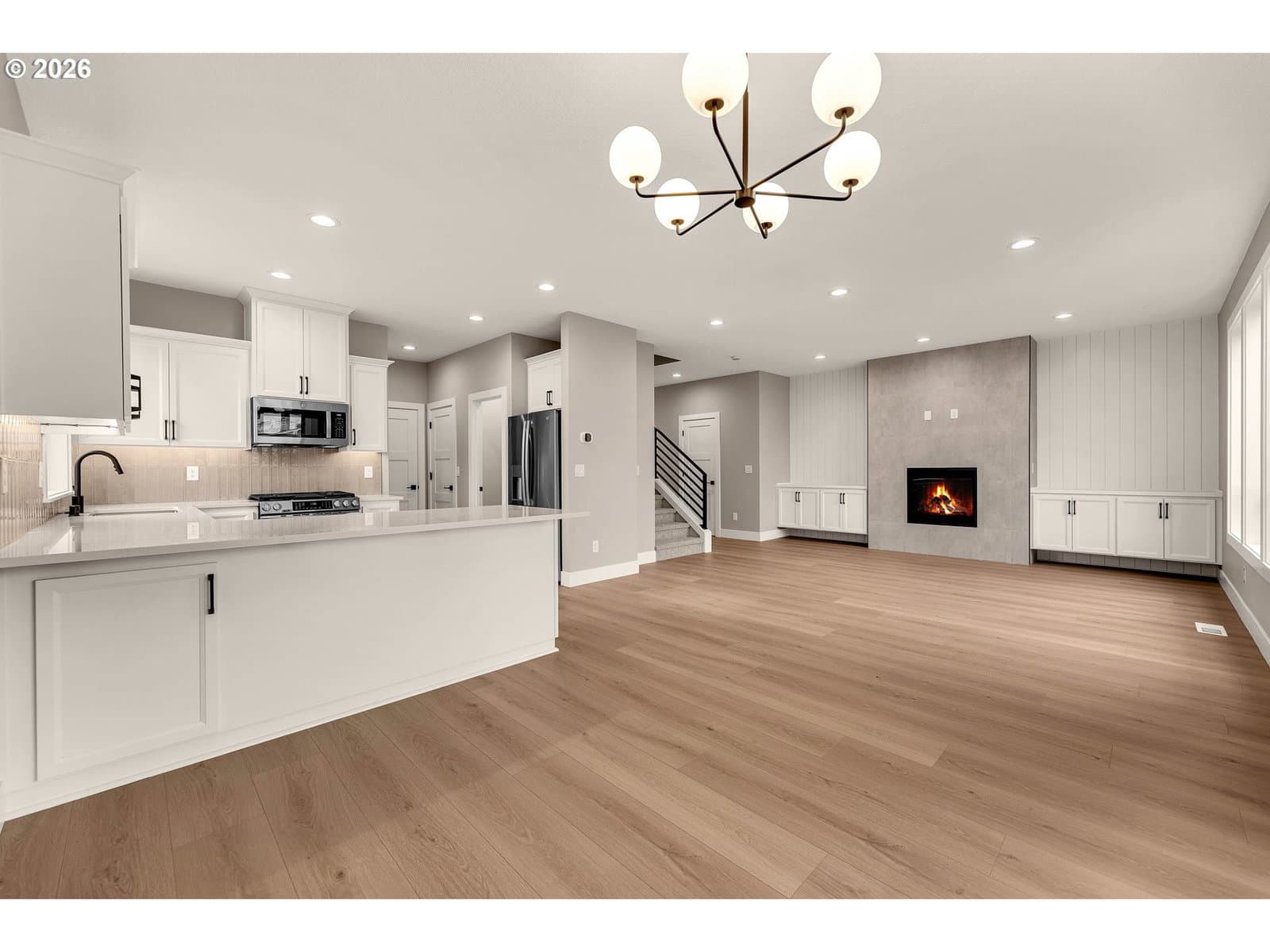 BEAUTIFUL NEW CUSTOM-BUILT HOME! This 1944 Sqft home is built with quality craftsmanship and attention to detail! Features include 4 bedrooms with loft, 2.5 baths, laminate flooring, high efficiency Milgard windows, 5 burner gas range, built-in microwave, SS appliances, quartz countertops, tile backsplash, walk-in pantry, refrigerator, CAT 5 ethernet, gas fireplace, built-in cabinetry, custom metal handrail, LARGE primary bedroom, walk-in tile shower, walk-in closet with built in wood shelving, double vanity sinks with toe kick lighting, laundry room with built-in cabinets, covered patio, gas stub for BBQ or heater, side mount garage door opener, landscaped front & back yard & so much more! This is a MUST SEE HOME!