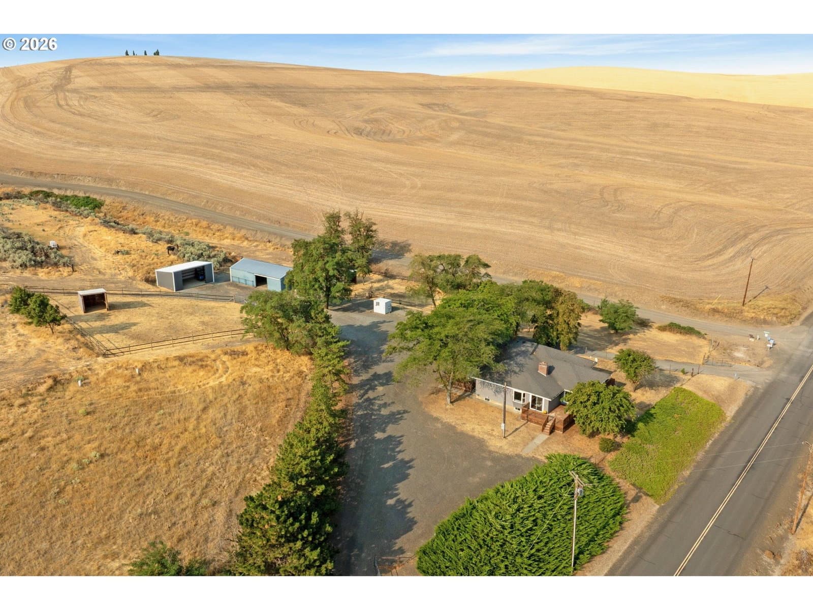 Equestrian and Agricultural Estate on 22+ Acres Near the Columbia River.Discover the perfect fusion of rural charm, equestrian facilities, and productive farmland on this expansive 22+ acre estate, just moments from where the Deschutes River meets the Columbia River—an outdoor enthusiast's paradise for fishing, hiking, and recreation. This inviting single-level home features three bedrooms and three bathrooms, along with a full basement that harmonizes with the vast open landscape, providing comfort and connection to nature. Equestrian lovers will find ample amenities, including three-sided shelters and multiple riding arenas. The barn boasts a spacious tack room and flexible storage options, along with additional structures like a hay barn, pump house, and RV parking.The property features productive wheat fields, offering seasonal harvests and adding both beauty and utility to the landscape. The rolling acres of golden wheat create a picturesque backdrop while enhancing the property’s value. Additionally, there’s potential for a secondary homesite, perfect for expansion or guest accommodations. Whether you’re exploring nearby trails, enjoying riverside activities, or cultivating crops, this estate seamlessly blends functionality with lifestyle and natural beauty.With its proximity to the Deschutes and Columbia Rivers, along with various outdoor attractions, this property offers convenience while providing privacy and a sense of retreat. This rare estate is a unique opportunity, combining equestrian facilities, fertile farmland, open space, and development potential—ideal for those seeking a rural lifestyle rich with possibilities in the Columbia Gorge.