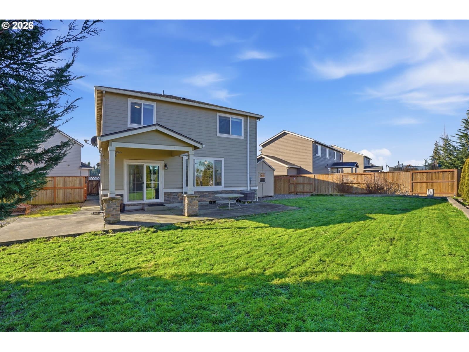 Right in the heart of everything with stunning mountain views! This spacious 5-bedroom, 3-bathroom home with a bonus room combines style, comfort, and convenience. The open great room is perfect for entertaining or relaxing, while the main floor offers wood floors, granite countertops, and stainless steel appliances for a modern, polished feel. Central air installed 2019 keeps things comfortable year-round. Newer water heater installed 2025 for peace of mind. Spacious primary bedroom with en suite bath and two walk in closets. Step outside to the covered back patio and take in the fully fenced backyard—ideal for enjoying the outdoors or hosting get-togethers. Need extra space? A large storage shed provides plenty of room for all those gardening tools and an extra storage room inside the garage adds functionality. The location can’t be beat! directly across from the high school, with a convenient path to the middle school and sports complex. You’re also just minutes from shopping, downtown Ridgefield, the dog park, and the beautiful Wildlife Refuge. Everything you need right at your fingertips. 1-year home warranty for peace of mind included! Don’t miss the chance to live in a home that balances functionality, style, and location seamlessly!