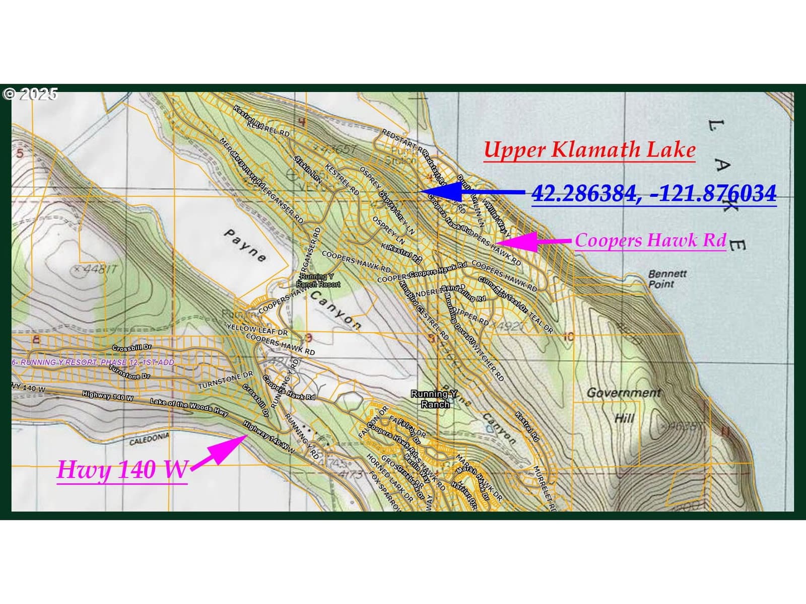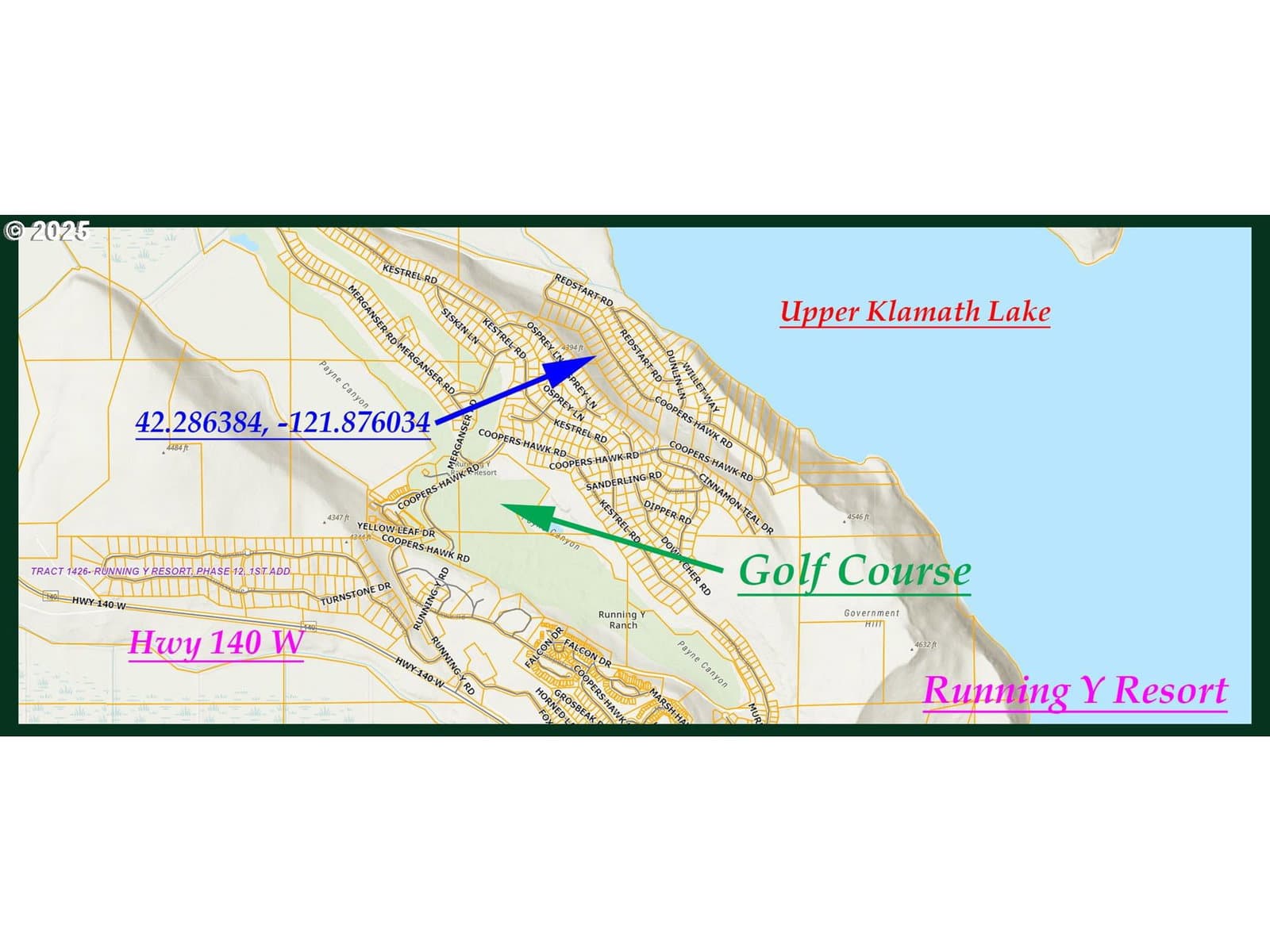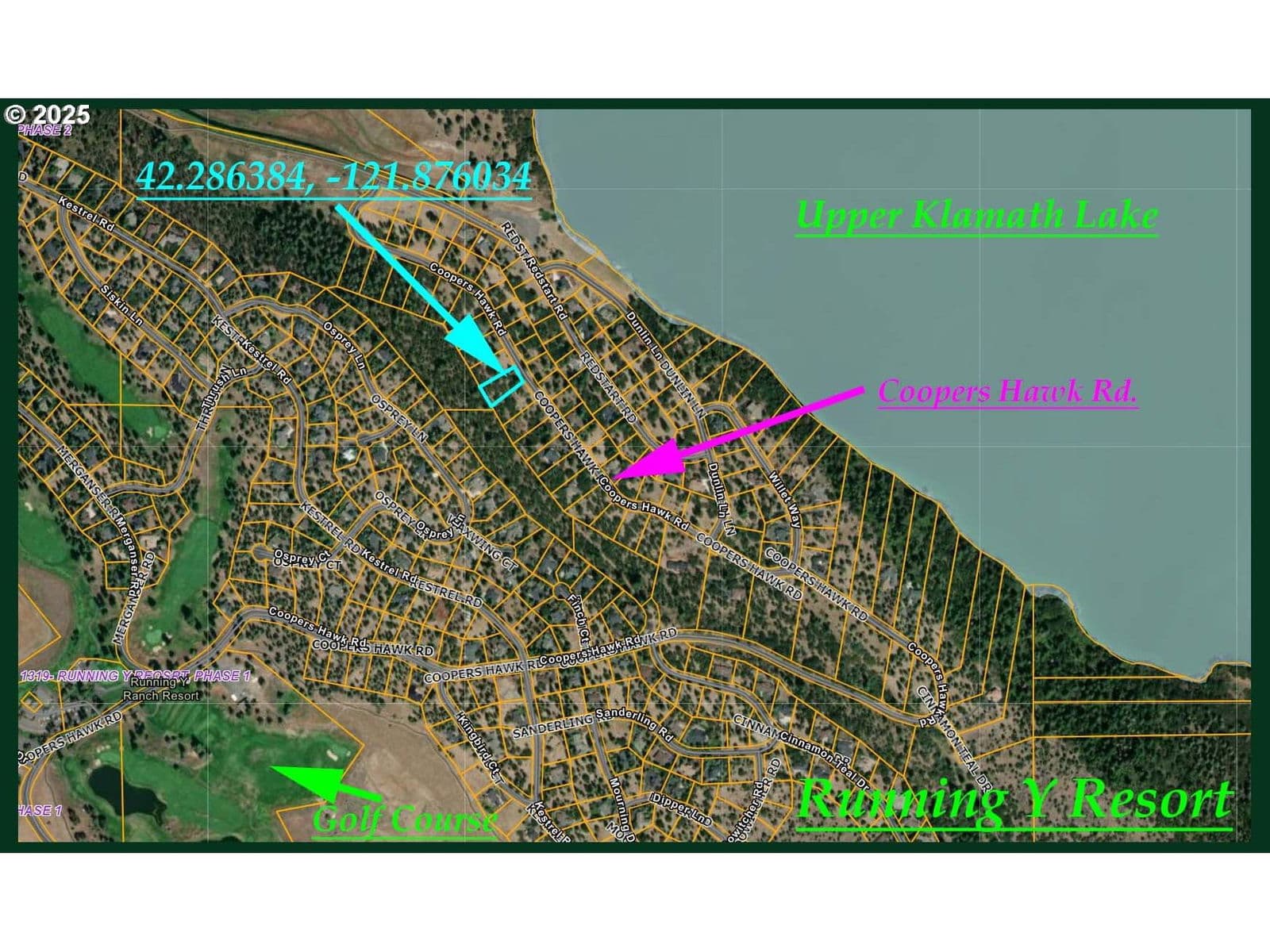Discover this exceptional 23958 sq ft lot on Coopers Hawk Rd in Klamath Falls, Oregon. Easily accessible via a well-maintained paved road, this property features electricity and phone service available at the road edge, combining modern conveniences with the tranquility of nature. Located within the Running Y Resort Subdivision, this lot provides access to a golf course, ice rink, spa & wellness center, event spaces, dining options, and various outdoor recreational activities. Enjoy beautiful views of Upper Klamath Lake, which offers a range of pursuits including fishing, paddling, birdwatching, wildlife viewing, and camping. The land is surrounded by healthy, mature trees, creating a serene atmosphere while ensuring privacy. The thoughtfully planned subdivision allows for easy access to Highway 140 and the lake, making it ideal for peaceful living and outdoor adventures. This welcoming community has much to offer and has many communal areas with activities, fostering a friendly atmosphere. Don’t miss the chance to make this slice of paradise your own!