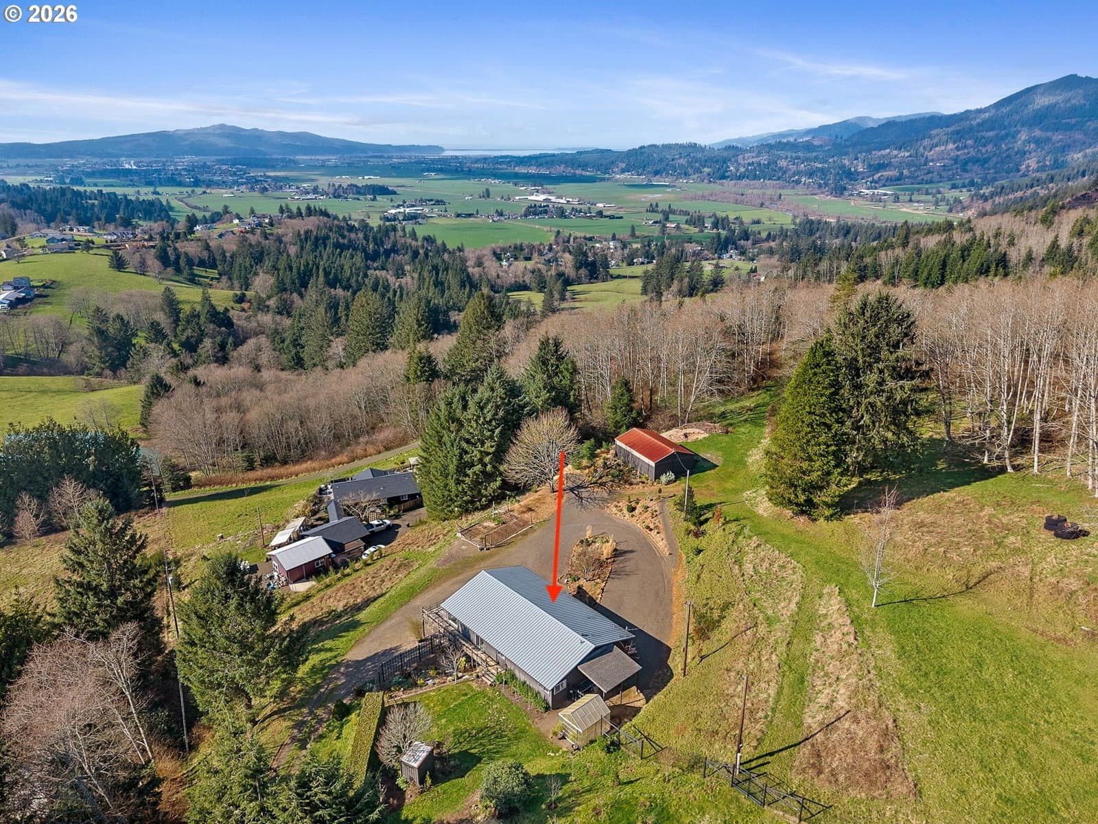 Trask River Valley Retreat with Iconic Views! A rare opportunity awaits you with this 2 acre view property. Absolutely stunning westerly views spanning across the valley that include the Tillamook Air Museum & Tillamook Bay! Experience the perfect blend of serenity and utility in this charming 2-bedroom, 1-bathroom home nestled in the scenic Trask River Valley. 24 x 36 detached shop/barn, ideal for hobbies or extensive equipment storage. Designed for outdoor living, the expansive wraparound deck provides the perfect platform to enjoy your morning coffee while watching the valley wake up. The property features a dedicated garden area with fertile soil, and a coastally adapted fruit orchard all for your seasonal harvests, surrounded by the natural beauty of the Oregon Coast range. Located just a short drive from downtown Tillamook, you are minutes away from world-class fishing on the Trask River and the coastal charms of the bay. Whether you are looking for a peaceful full-time residence or a high-functioning hobby farm, this home offers the space and scenery to make it your own.