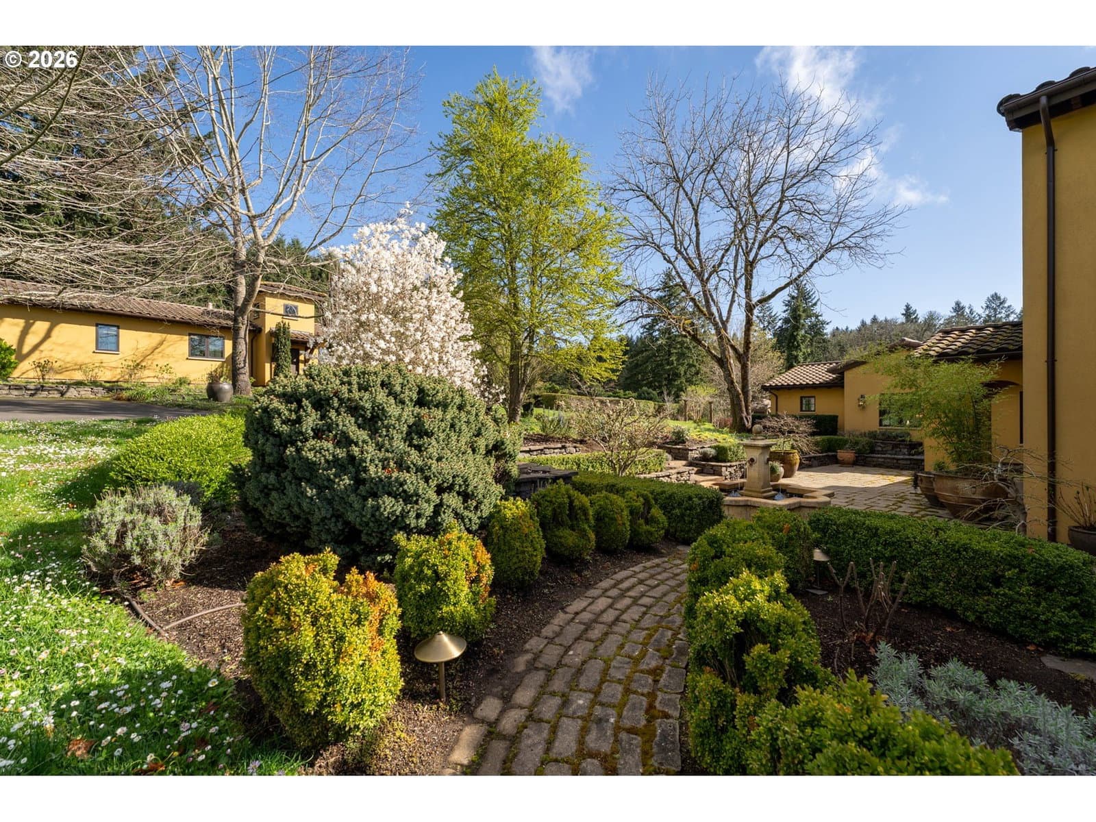Perched in the heart of the coveted Dundee Hills AVA, this extraordinary 7 acre vineyard estate captures the charm of Southern France while embracing the beauty of Oregon wine country. Thoughtfully designed and masterfully built, the home evokes a Provençal countryside retreat, blending timeless architecture with modern sustainability and refined comfort. Lavender-lined pathways, stone accents, and curated gardens create a memorable sense of arrival, while inside, reclaimed walnut floors, whitewashed pine beams, and a hand-crafted limestone fireplace establish a warm, elevated aesthetic. Expansive French doors flood the home with natural light and frame sweeping vineyard and valley views. Offering approximately 3,983 square feet, the residence includes a main-level primary suite, a gourmet kitchen with Wolf and Miele appliances, a media/library room, and a striking spiral staircase leading to a lookout tower. A 700-bottle temperature-controlled wine cellar enhances the experience for collectors and entertainers alike. Outdoors, enjoy a trellis-covered patio, beautifully designed gardens, and multiple spaces for gathering and relaxation. A charming potting shed with reclaimed wood and vintage windows provides a perfect gardening retreat. The detached 1220 square-foot structure, finished to match the main home, features a wood-burning stove and flexible open space ideal for a tasting room, studio, or workshop, along with two built-in office spaces and a bathroom. The 2.8-acre vineyard, planted with Pinot Noir and Chardonnay, offers both beauty and potential. Built with sustainability in mind, this LEED-influenced home includes solar power and high-performance systems. This is more than a home, it’s a rare opportunity to live immersed in the beauty, tranquility, and lifestyle of Oregon’s premier wine region.