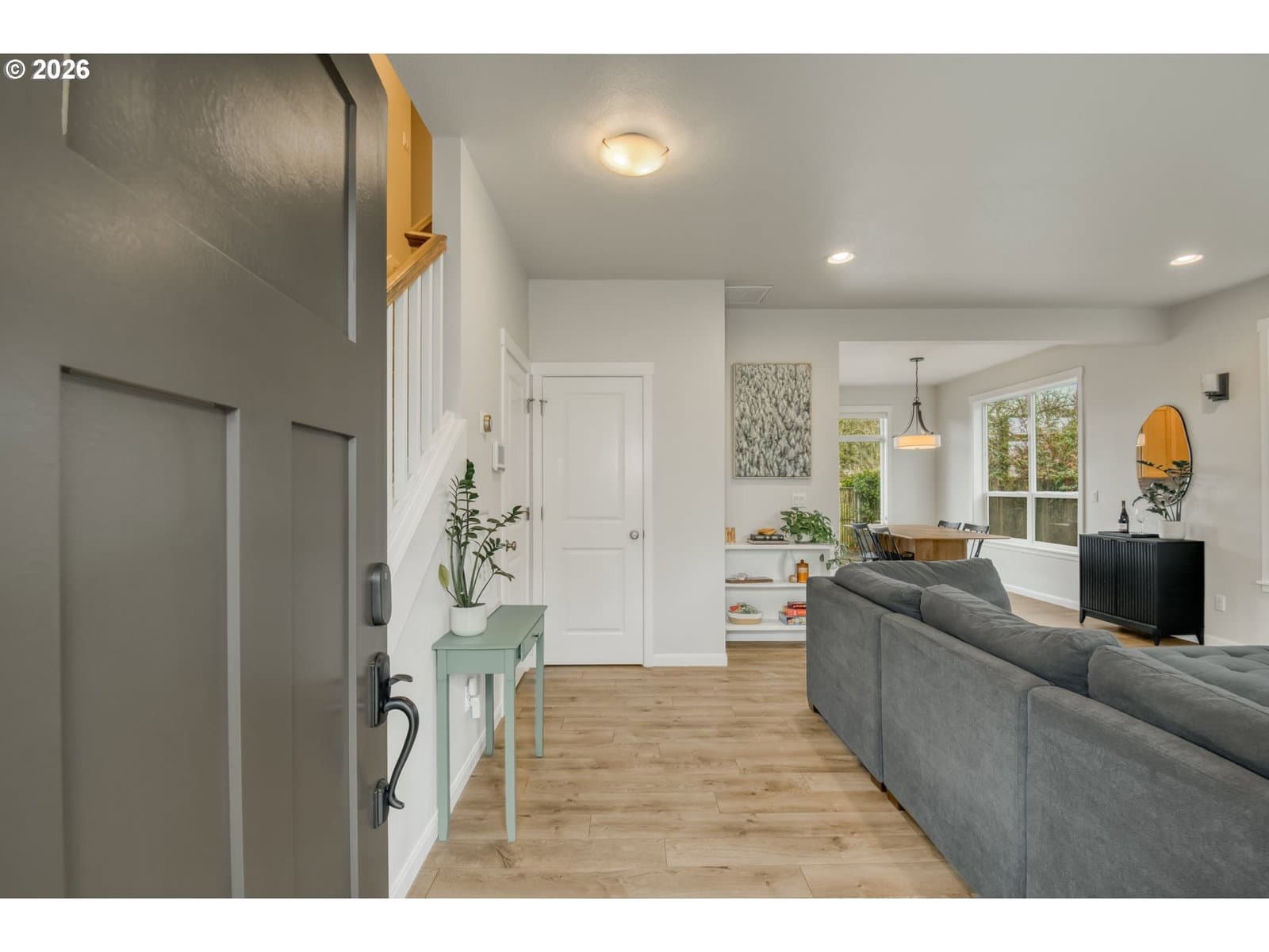 This meticulously maintained 2015 traditional style home is conveniently located within close proximity to shopping, MAX light rail and easy access to Trolley Trail for commuting or recreating. Upon entry you will appreciate the open great-room style floor plan. The living room and dining room feature a cozy electric fireplace and oversized windows which flood these rooms with natural light. You will love entertaining from this spacious kitchen with great storage and plenty of open counter space. The slider from the dining room allows easy access to oversized stamped concrete patio and stem wall surrounded grass area and walkway. Upstairs you will find a large primary suite with vaulted ceilings and dual walk-in closets, three more bedrooms, utility room and hallway bathroom with tub and dual vanity. Other features include: central AC, high efficiency gas furnace, tankless H2O heater, electric car charging station, new fencing on west side of home and gate to potential RV parking space and more.