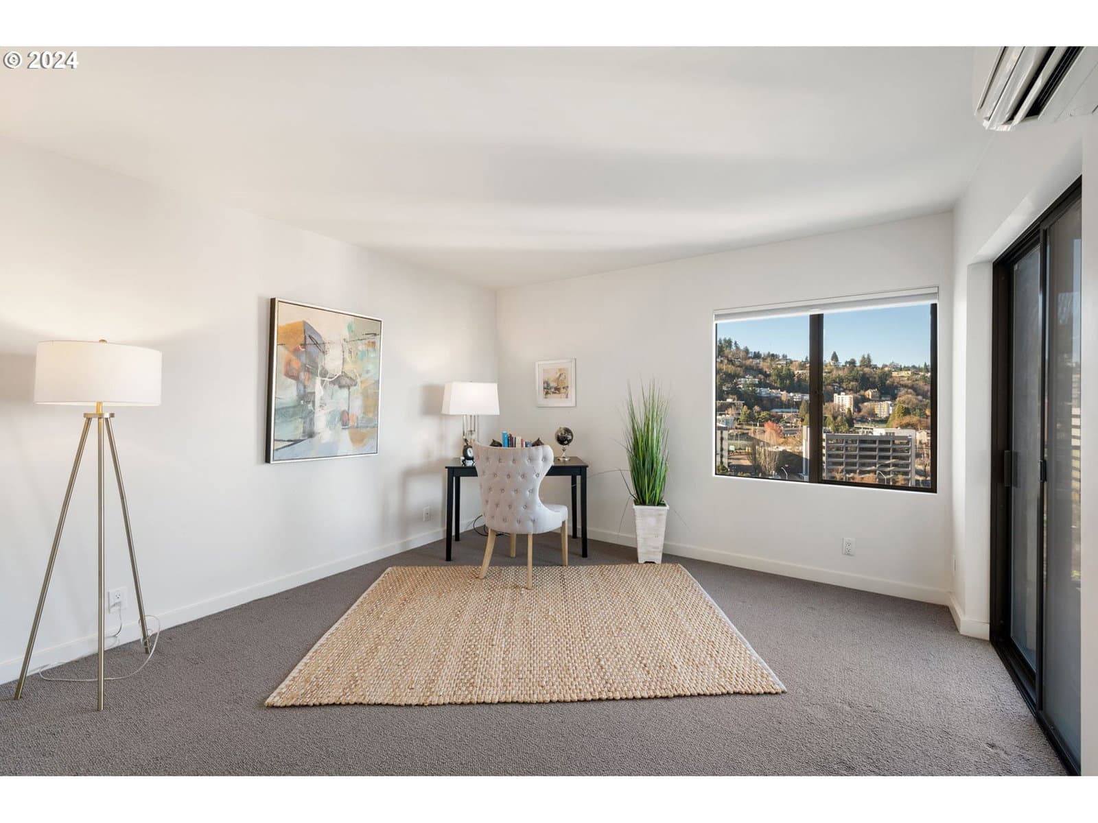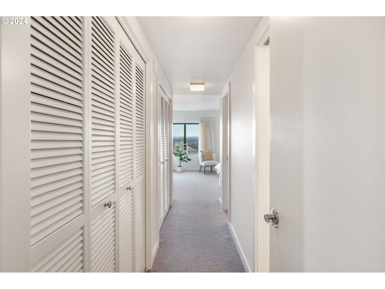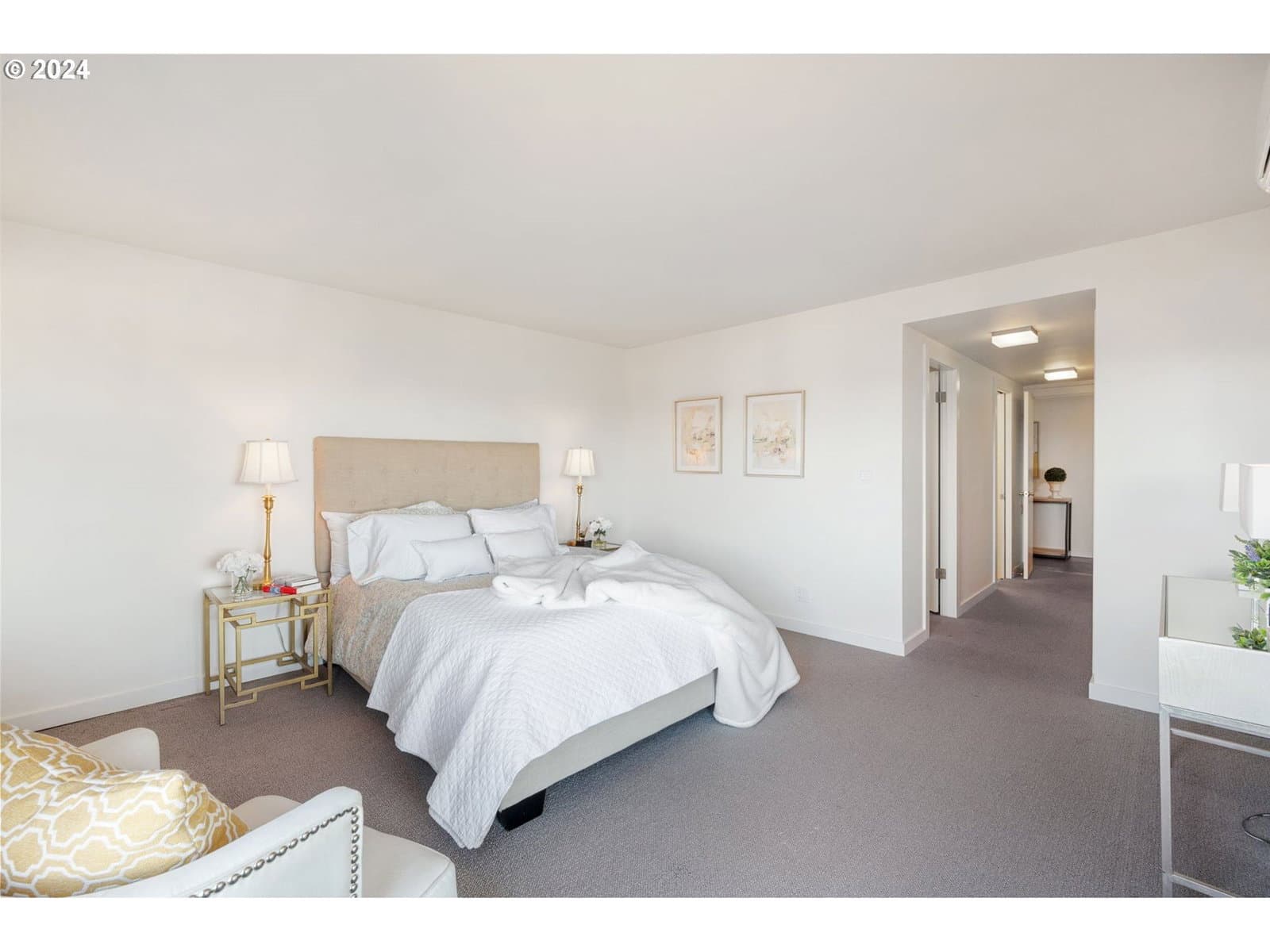 This beautifully remodeled condo showcases an open and airy layout that perfectly complements its breathtaking panoramic views of Mt. Hood, Mt. St. Helens, and the Willamette River. Whether it's the twinkling city lights at night or the serene sunrises in the morning, this property offers a stunning backdrop for daily living. The total remodel features a gourmet kitchen with custom cabinets and stainless steel appliances, an eating bar and family room with new slider that opens to large west facing deck with city and west hills views. The spacious living and dining areas seamlessly transition to an expansive east-facing deck, ideal for entertaining or simply enjoying the incredible mountain and river views. The primary suite is a true retreat, offering deck access through a private slider, a walk-in closet, and a beautifully renovated bath complete with a walk-in shower. The second bedroom is equally inviting, equipped with its own west-facing balcony and a dedicated remodeled bath.This condo's amenities extend beyond its walls. Residents can enjoy access to a brand new saltwater indoor pool, jacuzzi, and updated locker rooms in the Sivers Center. HOA includes two community rooms leading to patios and pools designed for social gatherings, plus workout facilities, 24 hour concierge and 53 guest parking spaces unheard of downtown, conveniently located on the Max line and bus routes, just a short walk from the streetcar one block north, close to OHSU and Portland State. Stroll the Halprin Park Sequence to the Downtown Cultural center or RiverPlace Esplanade shops and restaurants. Vibrant city living at its best.