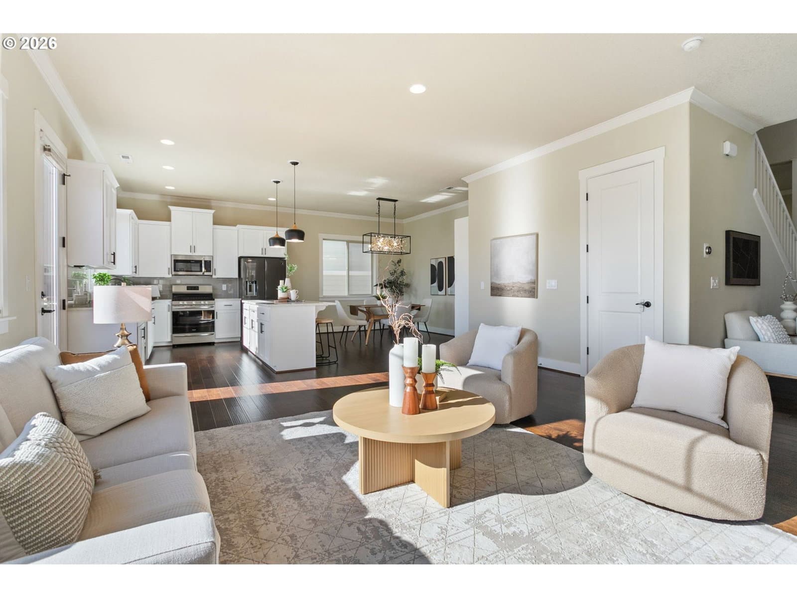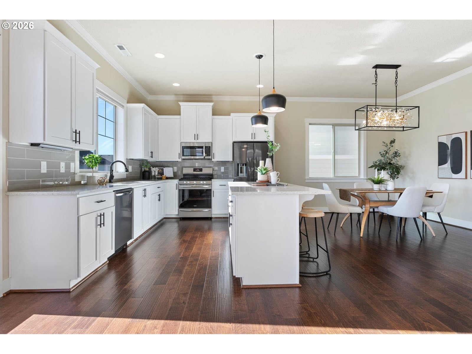 Bright and beautifully designed, this open-concept 3-bedroom, 2.5-bath home offers the perfect blend of comfort, style, and functionality. The main level showcases gorgeous engineered hardwood floors, a spacious and inviting entryway, and an airy floorplan filled with natural light from expansive windows. A cozy fireplace anchors the living room, seamlessly flowing into the centrally located kitchen featuring ample counter space, abundant storage, an eat-bar, and stainless steel appliances—all connected to the formal dining room for effortless entertaining. Step outside to the large deck, ideal for relaxing or hosting gatherings.Upstairs, you’ll find a versatile loft space, two generously sized bedrooms, a convenient laundry room, and a stunning primary suite complete with dual walk-in closets, double sinks, a peaceful soaking tub, and a walk-in shower. The finished basement expands your living space with an oversized bonus room and sliding doors leading to the professionally landscaped backyard, featuring a covered patio, additional paver patio, and room to create your own garden oasis.Additional highlights include energy-efficient solar panels, brand-new carpet, and fresh interior paint throughout. Enjoy access to the neighborhood clubhouse, pool, and community amenities. Ideally located to Intel, Nike, top-rated schools, parks, Progress Ridge, Washington Square’s shopping, dining, and entertainment, with easy freeway access—this exceptional home truly has it all.