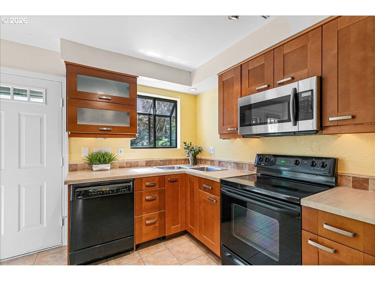Sweet condo, lovely interiors, & low-maintenance living just moments from the heart of Ashland. This charming 2-bedroom home is perfect for a simplified lifestyle -- the HOA covers all exterior maintenance & groundskeeping. Tucked in a quiet setting overlooking a lush lawn with mature trees, this desirable corner unit offers wonderful natural light & an open, contemporary floorplan. Stylish & welcoming inside -- open living area, kitchen with granite counters & dining bar, tile-floored living room, & access to a rear fenced patio. Bedrooms are nicely sized, one featuring a Murphy bed & sunny window seat. Bathrooms are updated with custom tile. Year-round comfort courtesy of high-efficiency mini-splits. Dedicated covered parking & private storage included. Fully furnished if buyer wishes -- negotiable. HOA may allow rentals subject to approval; buyer to verify. Onsite laundry room. Value, location, & ease of ownership. Barely lived in by out-of-area owner. This one is ready for you.