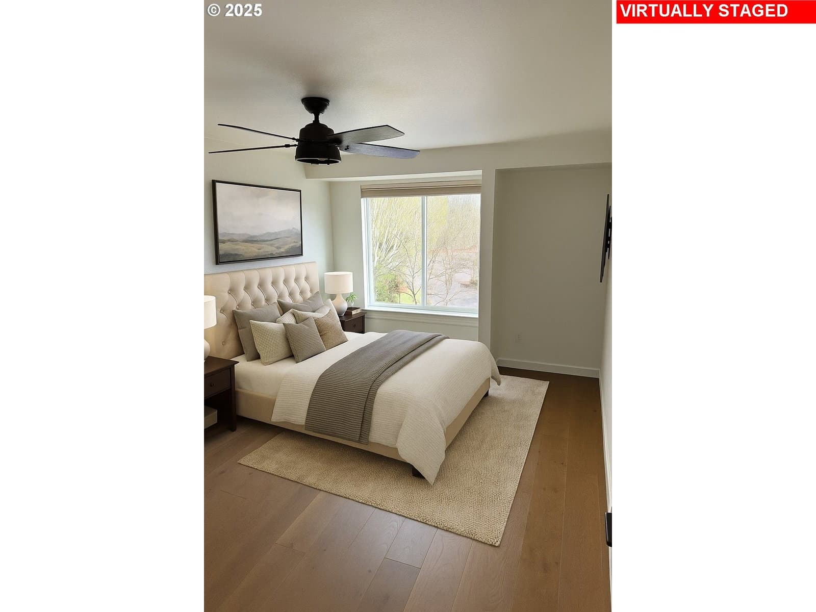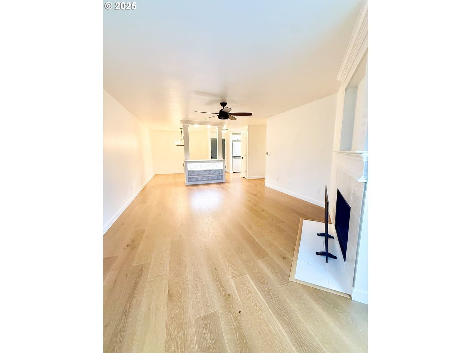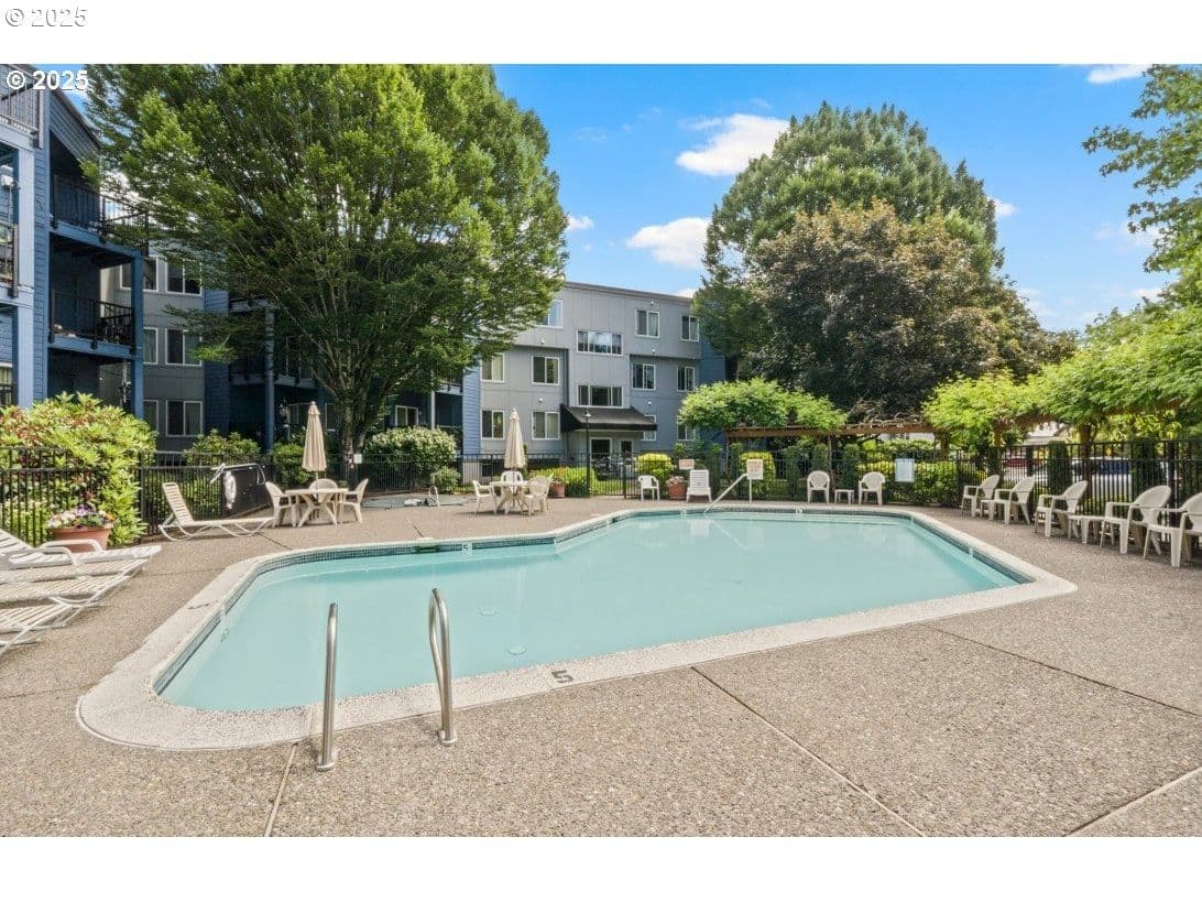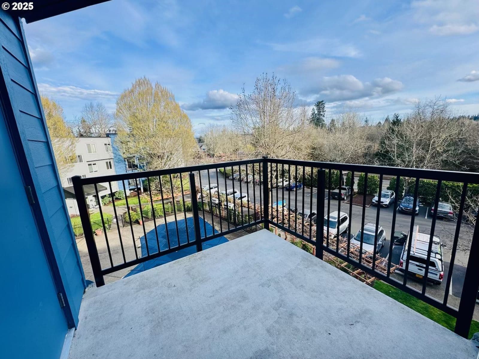 Beautifully remodeled 2BD/2BA top-floor condo in the desirable Tualatin Greens community. This stylish home features new hardwood floors, fresh interior paint, elegant moldings, designer lighting, blackout window coverings, and a modern backsplash. The spacious open layout includes a cozy wood-burning fireplace and custom buffet shelving with accent lighting. Enjoy treetop views from your private covered balcony overlooking the pool, hot tub, and greenery—plus bonus exterior storage. The primary suite offers a renovated ensuite bath and walk-in closet. Second bedroom includes a bold accent wall and generous storage. In-unit laundry with built-in shelving, secure building entry, reserved parking, and guest spaces. HOA covers water, sewer, and garbage. Minutes to Nyberg Woods, Bridgeport Village, I-5, parks, and trails. A perfect blend of comfort, convenience, and updated design! Come check it out today!