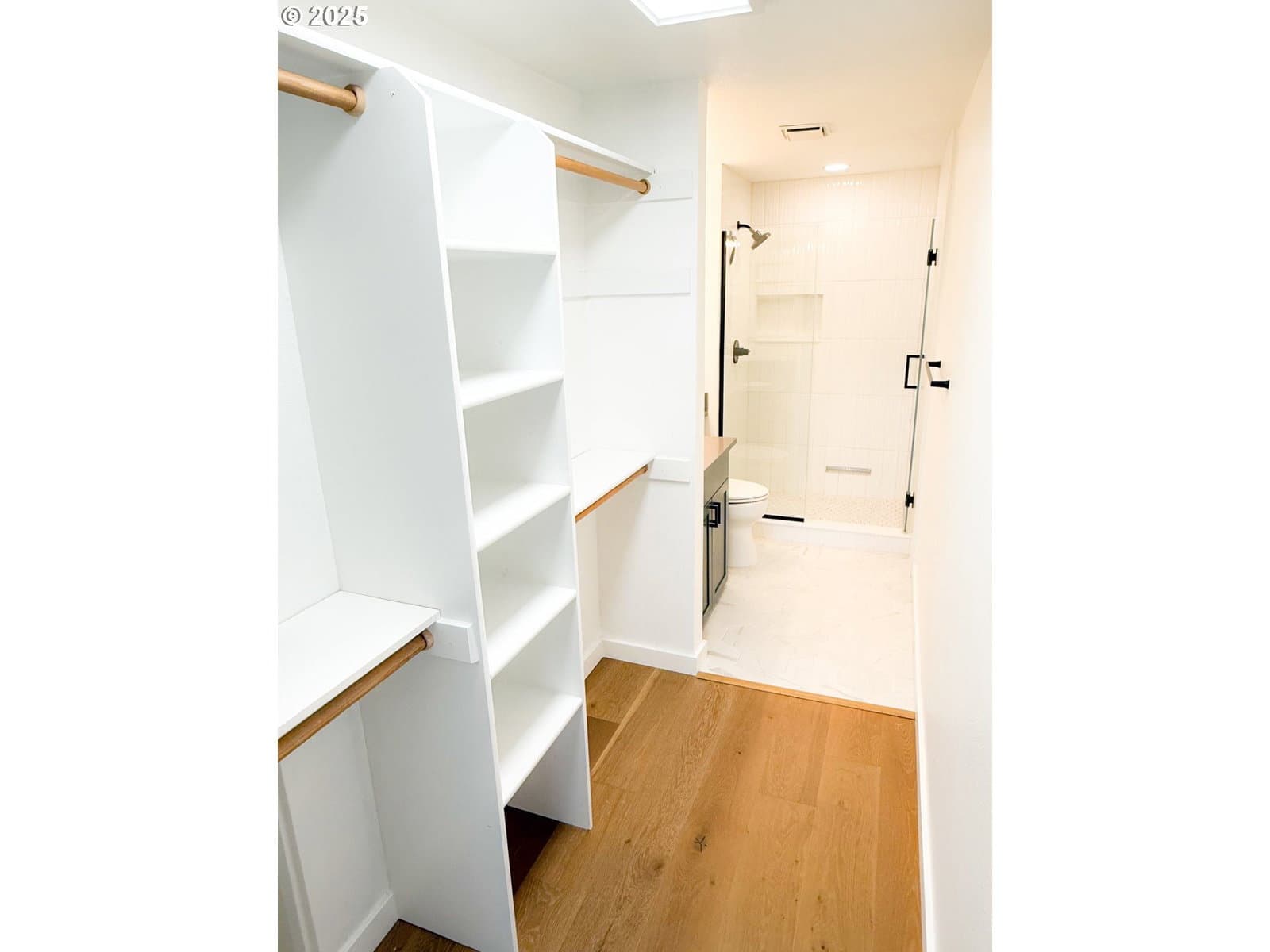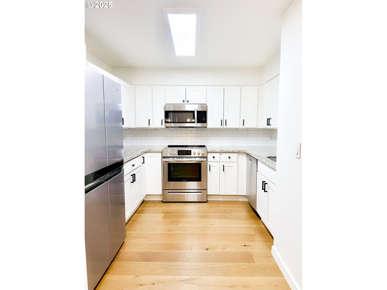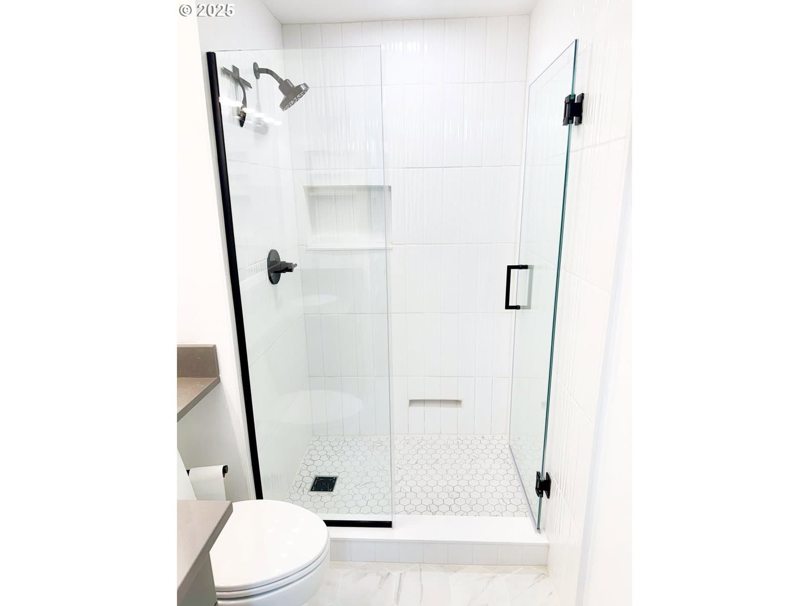 Beautifully remodeled 2BD/2BA top-floor condo in the desirable Tualatin Greens community. This stylish home features new hardwood floors, fresh interior paint, elegant moldings, designer lighting, blackout window coverings, and a modern backsplash. The spacious open layout includes a cozy wood-burning fireplace and custom buffet shelving with accent lighting. Enjoy treetop views from your private covered balcony overlooking the pool, hot tub, and greenery—plus bonus exterior storage. The primary suite offers a renovated ensuite bath and walk-in closet. Second bedroom includes a bold accent wall and generous storage. In-unit laundry with built-in shelving, secure building entry, reserved parking, and guest spaces. HOA covers water, sewer, and garbage. Minutes to Nyberg Woods, Bridgeport Village, I-5, parks, and trails. A perfect blend of comfort, convenience, and updated design! Come check it out today!