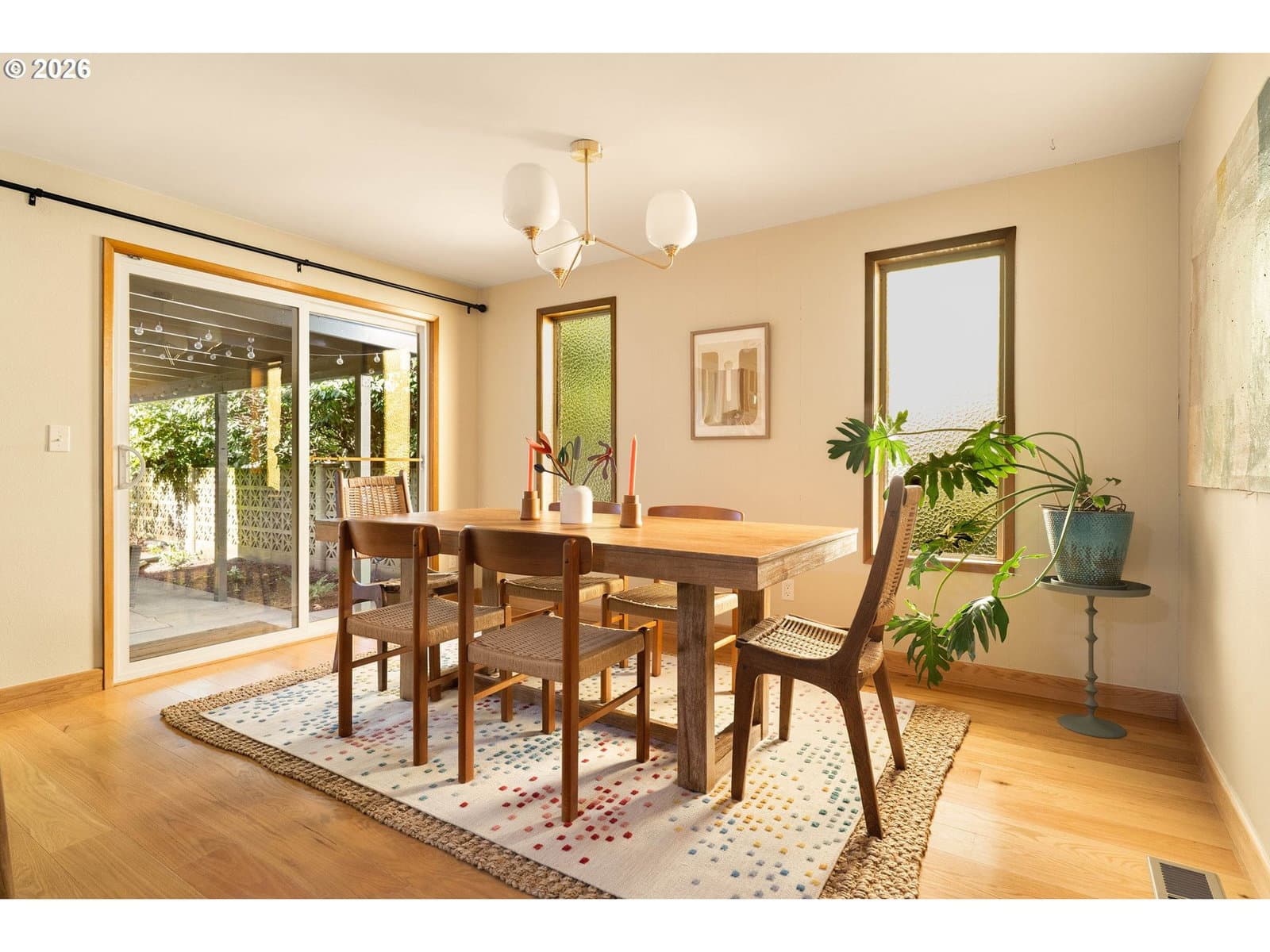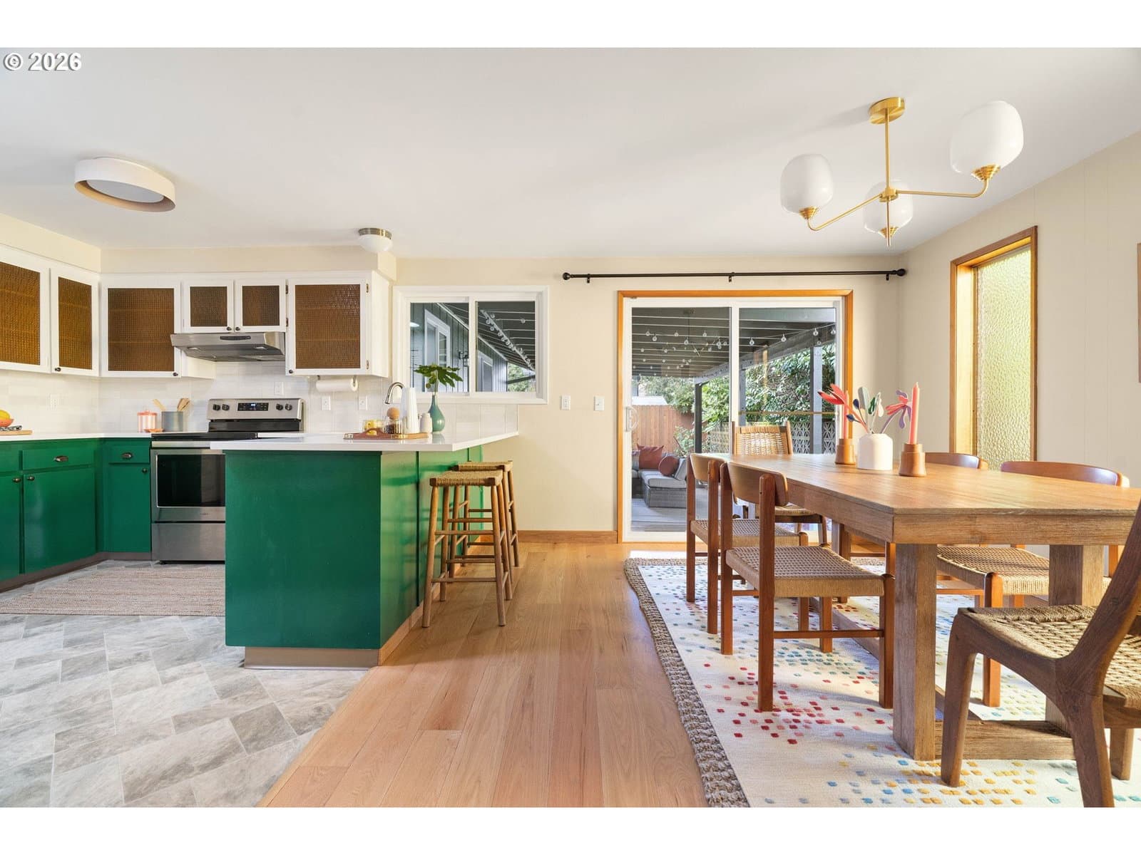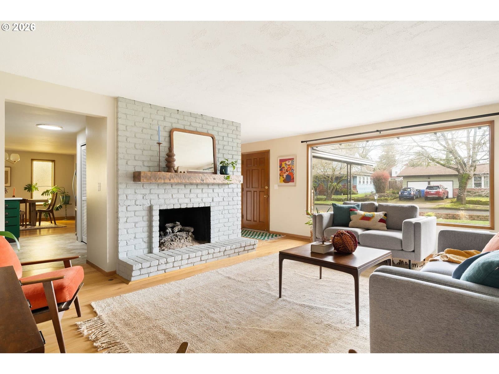 Peace, love & a Woodstock address! This 1970's ranch celebrates retro design while also delivering the modern features & upgrades today's buyers expect. First impressions shine with established landscaping, moody PNW green exterior paint, original brick cladding, a built-in brick planter & solid wood entry door that sets the tone for what's inside. The interior honors its era with preserved period details like a statement mirrored entry wall, paneling, hammered textured harvest-gold glass windows & original kitchen cabinetry with patterned decorator panels in an iconic amber hue. Engineered hardwoods run throughout & the refreshed kitchen features new quartz countertops, tile backsplash, newer stainless appliances, oversized single-basin stainless steel sink & new hardware. A continental bathroom connects the hallway & primary bedroom, offering ensuite-esque functionality, and has been beautifully remodeled with a marble top double-vanity, large-format vinyl tile floor, new toilet, deep soaker tub + attractive tile surround. Don't miss the walk-in linen closet! All 3 bedrooms are spacious & have ample closet space. While the home's aesthetic may be timeless retro, by no means is it stuck in the past... it has had many major system improvements, subfloor air sealing, upgraded floor/plumbing/ductwork insulation, new vapor barrier, double-pane vinyl windows, vinyl sliders & fresh exterior paint. She's move in ready! Outside you'll find a covered patio with string lighting, a budding rose garden, manageable lawn, vintage breeze-block fencing, & a large tool shed for extra storage. Quintessential Woodstock location & lifestyle: stroll a few blocks to Keeper Coffee on weekend mornings, explore nearby parks, & enjoy quick access to neighborhood favs like Trader Joe's, New Seasons, Otto's Sausage & Meat Market, Proper Pint, Laughing Planet, Double Mountain, Orange Theory, Toast, Cloud City Ice Cream & Reed College's gorgeous campus. You'll see- this one truly is a keeper! [Home Energy Score = 4. HES Report at https://rpt.greenbuildingregistry.com/hes/OR10031012]