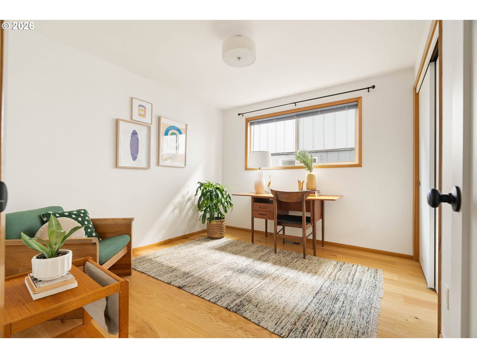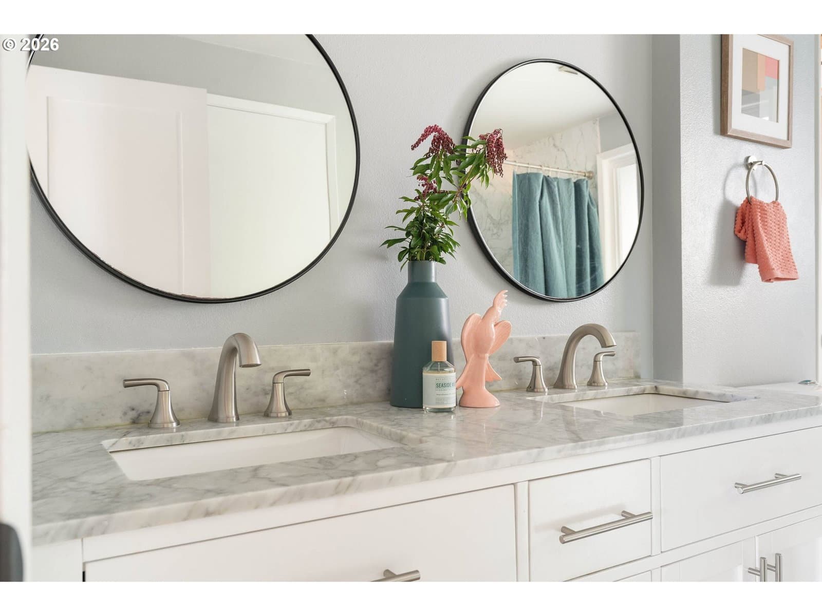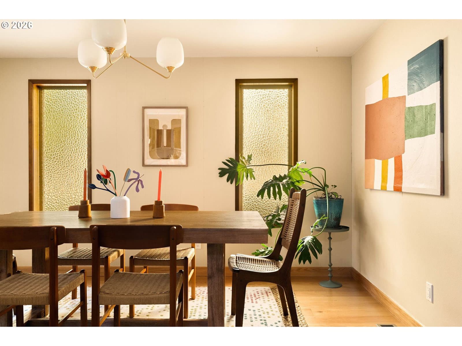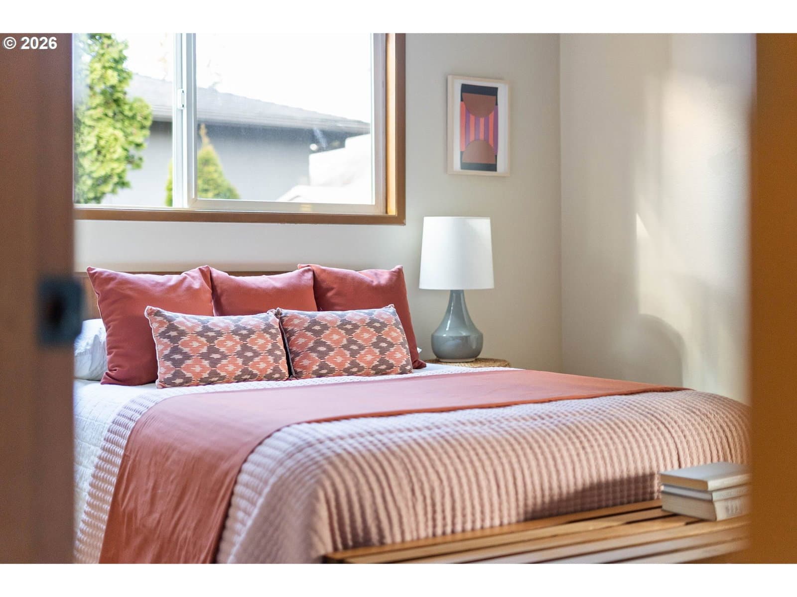 Peace, love & a Woodstock address! This 1970's ranch celebrates retro design while also delivering the modern features & upgrades today's buyers expect. First impressions shine with established landscaping, moody PNW green exterior paint, original brick cladding, a built-in brick planter & solid wood entry door that sets the tone for what's inside. The interior honors its era with preserved period details like a statement mirrored entry wall, paneling, hammered textured harvest-gold glass windows & original kitchen cabinetry with patterned decorator panels in an iconic amber hue. Engineered hardwoods run throughout & the refreshed kitchen features new quartz countertops, tile backsplash, newer stainless appliances, oversized single-basin stainless steel sink & new hardware. A continental bathroom connects the hallway & primary bedroom, offering ensuite-esque functionality, and has been beautifully remodeled with a marble top double-vanity, large-format vinyl tile floor, new toilet, deep soaker tub + attractive tile surround. Don't miss the walk-in linen closet! All 3 bedrooms are spacious & have ample closet space. While the home's aesthetic may be timeless retro, by no means is it stuck in the past... it has had many major system improvements, subfloor air sealing, upgraded floor/plumbing/ductwork insulation, new vapor barrier, double-pane vinyl windows, vinyl sliders & fresh exterior paint. She's move in ready! Outside you'll find a covered patio with string lighting, a budding rose garden, manageable lawn, vintage breeze-block fencing, & a large tool shed for extra storage. Quintessential Woodstock location & lifestyle: stroll a few blocks to Keeper Coffee on weekend mornings, explore nearby parks, & enjoy quick access to neighborhood favs like Trader Joe's, New Seasons, Otto's Sausage & Meat Market, Proper Pint, Laughing Planet, Double Mountain, Orange Theory, Toast, Cloud City Ice Cream & Reed College's gorgeous campus. You'll see- this one truly is a keeper! [Home Energy Score = 4. HES Report at https://rpt.greenbuildingregistry.com/hes/OR10031012]