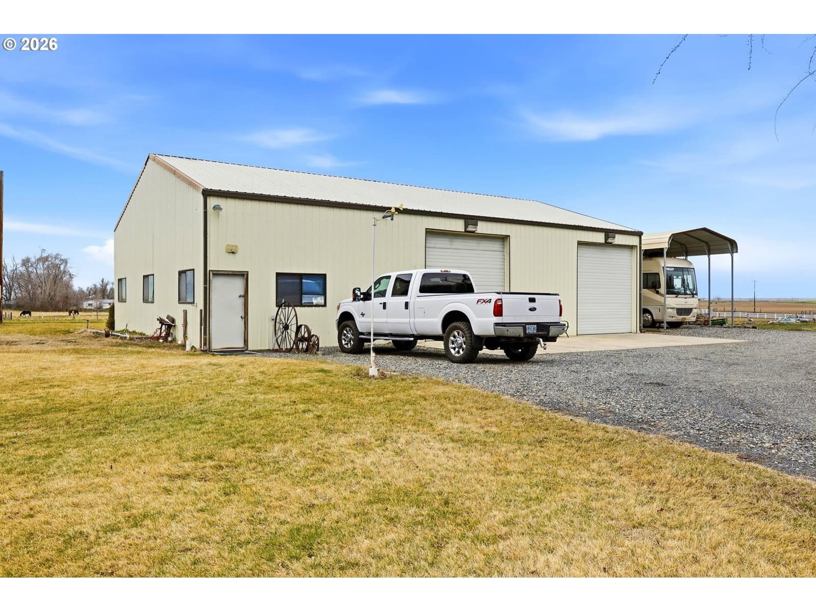 Welcome to this beautiful hidden gem — 4.03 acres of peaceful living tucked away in a private setting. There’s ample room for a small farm, complete with fenced pasture and valuable water rights. A spacious 2,400-sq-ft shop offers endless possibilities, and additional storage sheds provide even more flexibility for your projects and equipment.The property also includes RV parking with full hook-ups, creating an excellent opportunity for extra income or hosting long-term guests.Mature trees provide cool summer shade, inviting you to slow down and savor the outdoors. The home has been lovingly maintained and now features a newly added covered patio — the perfect place to unwind and enjoy countless relaxing moments with the people you love.