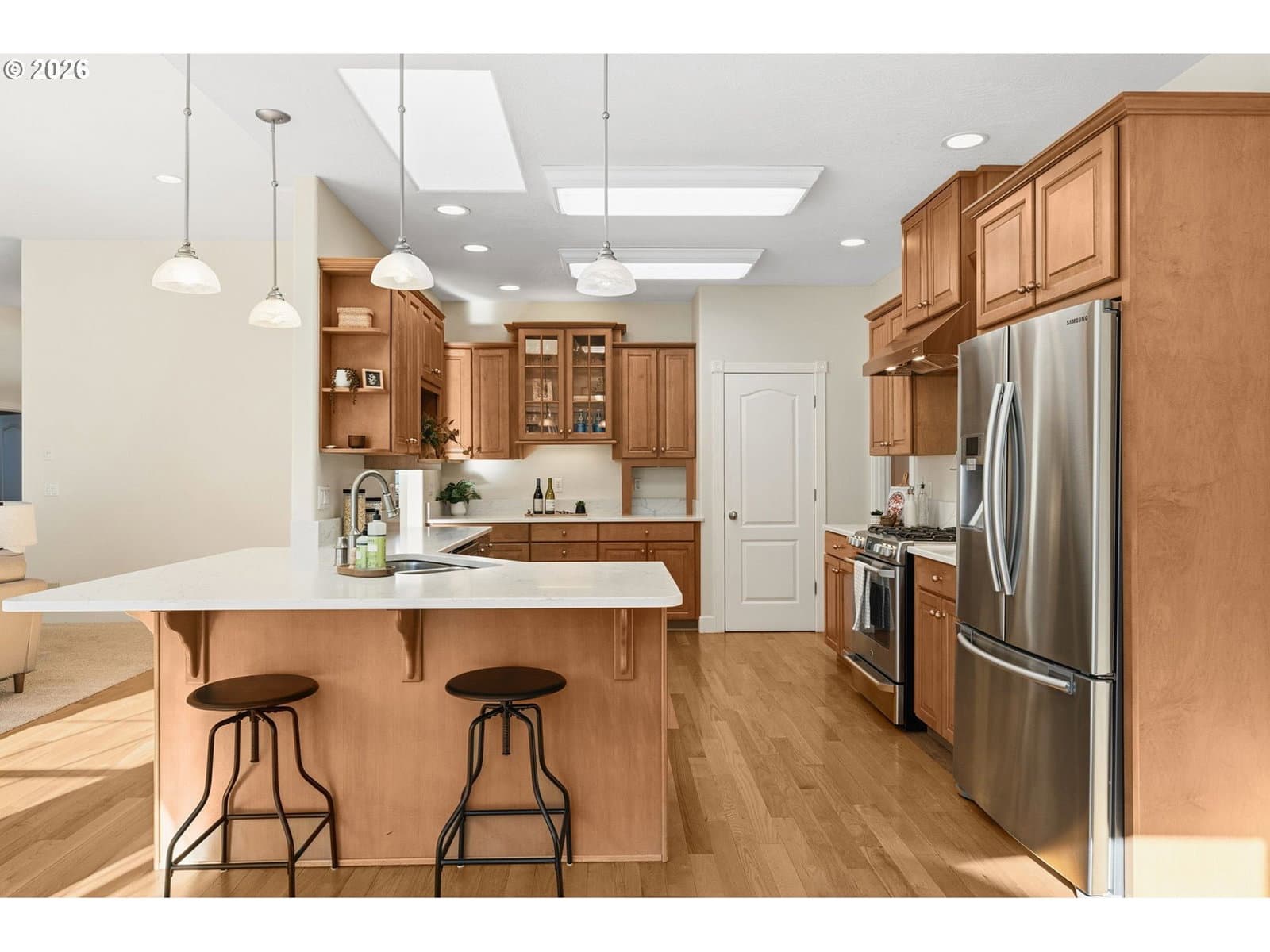 Located in the highly desirable North Gilham neighborhood within Hidden Creek Estates, this rare single-level gem offers comfort, flexibility, and convenience. Just minutes from Gilham Elementary, Cal Young Middle School, Crescent Village, Costco, shopping, and dining.Designed for easy living and entertaining, the home features both a family room and living room with a cozy fireplace, providing generous space to gather indoors and out. The kitchen is well-appointed with quartz countertops, an eat bar, gas stainless steel appliances, a pantry, and both casual and formal dining areas nearby.The spacious owner’s suite opens to the deck through French doors—perfect for enjoying peaceful mornings. The en-suite bath includes dual sinks, tiled floors, and an ADA-accessible soaking tub with a walk-in shower. Two bathrooms feature ADA Kohler walk-in showers for added accessibility and comfort. The second bedroom is accessible from the owner’s suite, ideal for a nursery or home office. The fourth bedroom offers its own exterior entrance, providing flexible living options.Step outside to a private, fenced backyard with lush lawn, a large deck with awning for year-round entertaining, and a spacious storage shed. A wide gated fence allows for convenient RV parking.A rare opportunity in one of Eugene’s most sought-after neighborhoods. OPEN HOUSE has been cancelled.