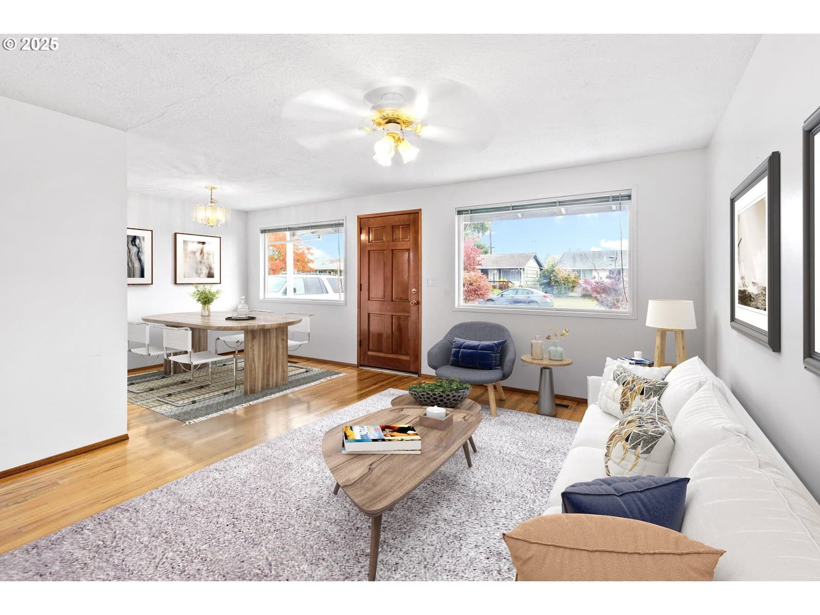 Cute as a button~move in ready~just in time for the holidays! Make this your cozy home with charming hard wood floors through out. Simple and quaint kitchen with pantry space, range and fridge-ready for some cookie baking! Recently landscaped for easy maintenance with some areas for gardening and flowers. Perfectly sized and fully fenced back yard with privacy. Expansive garage with shelves and lots of storage. Bonus room, behind garage not included in sq ftg, you can use for hobbies, home gym, guest room? Washer and dryer is also included! New siding with fresh paint that will last for years. Calling all golf lovers! You will fall in love with this sweet thing.