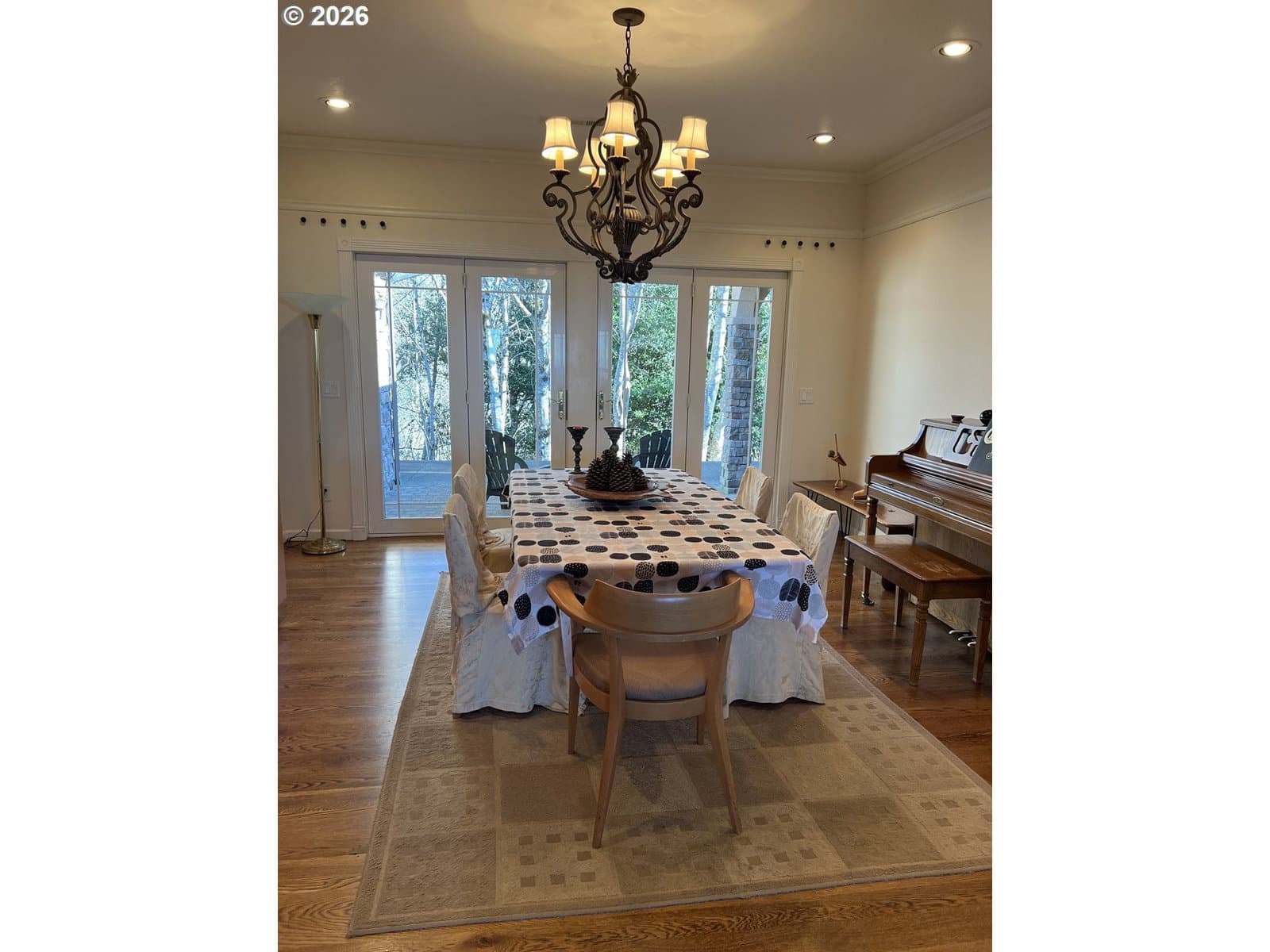 Motivated Seller! Discover the serenity of this custom one-level ranch-style home nestled on a generous 3.26 acres, featuring two separate tax lots. Located at the top of the hill and near the end of the road, this peaceful retreat offers stunning views of the Pacific Ocean and the charming town of Brookings. Enjoy year-round sunsets and remarkable vistas, all while being situated above the tsunami zone and usually above the fog line.The property boasts a beautifully maintained, level, lush yard adorned with mature shrubbery, providing plenty of space for pets and outdoor activities. The gorgeous new deck invites you to relax and soak in the breathtaking surroundings.Inside, you'll find high-end finishes throughout, including elegant wood,tile & luxury vinyl plank floors, along with granite & tile countertops throughout. The chef's kitchen is a dream come true, featuring a brand-new stainless steel double oven, perfect for entertaining, a grand island for prep and room for more than one chef to work together.With 3 spacious bedrooms and 3.25 luxurious baths, as well as an attached 2-car garage, this home is designed for comfort and convenience. Plus, the additional 1.9-acre parcel is included—an incredible bonus!Don’t miss out on this exceptional buy. Schedule your showing today!