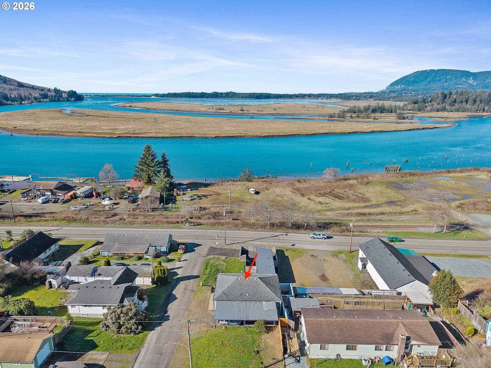 Coastal Getaway with spectacular views of the Nehalem Bay/River. Only two blocks from the boat docks. This cute coastal home has 2 bedrooms & 1 full bathroom. Extra room for an office with access to the open porch to enjoy the million dollar views. Large carport for parking. Large yard with fruit bearing trees. Extra storage in the basement. Fresh exterior/interior paint throughout. Easy to show! Come take a look!