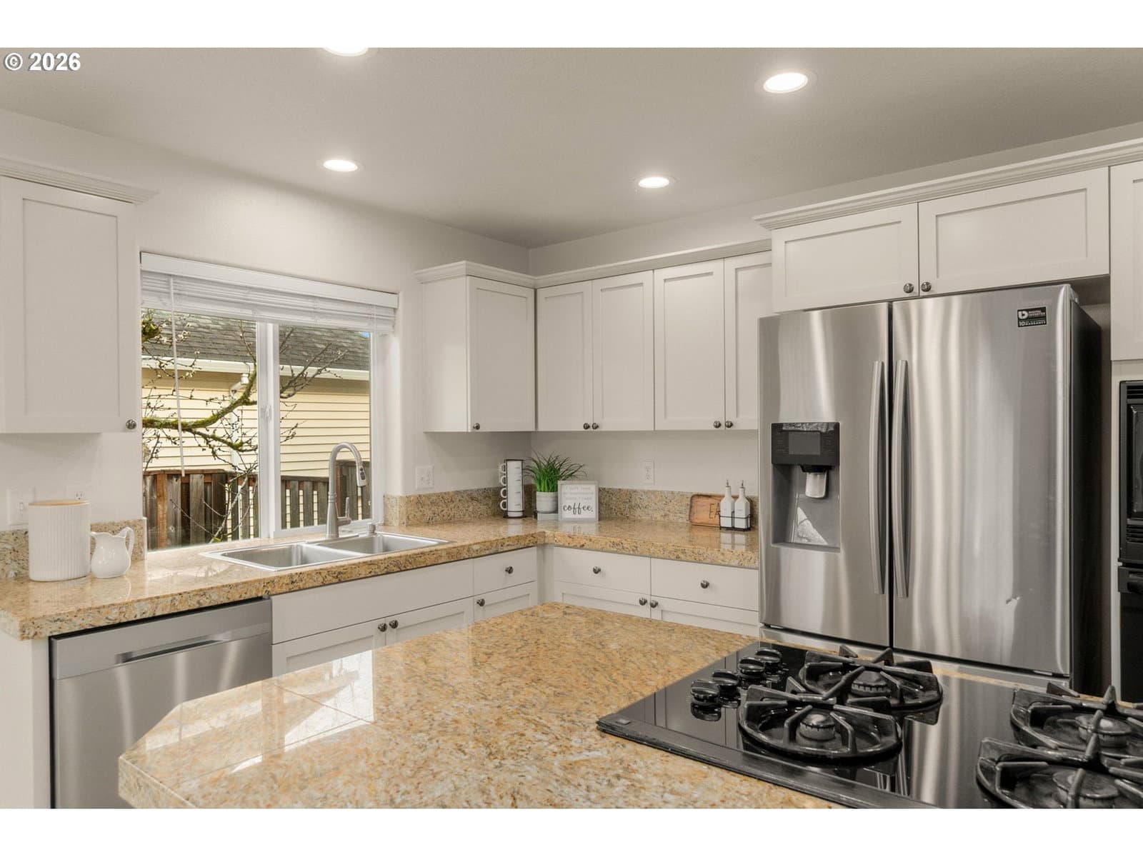 OPEN SAT & SUN 1-3pm - New Roof, New Exterior Paint, New Floors, Painted Cabinets...Oh, My! This thoughtfully refreshed home is truly move-in ready—just unpack and settle in. Recent upgrades include a brand-new roof, fresh exterior trim/shutters/posts/door paint, new carpet throughout, updated LVP/LVT flooring, and a cabinet refresh with a clean, modern design that elevates the living spaces. A main-level bedroom adds everyday convenience and flexibility for guests, home office needs, or long-term living. Outside, enjoy a semi-private yard complete with fruit trees (cherry, apple, pear, blueberries, plums), garden boxes and a paver path—perfect for relaxing or entertaining. The location checks every box: close to nearby conveniences at West Union & Bethany Villages, steps away from THPRD's abundant park & trail systems and highly regarded schools. Enjoy quick access to Hwy 26, proximity to major employers, popular address with Washington County taxes, and desirable Beaverton schools. A rare blend of comfort, updates, and location!
