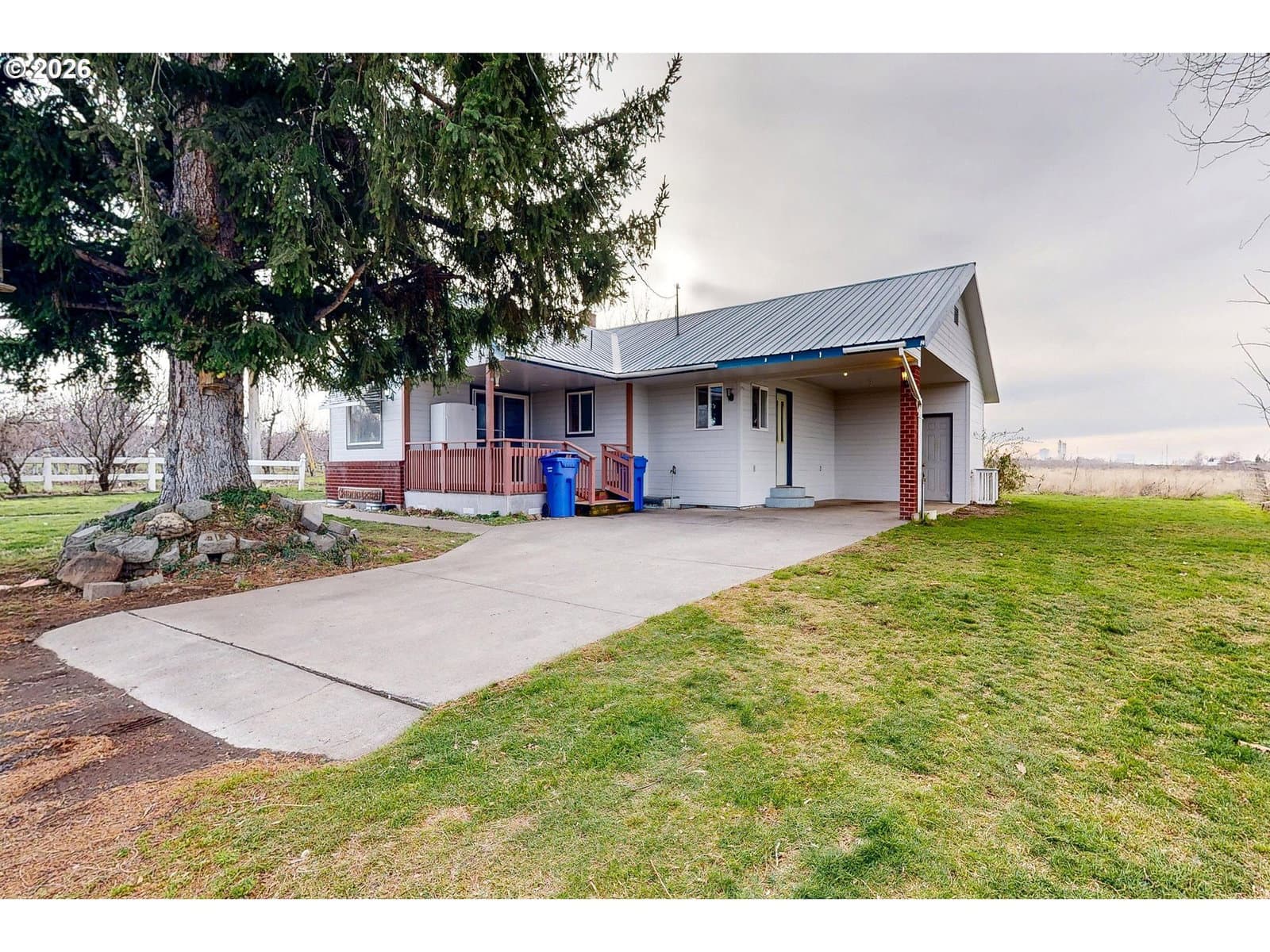 Peaceful country living on 14.77 acres just outside Milton-Freewater. This ranch-style home offers 3 bedrooms and 2 bathrooms with a functional, single-level layout. The property also includes a separate 2 bedroom, 2 bathroom manufactured home—ideal for multi-generational living, guest quarters, or rental potential. Multiple outbuildings provide ample space for equipment, livestock, storage, or hobbies. Enjoy wide open views, room to roam, and endless possibilities for rural living while still being conveniently located. Walla Walla River Irrigation District, cost is $1,250/ year. Current orchardist has three year lease and is paying half. Pump for orchard is on neighbors property.