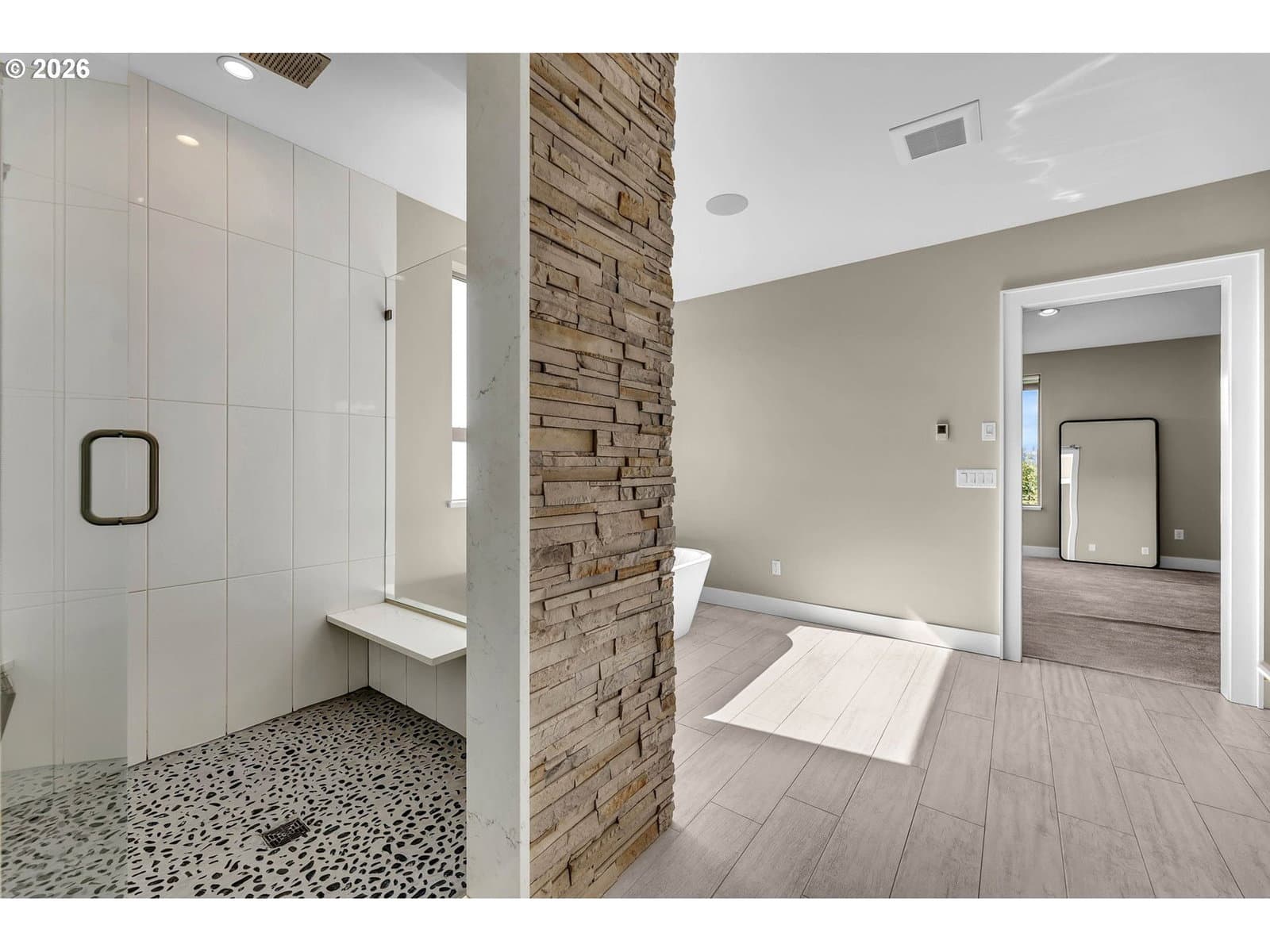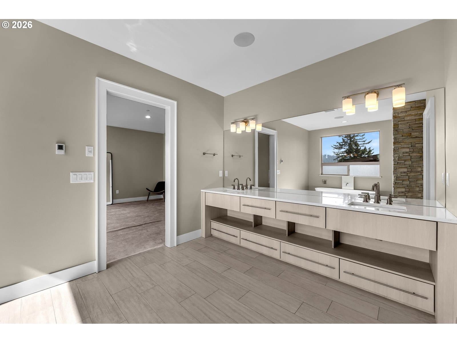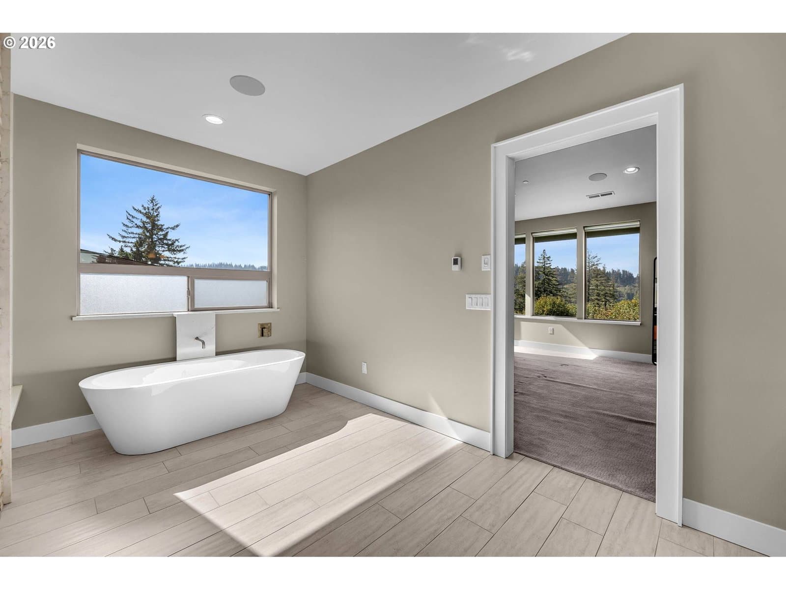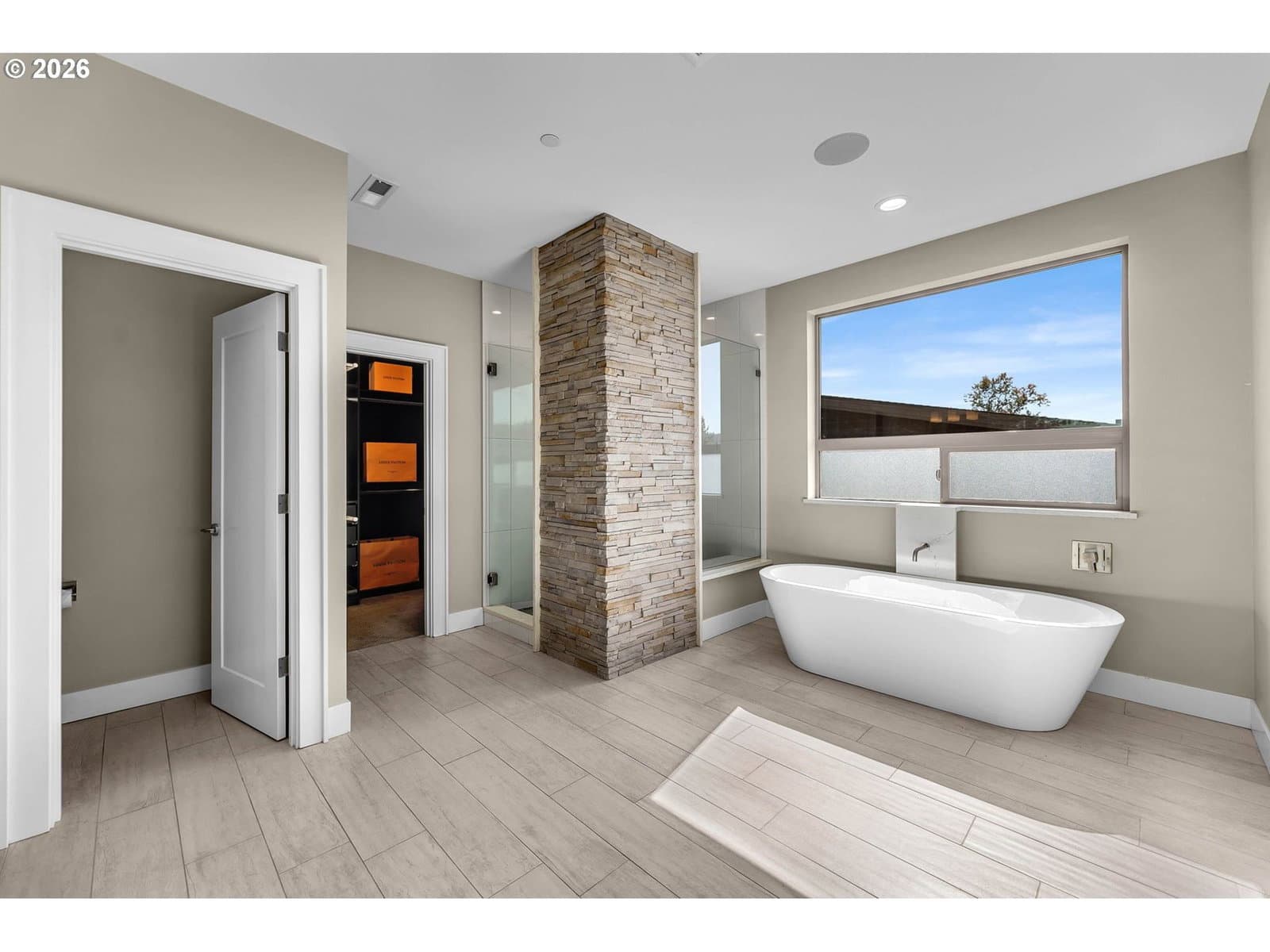 Modern Elegance on Lacamas Lake! Experience refined living in this architectural stunner, where walls of 11-foot glass capture unobstructed views of Lacamas Lake and the surrounding greenbelt. With a seamless open layout, the home invites light and nature inside, creating a perfect balance of sophistication and serenity. The gourmet kitchen is the heart of the home, anchored by a dramatic waterfall island and complemented by professional - grade stainless steel appliances and a generous walk-in pantry - ideal for both intimate gatherings and grand entertaining. Upstairs, the primary suite offers a private sanctuary with spa-level indulgence: heated tile floors, a rain shower, and a deep soaking tub designed for ultimate relaxation. Every detail has been elevated with thoughtful upgrades, from EV charging and whole-home CAT6A wiring to integrated speakers, a water purification system, and an advanced HVAC with enhanced filtration. This is more than a home, it’s a lifestyle, defined by luxury, innovation, and an unrivaled connection to nature.