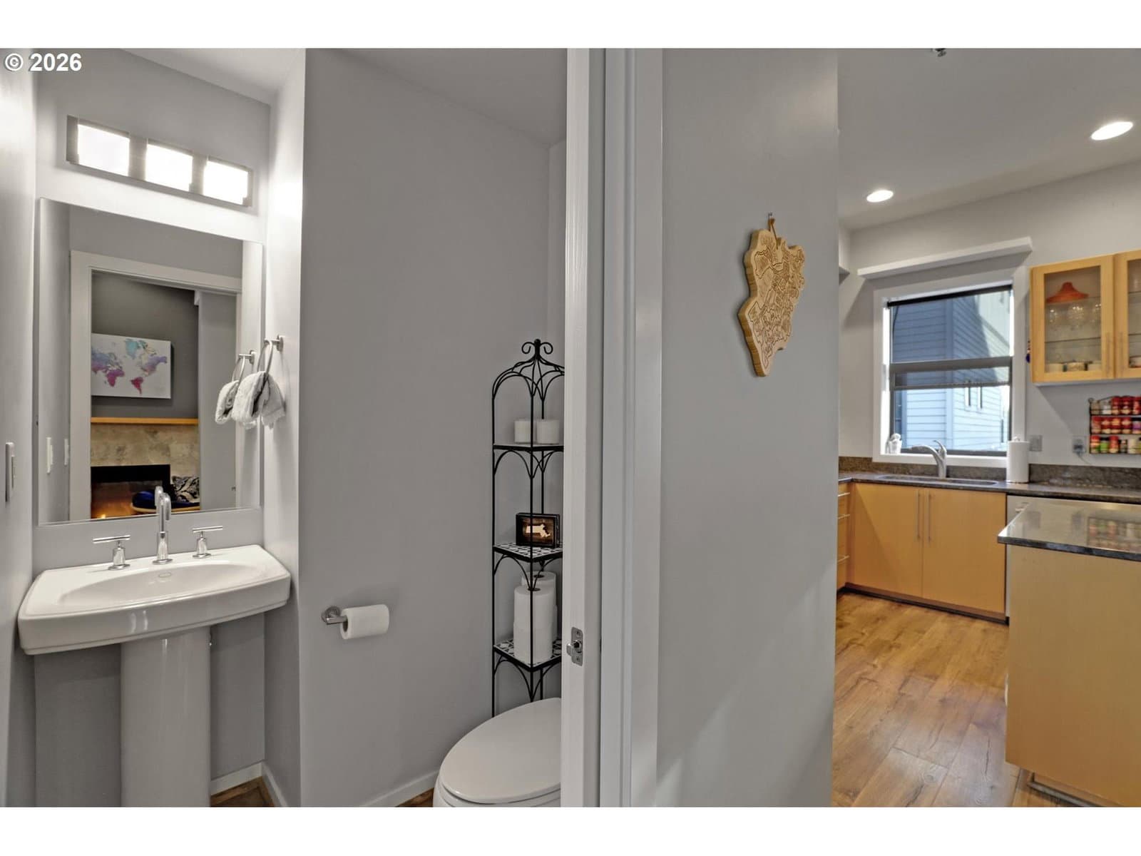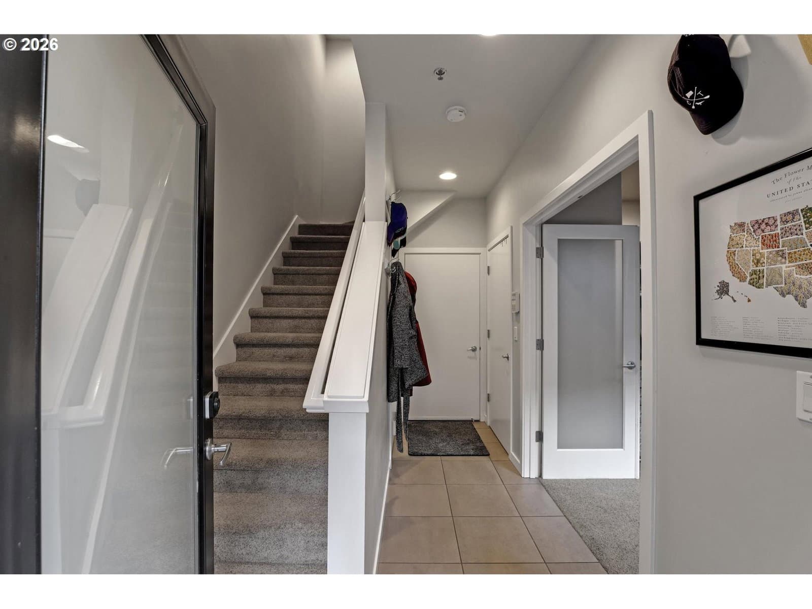 This Slabtown gem blends modern design with classic brownstone walk-up vibes in one of Portland’s newest and most vibrant neighborhoods. Inside, clean and contemporary finishes create a warm and inviting atmosphere. The open-concept main level features high ceilings, engineered wood flooring, and a gas fireplace, with seamless flow between the kitchen, dining, and living areas. Step outside to the south-facing patio—perfect for relaxing or entertaining. The entry-level den/office offers exceptional flexibility with abundant custom built-ins and a Murphy bed, making it an ideal guest space. Upstairs features Hickory hardwood flooring thru-out. The spacious primary suite includes a large walk-in closet, and the second bedroom features additional custom built-ins for impressive storage. An upper-level laundry area includes newer washer and dryer units for added convenience. A rare find in the city, the home also offers a spacious attached 2-car garage with built-ins and ample storage. Located within a secure, gated community, this home offers an unbeatable location—just steps from New Seasons Market, Besaws, G-Love, Grassa and the new Northwest Library. Across from the anticipated Slabtown Park project & just a short stroll to NW 23rd Avenue’s shopping and dining. Walk Score 98 | Bike Score 88 [Home Energy Score = 9. HES Report at https://rpt.greenbuildingregistry.com/hes/OR10243726]