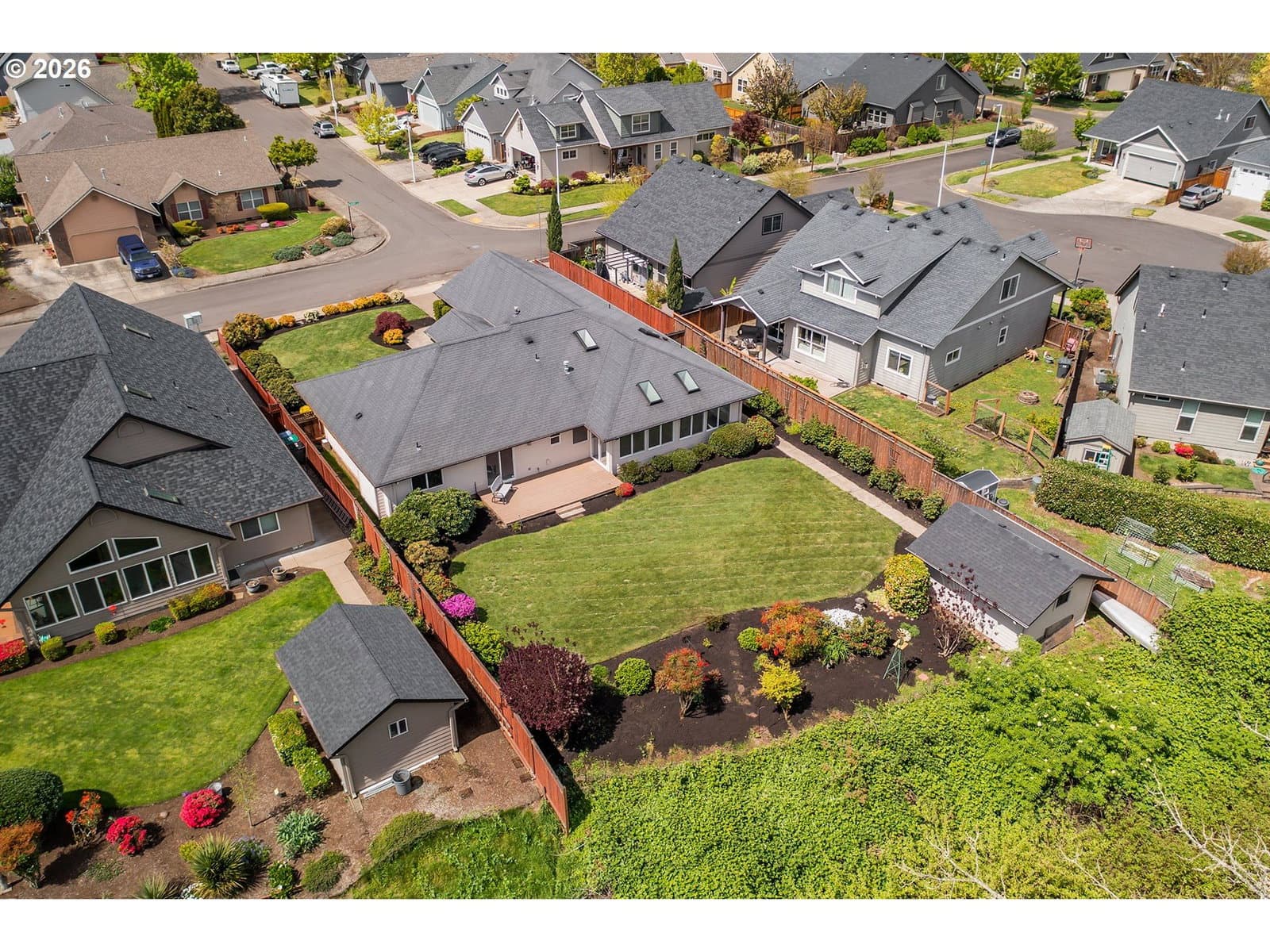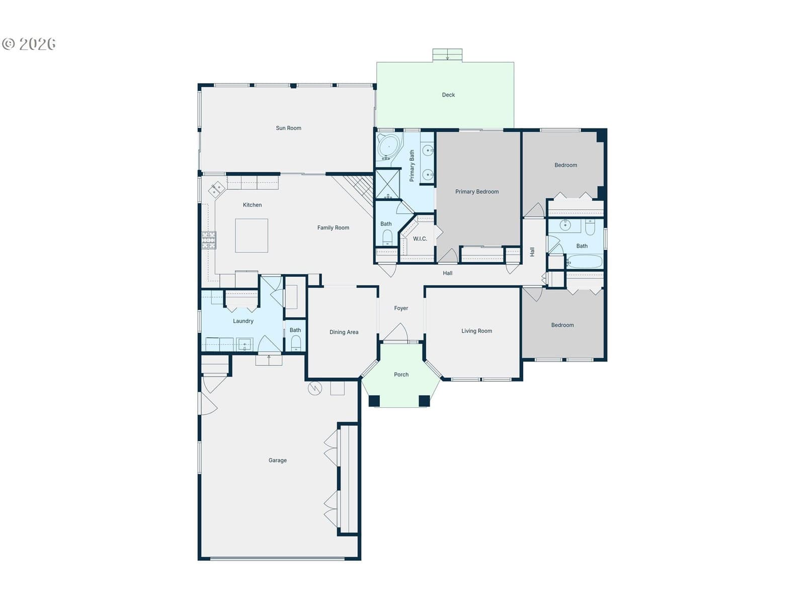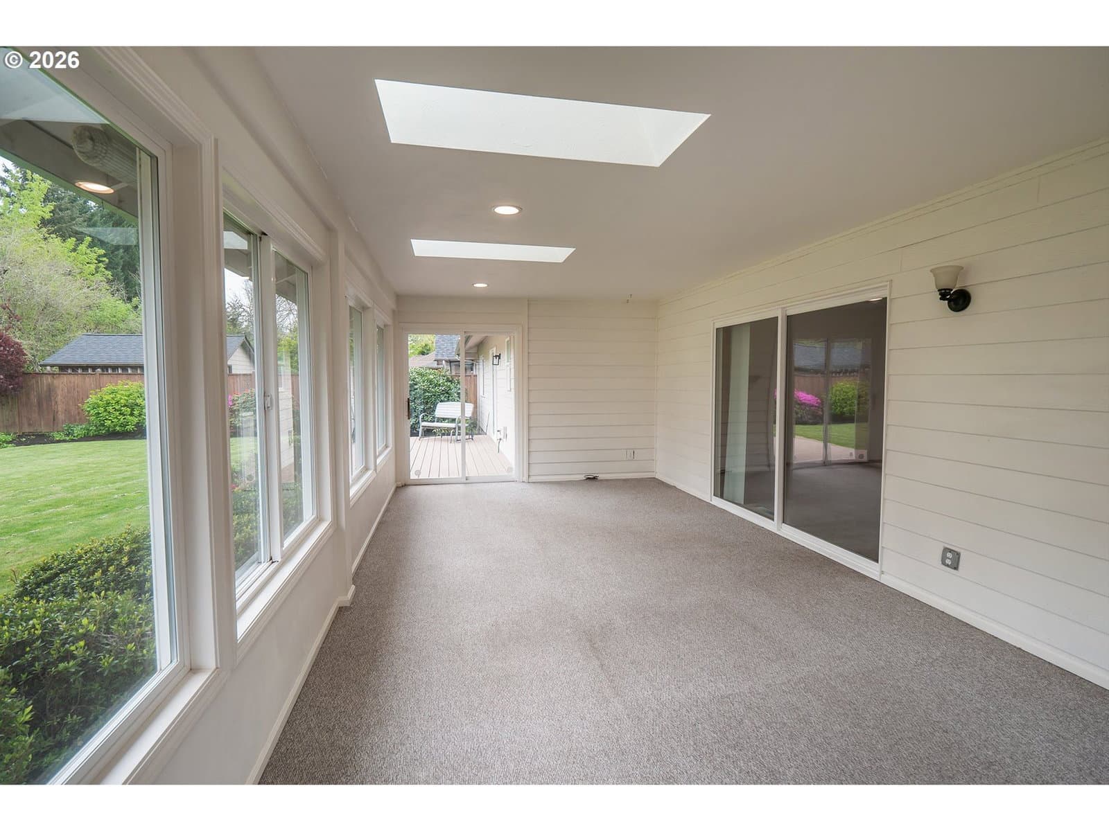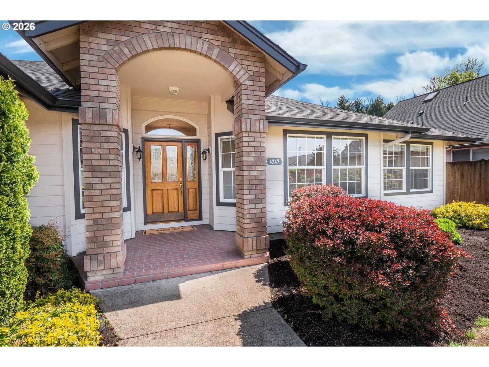 Well-maintained single-level home backing to a quiet natural area for added privacy! The entryway features solid oak flooring and an etched glass front door, with a flex room off the entry that could serve as a home office, bonus space, or potential fourth bedroom. The kitchen features updated granite countertops, an eating bar/island, stainless steel appliances, and solid oak hardwood floors. A finished sunroom with skylights and dual sliding doors connects to the beautifully landscaped backyard, offering a private outdoor retreat with a spacious deck and room to breathe. The primary suite includes a dual sink vanity, soaking tub, walk-in shower, walk-in closet, and a slider to the backyard. Storage is a standout throughout, from the dedicated laundry room with cabinetry and utility sink, to the oversized two-car garage, extra-large driveway, and a detached shed with generous storage space. A rare find with the space, storage, and setting to match!
