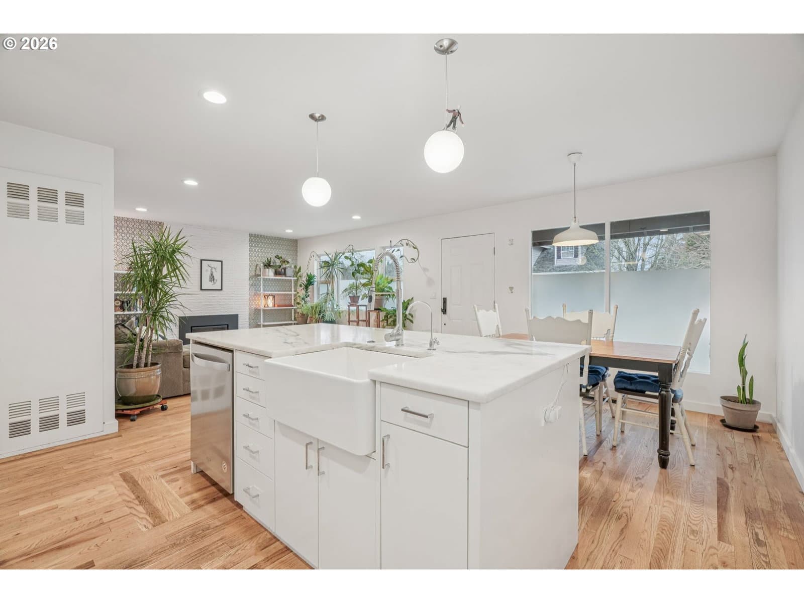 Instant CRUSH!! This Midcentury Ranch in St. Johns delivers style, comfort, and lifestyle! The open floor plan features three nice-sized bedrooms, an updated bathroom with zero threshold shower in custom concrete tile, a gourmet kitchen with marble counters, premium appliances, and a large island. Great room floor plan with custom accent wall including built in bookshelves and Osburn wood stove. Out back to your private covered deck and Finlandia Sauna! Set on a huge lot with a backyard built for entertaining, relaxing, all on a quiet street just three blocks from Pier Park and close to the St. Johns Community Center and iconic Cathedral Park. Minutes to Lombard Street's shops, dining, and neighborhood favorites. Upgraded, move-in ready with a new roof in 2023! Mortgage savings may be available for buyers of this listing. [Home Energy Score = 6. HES Report at https://rpt.greenbuildingregistry.com/hes/OR10218851]