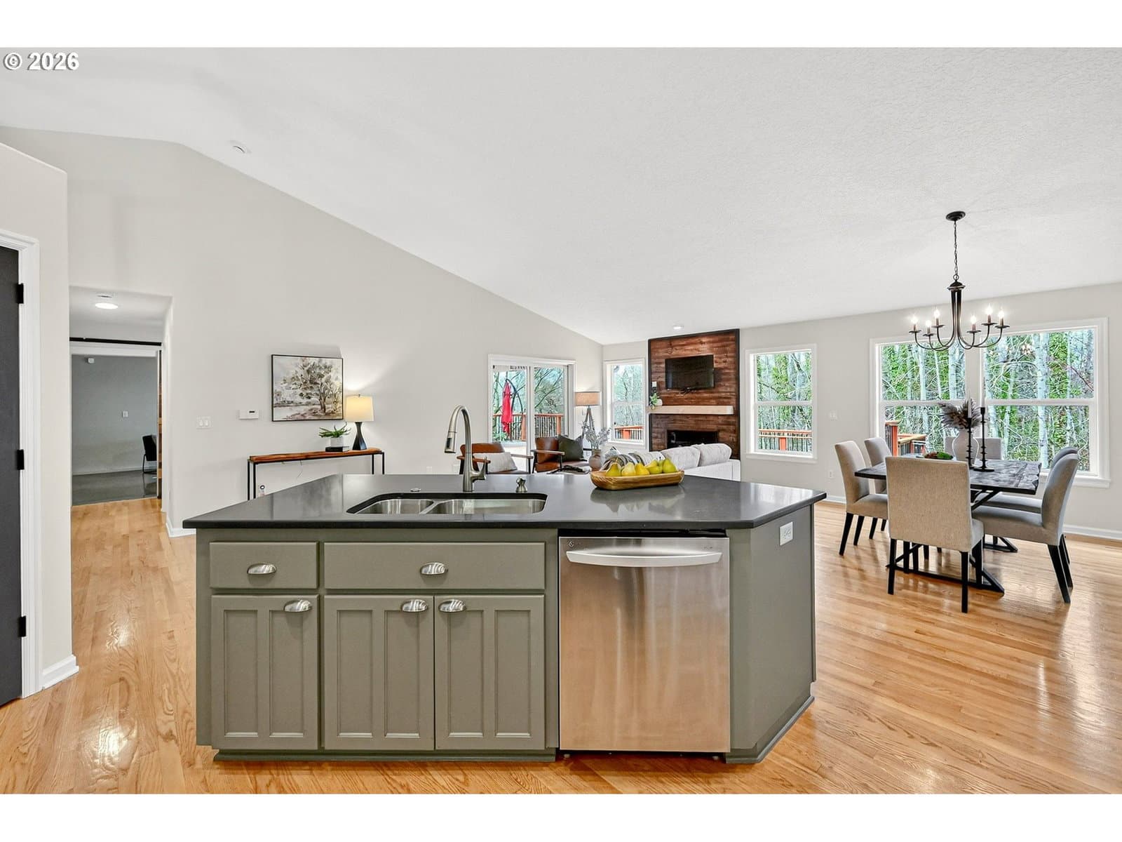 Eagles and Coyote and Deer... Oh My! Fronting natural green space adjacent to the water, this tastefully finished home offers privacy, tranquility, and seasonal peek-a-boo views of Fairview Lake through the protected wetlands and treed lakeshore area out behind the property. Live, work, and unwind in a home that truly feels like a retreat. Beautifully built, thoughtfully maintained, and ready for its next chapter, the layout is both functional and inviting. The main level features a light-filled great room with vaulted ceilings, a spacious den with French doors, a versatile bonus room, a laundry area, and a half bath. Upstairs, you’ll find three bedrooms, each with walk-in closets, and two full bathrooms, providing space (and spaces) for everyone. Entertain year-round and tap into fun inside the ‘19th Tee’, a unique bonus room featuring polished concrete flooring, a counter bar, and a lift-style door that allows guests to step outside and enjoy a swing on the partially covered deck overlooking the backyard and its very own private putting green. It’s the perfect zone for relaxing or hosting friends. Over the past decade, the home has seen numerous updates, including a refinished kitchen, bonus room, newer roof, siding, decking, gutters, interior paint, carpeting, hardwoods & custom flourishes throughout. Within birdsong’s reach of Fairview Lake and neighboring Blue Lake Regional Park, and just minutes from nature trails, the Chinook Landing boat launch, and the breathtaking beauty of the Columbia River Gorge, this turn-key property is truly an outdoor enthusiast’s dream! Conveniently located near I-84, you’ll also be connected to two airports, nearby downtown Troutdale, and the city of roses proper. Opportunities like this are rare, so come experience life by the lake in a quietly upscale neighborhood known for its privacy, accessibility, and peaceful setting, by scheduling your visit today! Annual HOA fees primarily provides oversight & basic maintenance of four areas: I). Greenbelt zone between this property and the lake. II). Stormwater retention pond. III). Small common (grassy) area off 203rd. IV). Small zone along railroad track.