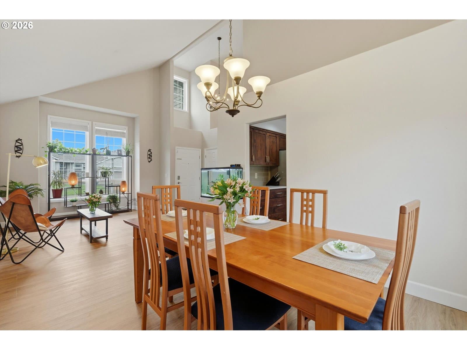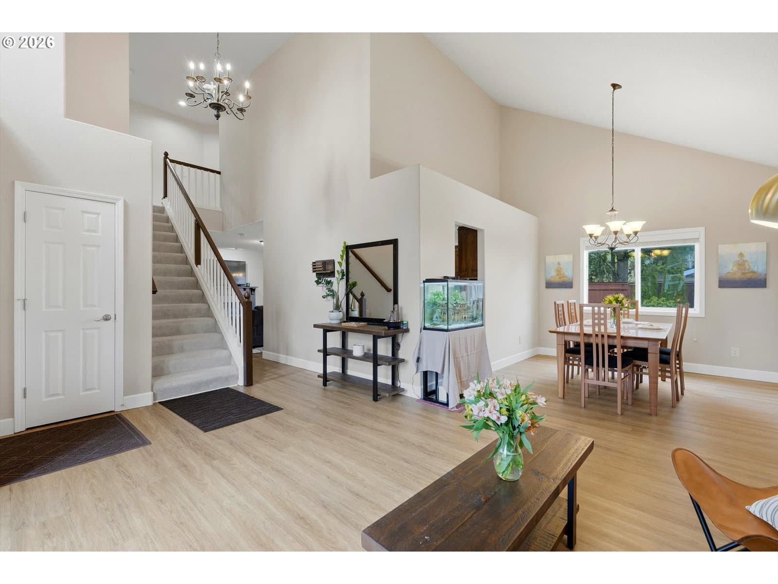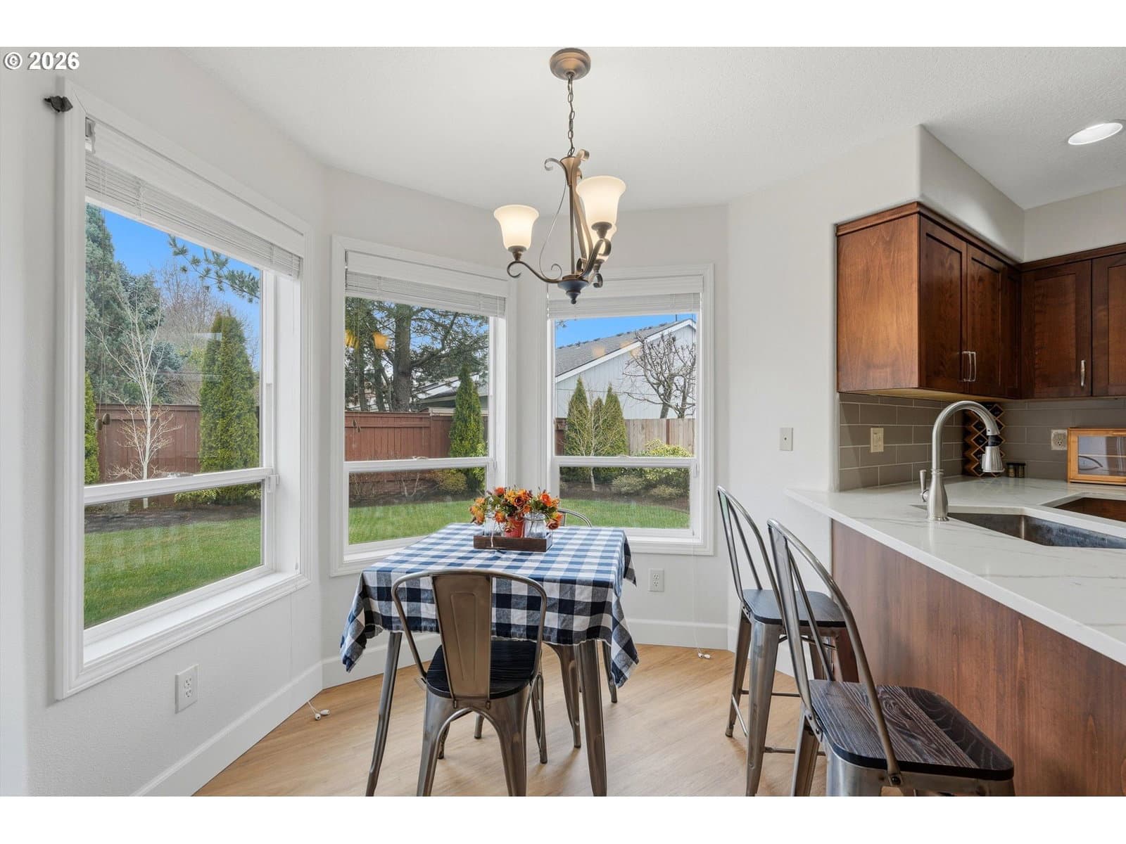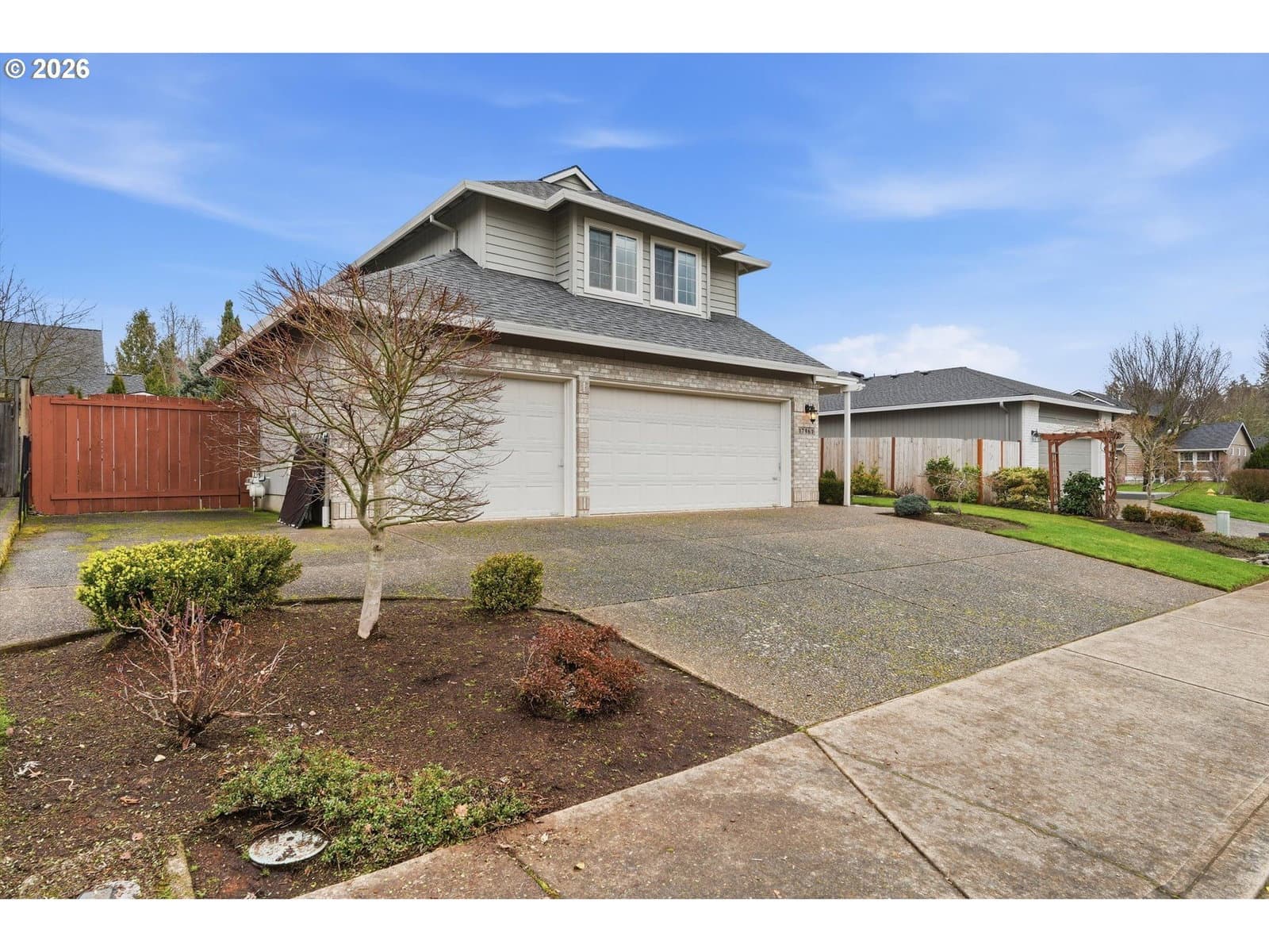 Welcome home to easy living in the desirable Oregon Trail neighborhood. This conveniently located two-story traditional home features tasteful updates and a comfortable, flowing floor plan designed for everyday living and easy entertaining. Vaulted ceilings make this floor plan feel so light and spacious. Easy access to downtown, schools and shopping add to the convenience of this location.Beautiful luxury vinyl flooring offers both style and low-maintenance durability. Quartz countertops and custom cabinetry in the kitchen and bathrooms add a timeless, upscale touch. The kitchen is a true gathering space with an eat bar, charming breakfast nook, and formal dining room — all seamlessly connected to two spacious living areas with the kitchen at the heart of the home.Sliding doors off the family room open to a generous patio and beautifully maintained backyard, perfect for entertaining or relaxing outdoors.Upstairs, you’ll find three well-sized bedrooms and two additional full bathrooms. Generous room sizes and abundant storage throughout make this home as functional as it is inviting.A three-car garage provides flexible space for parking, hobbies, or extra storage. The professionally landscaped exterior features low-maintenance grounds, room for RV parking, and a versatile powered shed ideal for potting, woodworking, or additional storage.